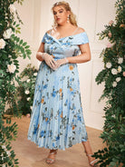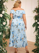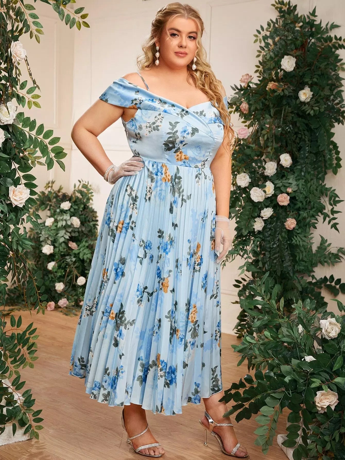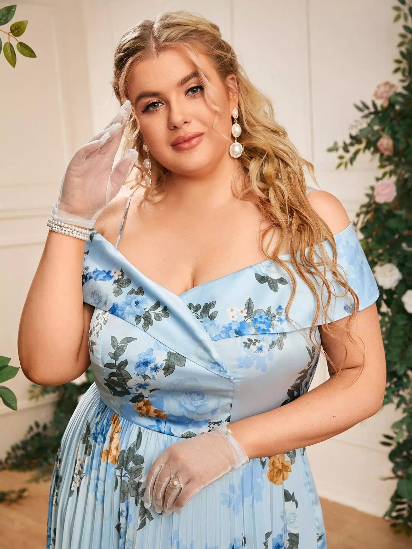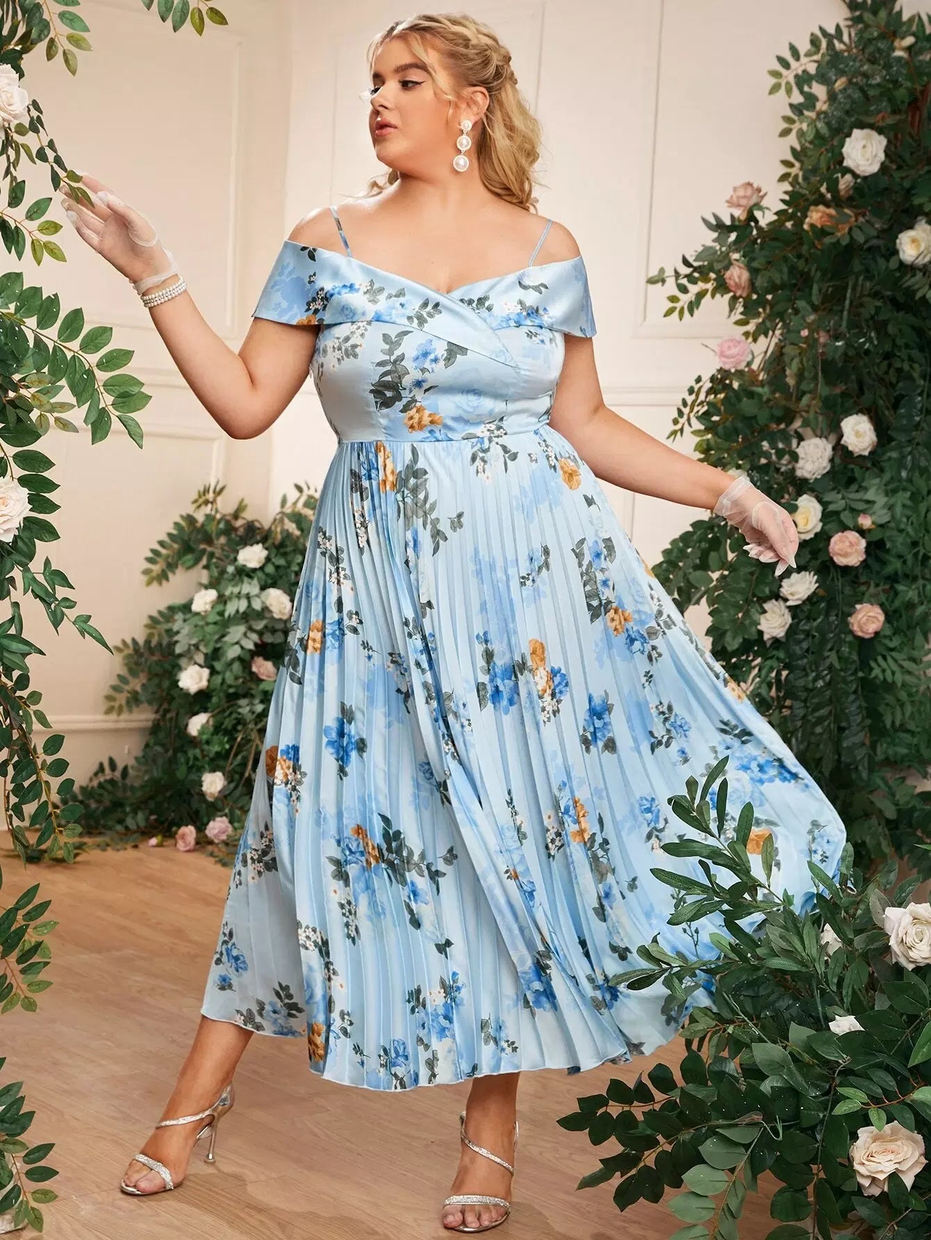 فستان ساتان بطيات من الساتان الزهري ذو أكتاف باردة زائدة