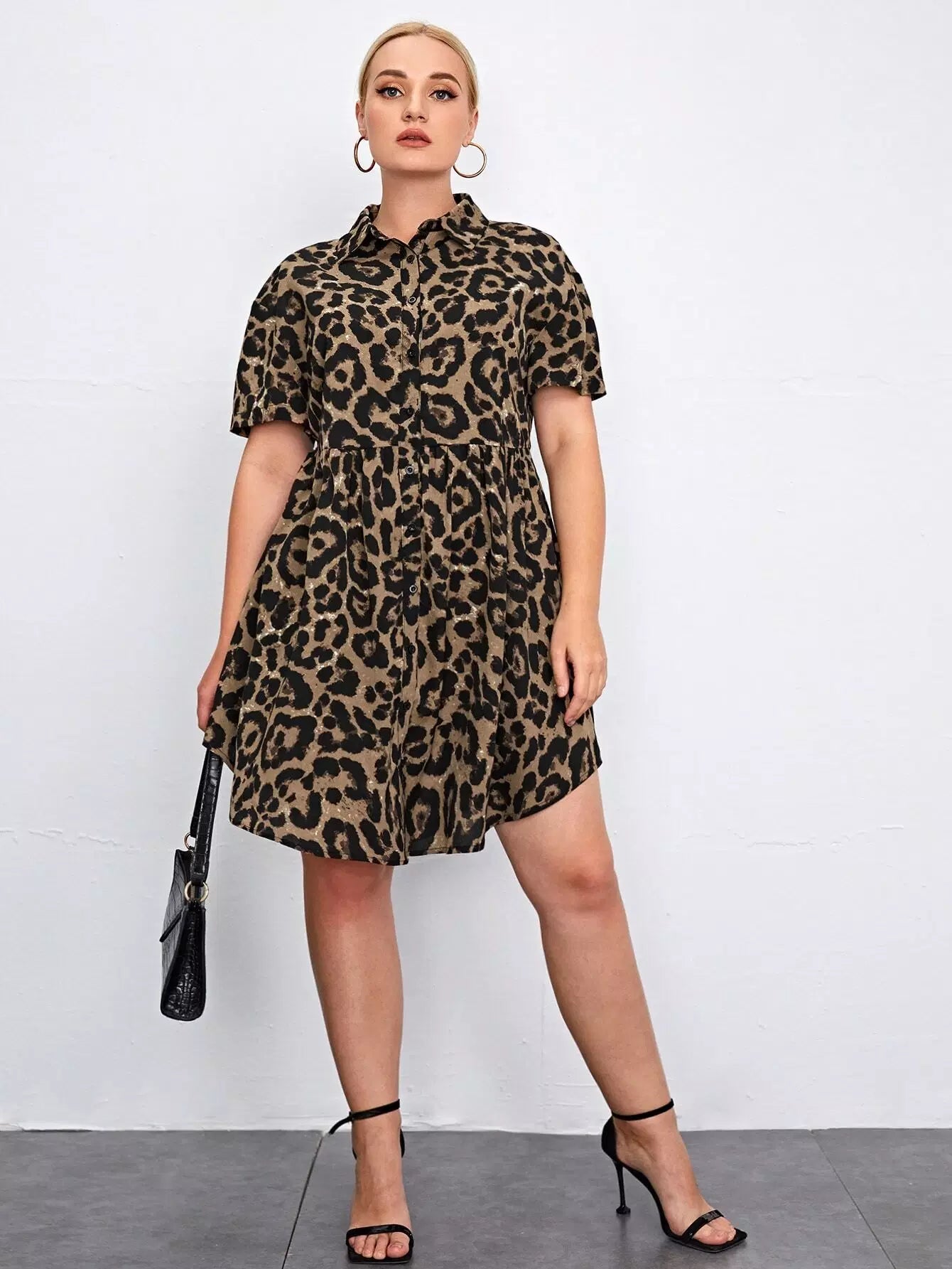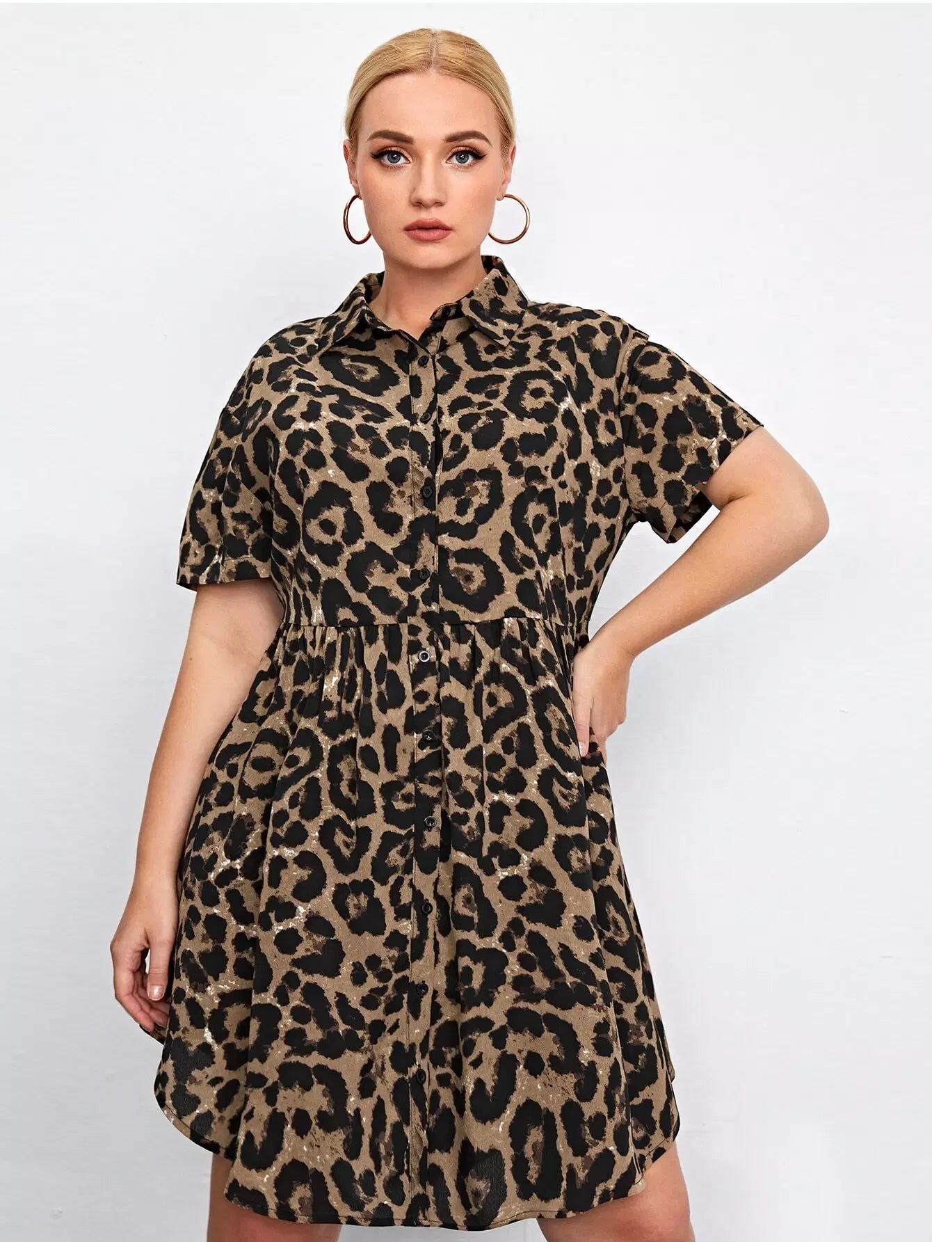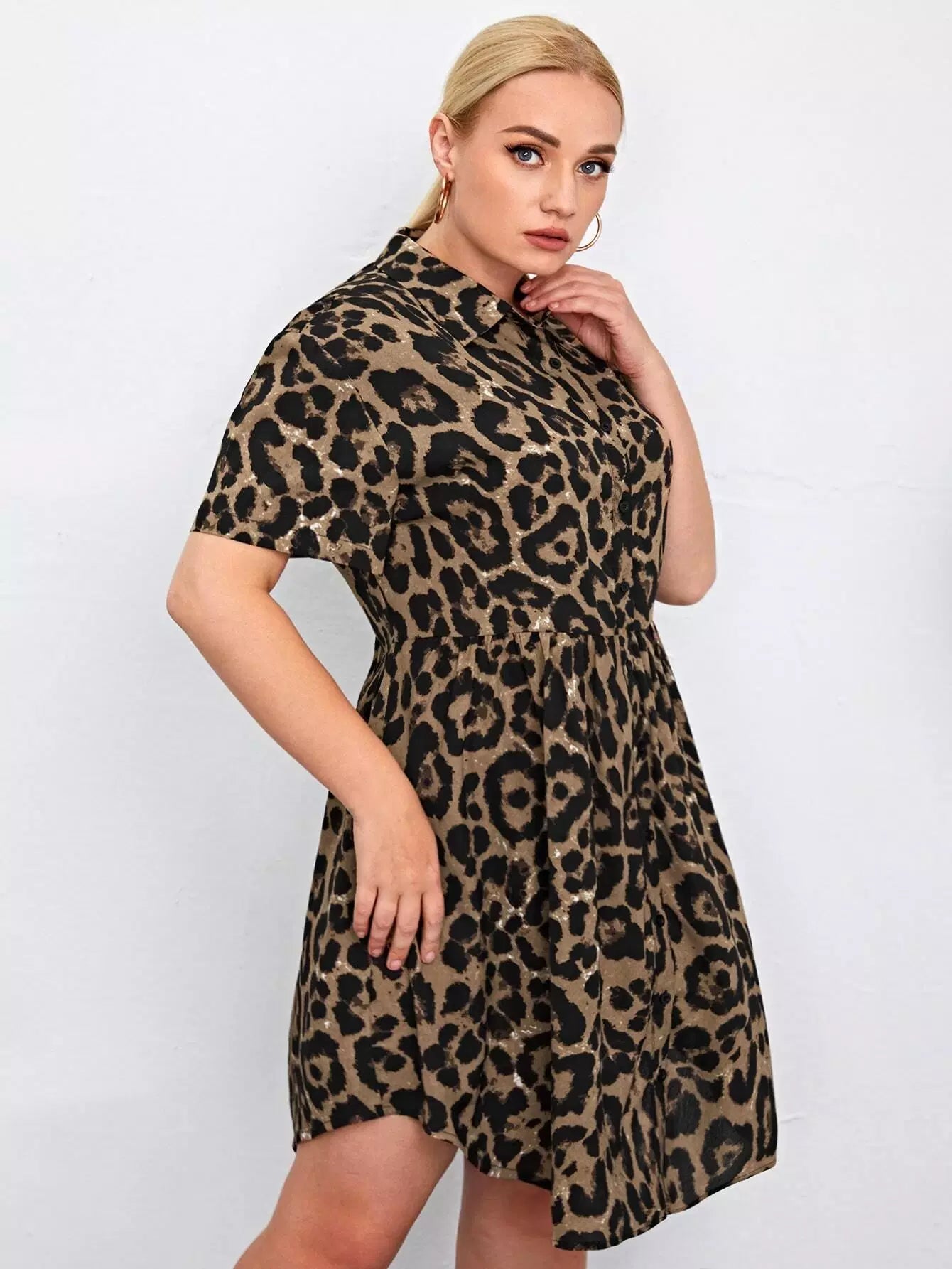 فستان بياقة زائد بأزرار من الأمام بأزرار من الفهد