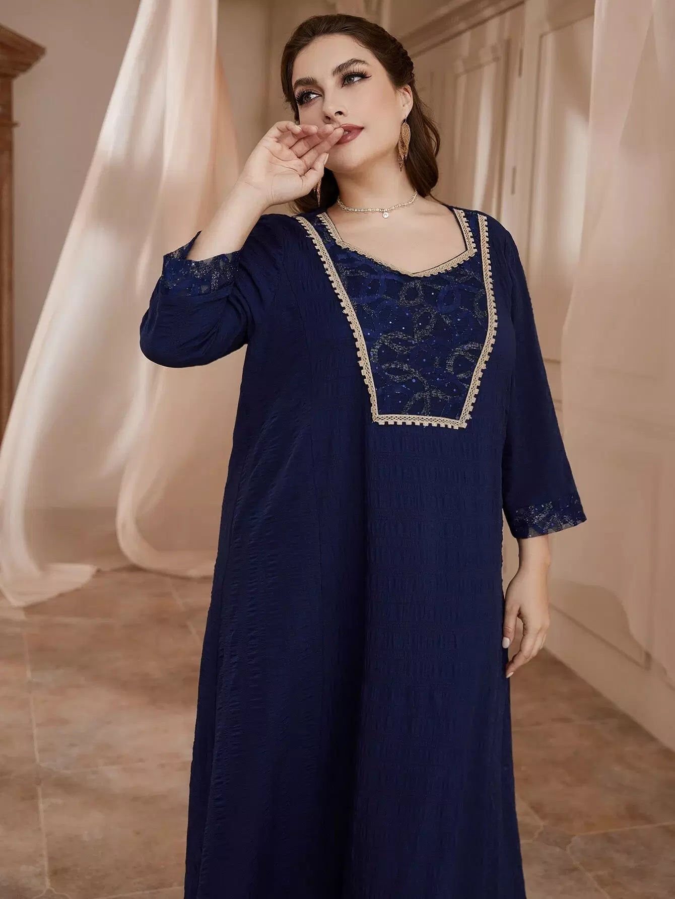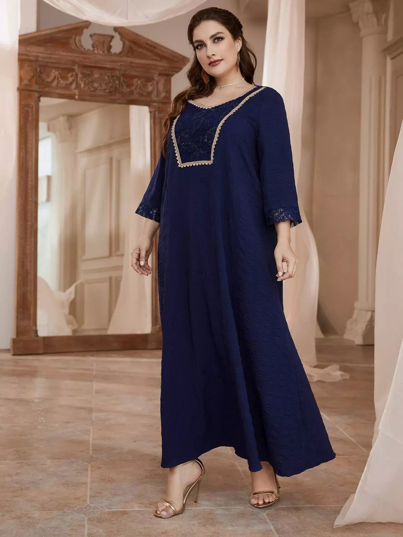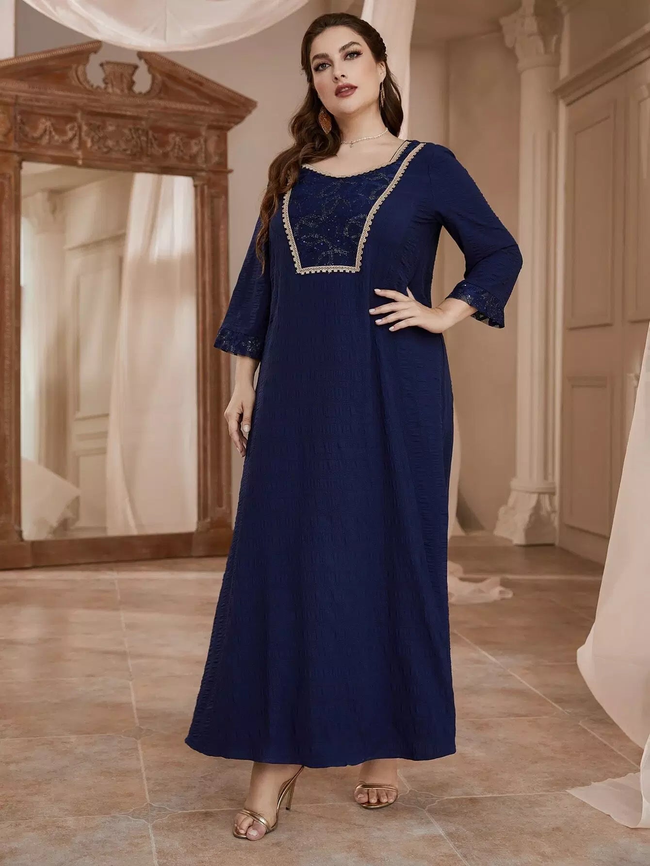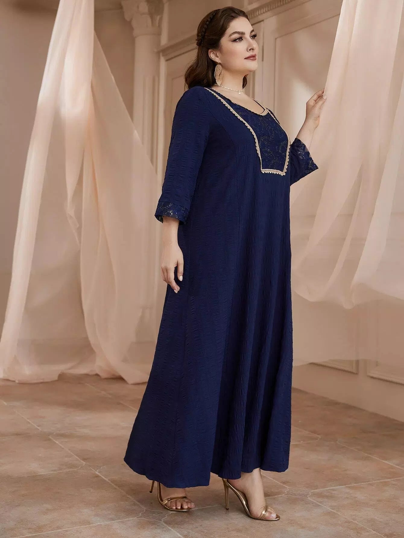 فستان بدون أكمام من الدانتيل المخرّم الدانتيل الشبكي بلون مغاير