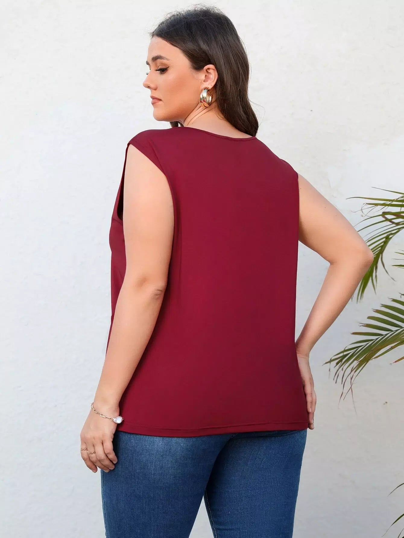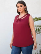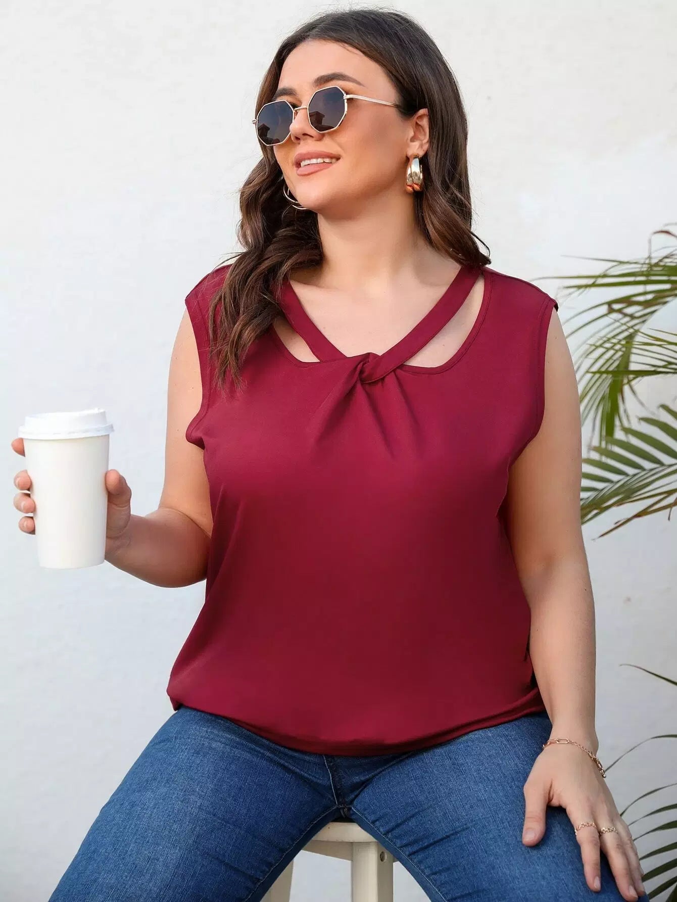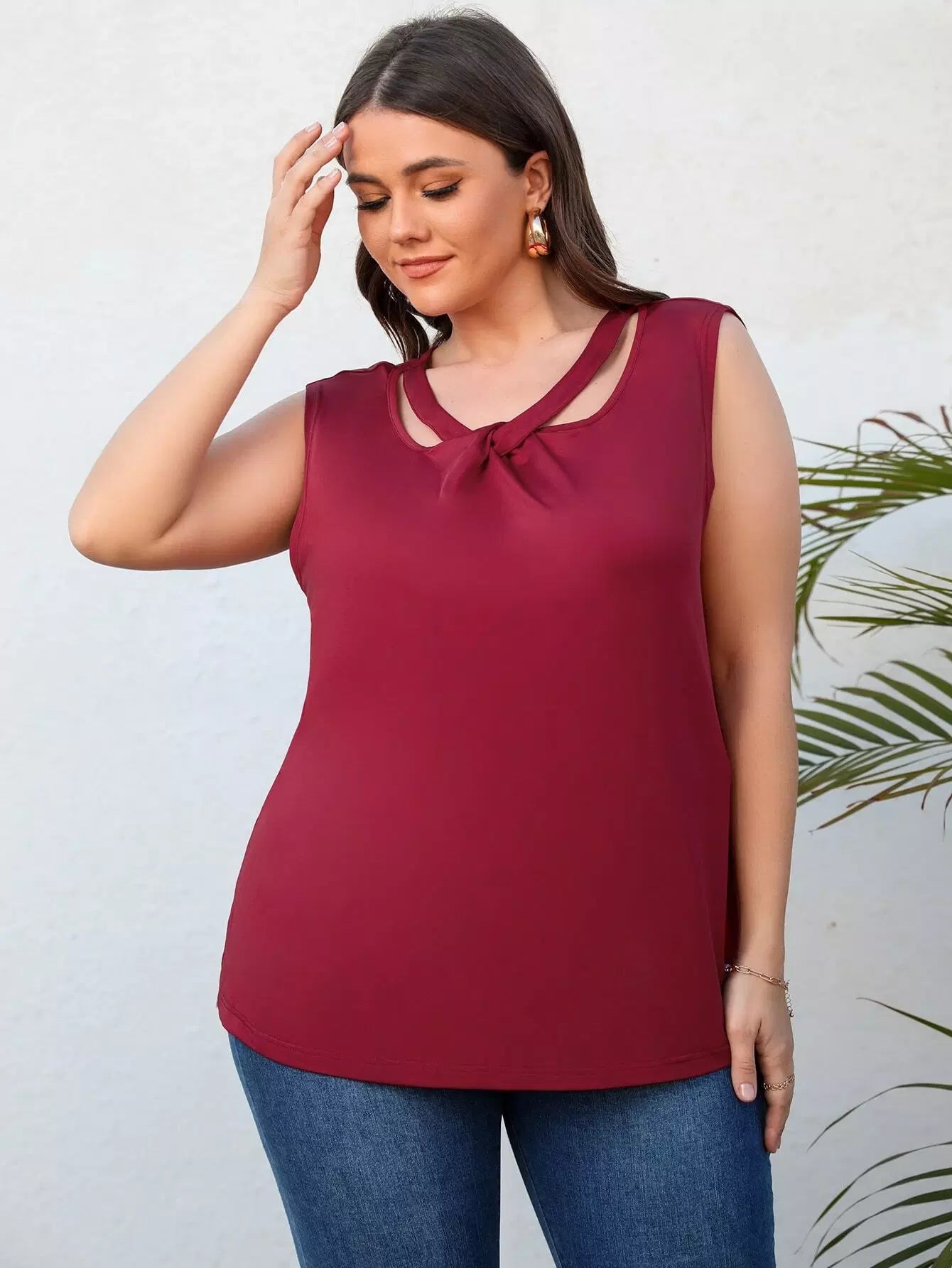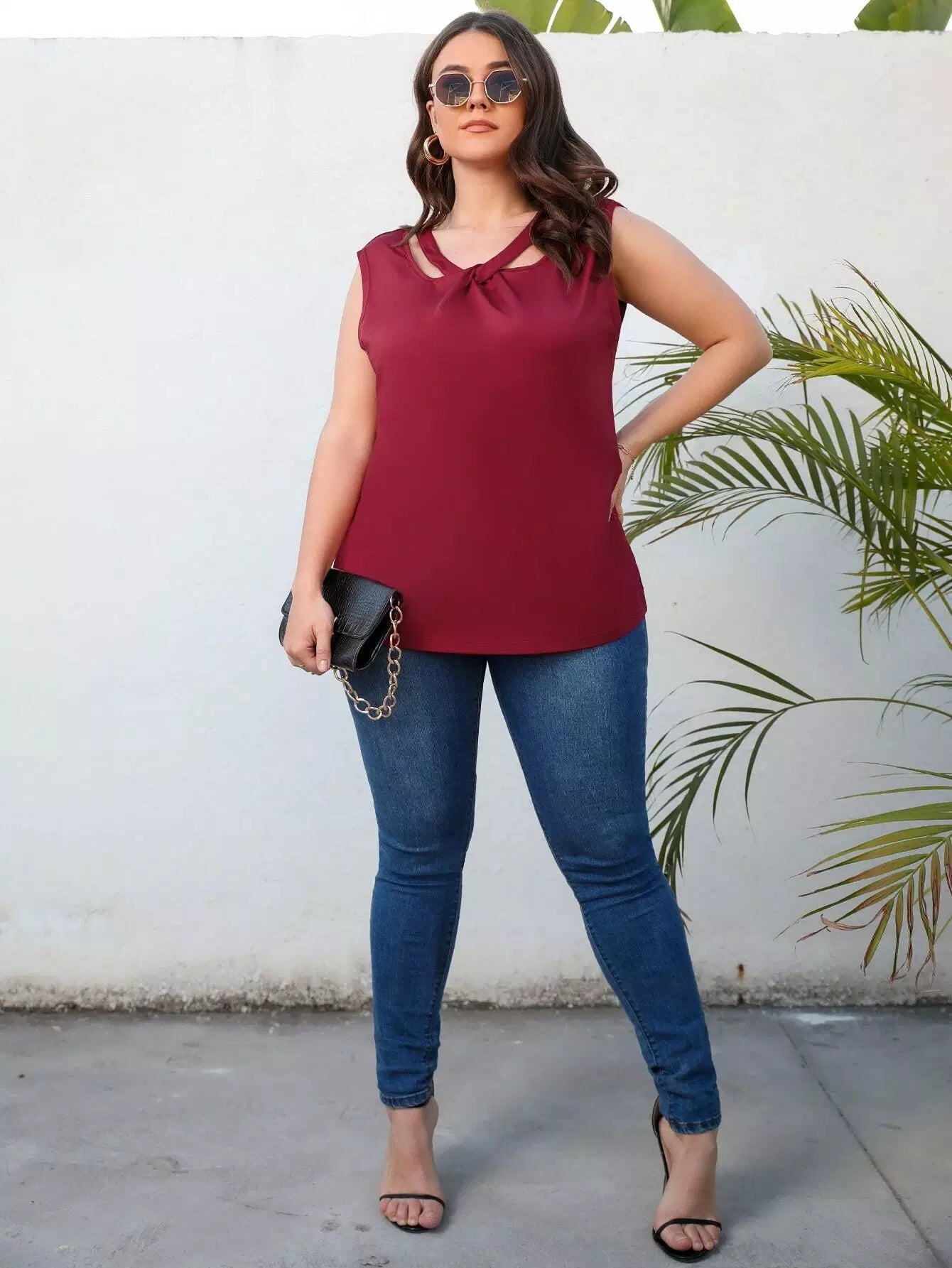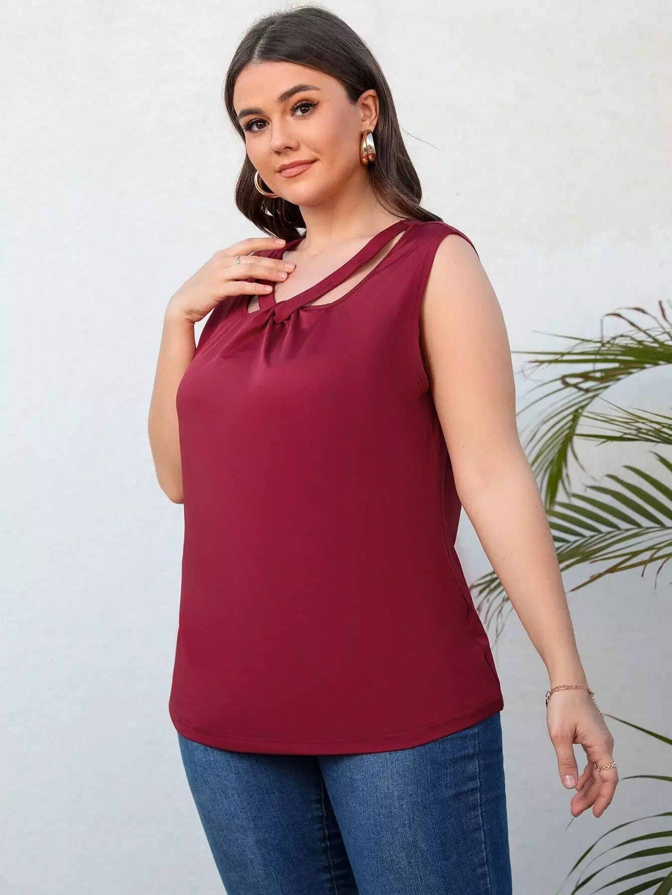 تانك بدون أكمام بقصّة مكشوفة بفتحة علوية متقاطعة بلس