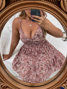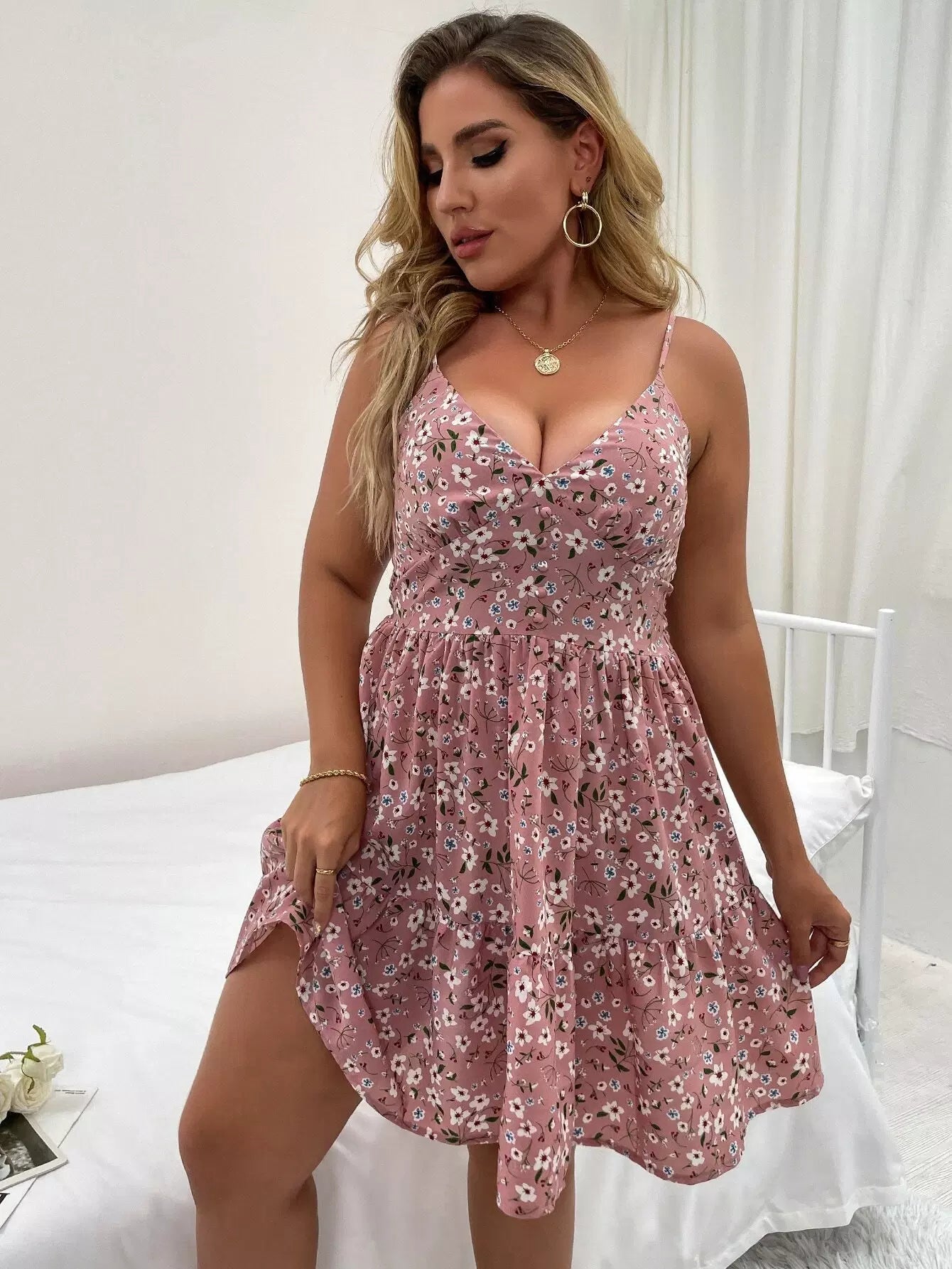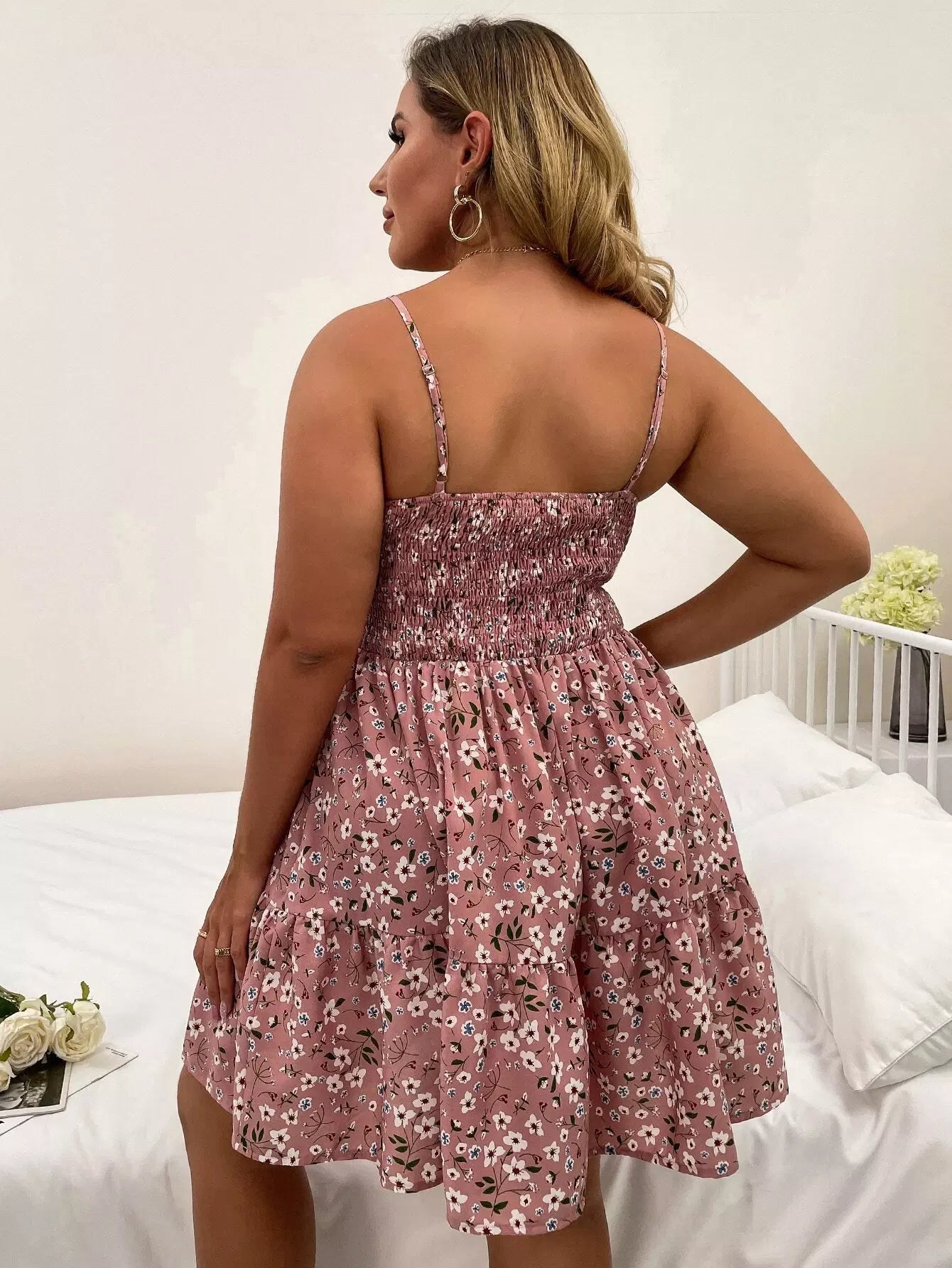 فستان كامي بحافة كشكش من الخلف مزين بنقوش الزهور