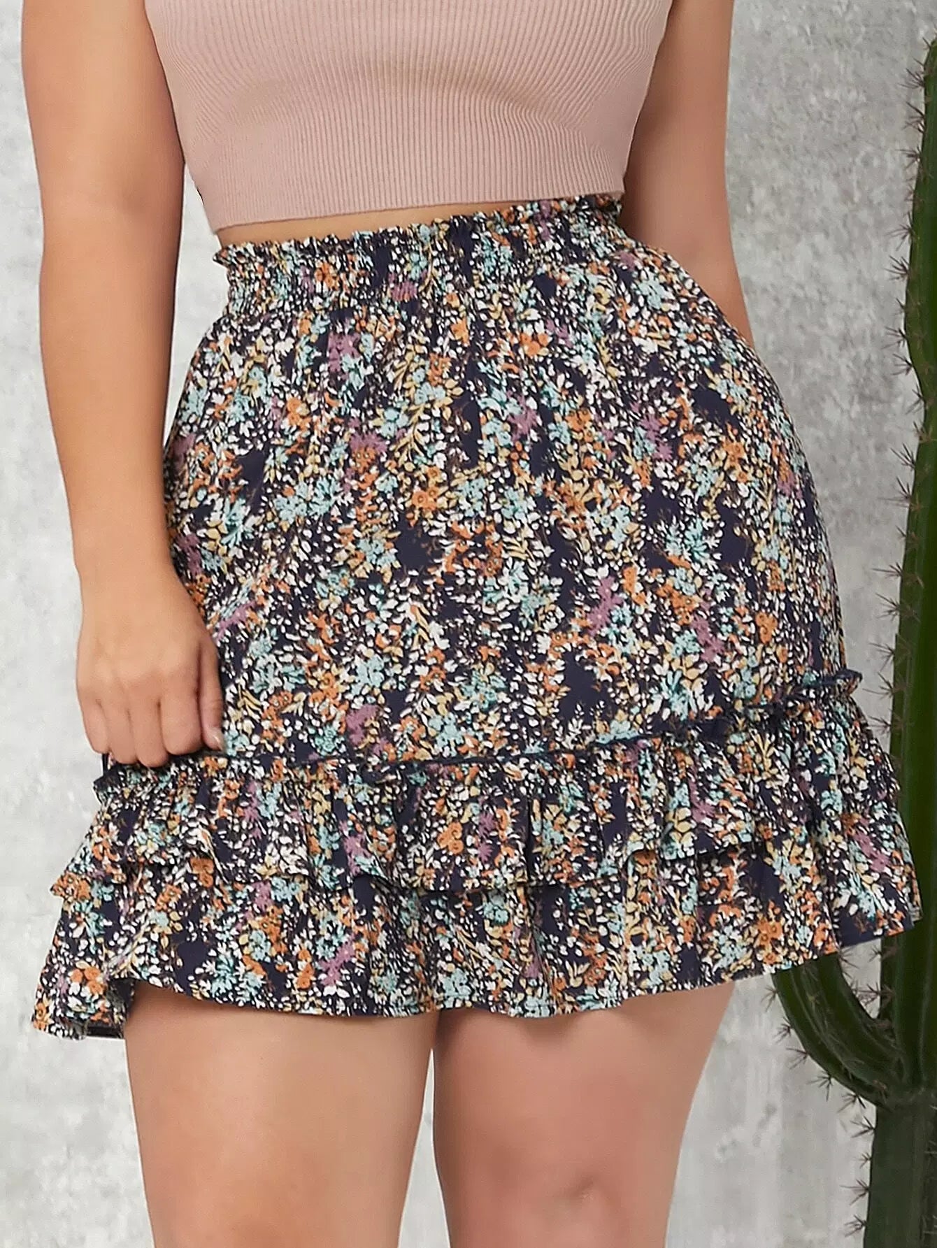 تنورة ديتسي ديتسي ديتسي مزينة بالورود ذات خصر مزين بطبقات من الكشكش