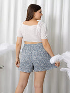 شورت قصير بقصّة ديتسي مزين بالورود وربطة عنق أمامية
