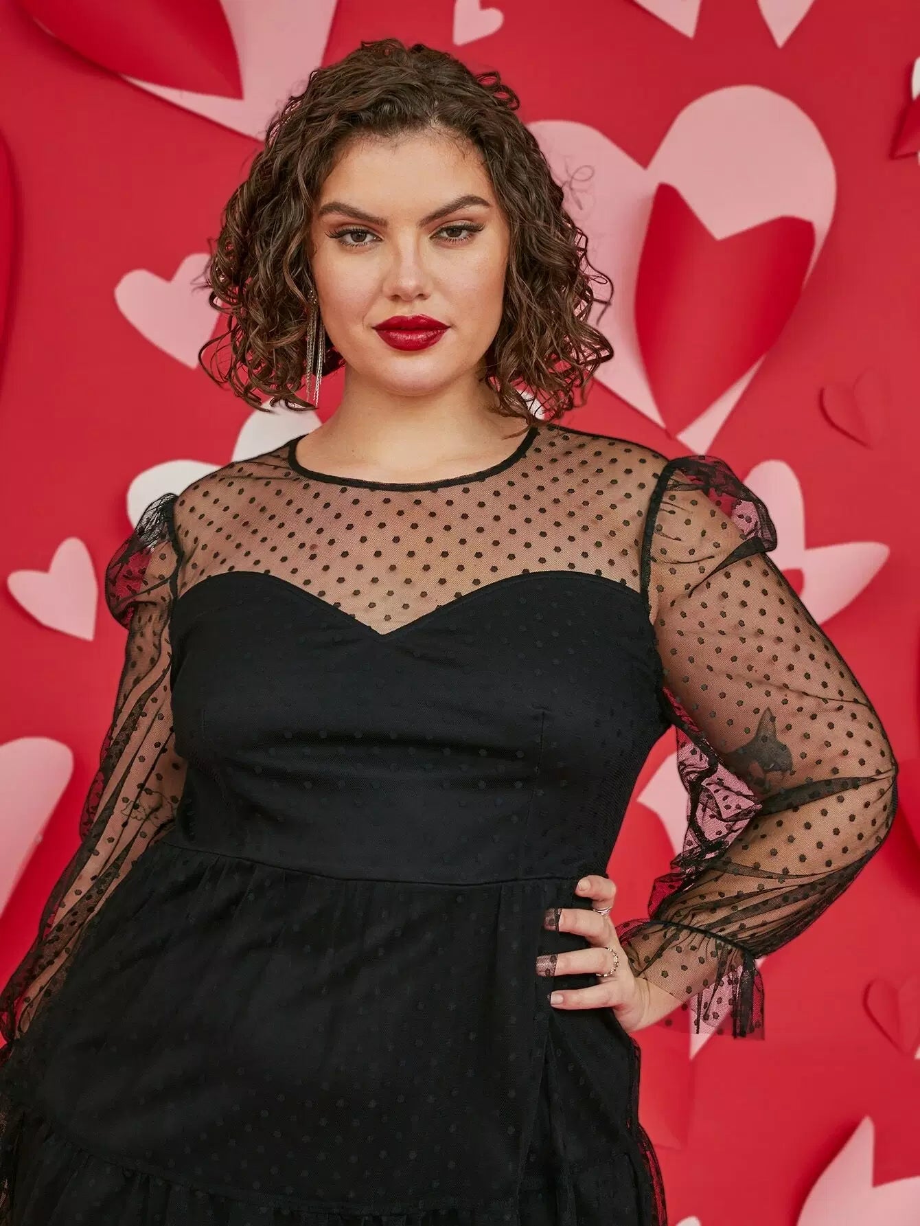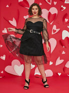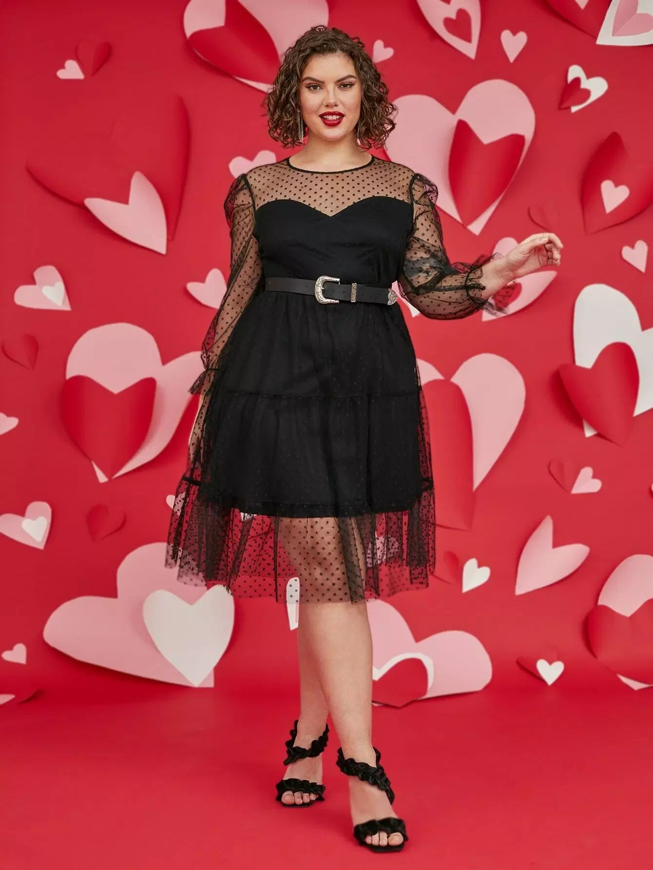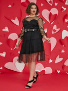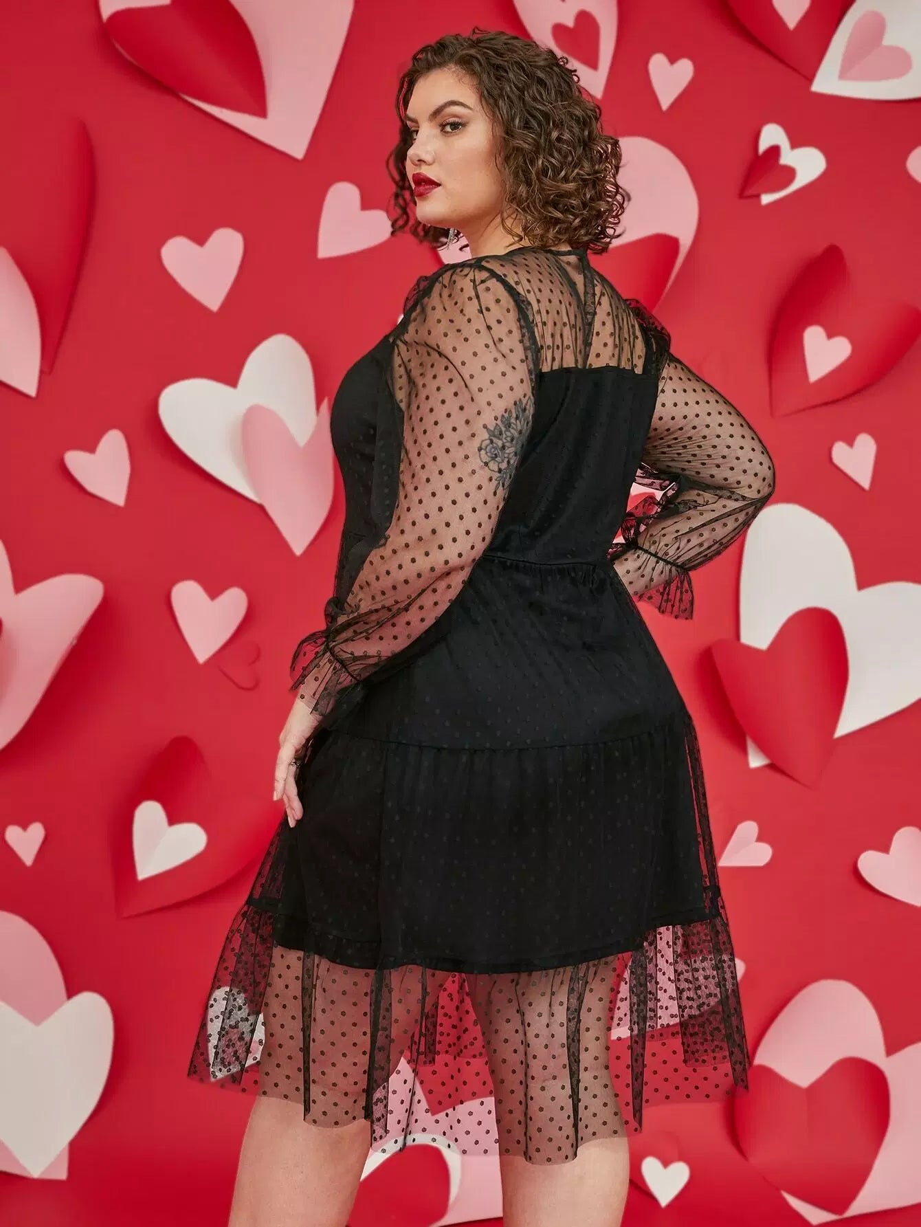 بالإضافة إلى فستان دوبي شبكي بدون حزام