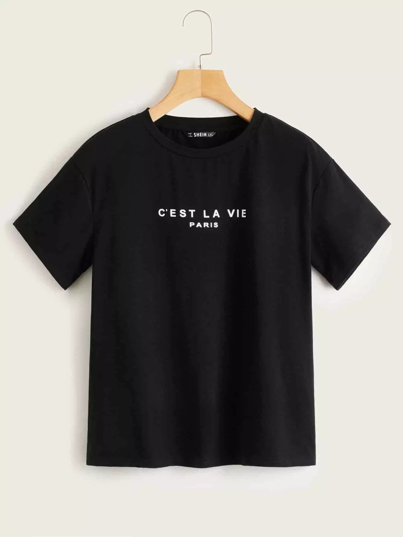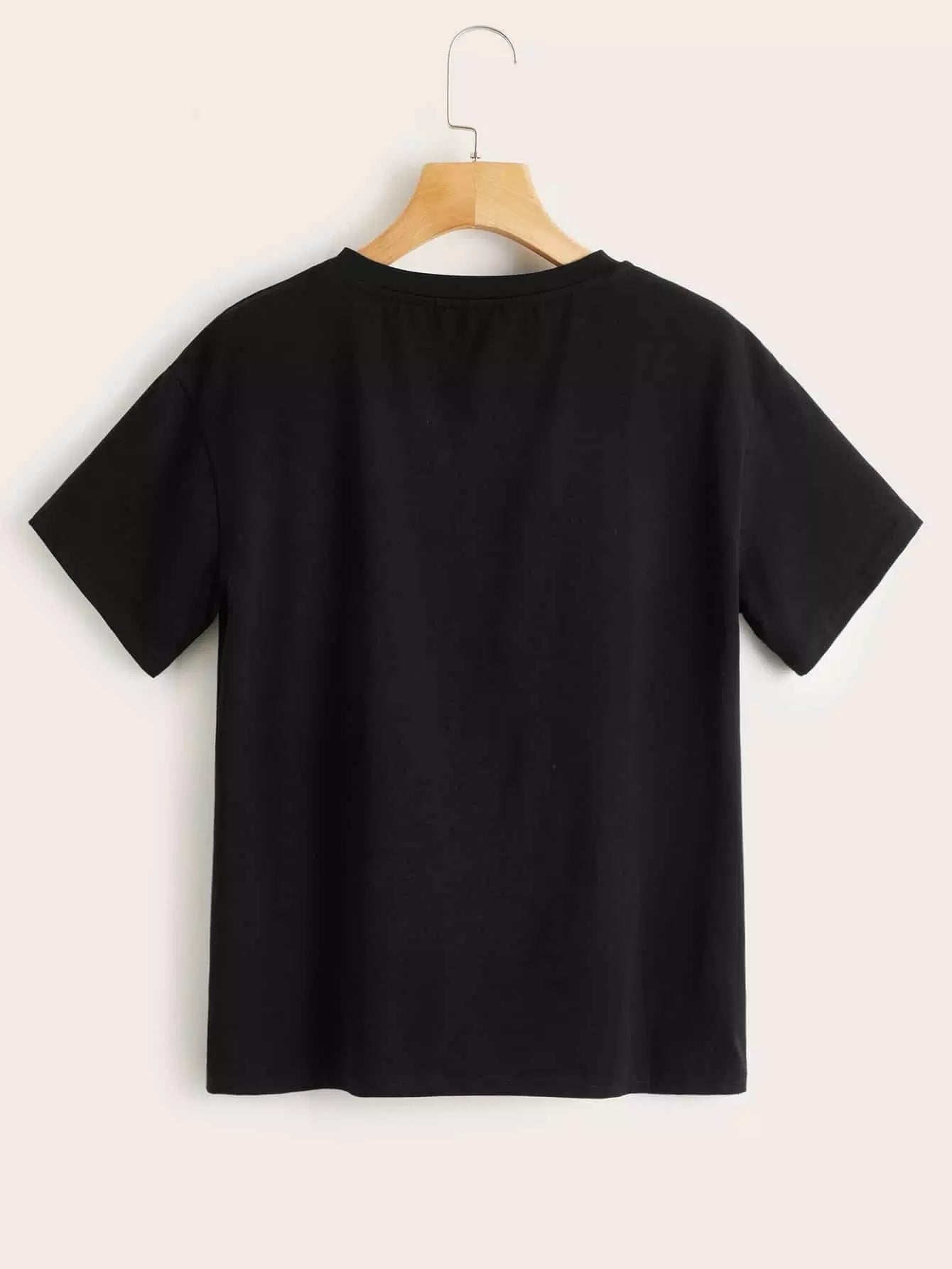 نحيف - مقاس كبير تي شيرت برسومات الشعار وأكتاف منسدلة