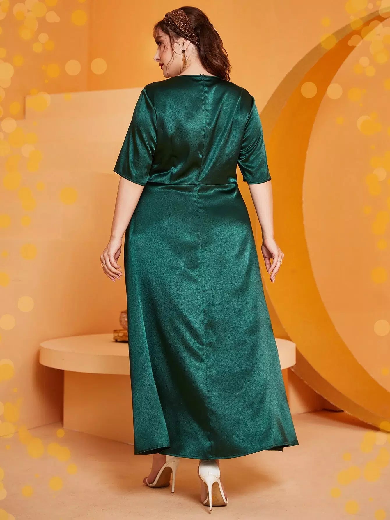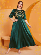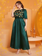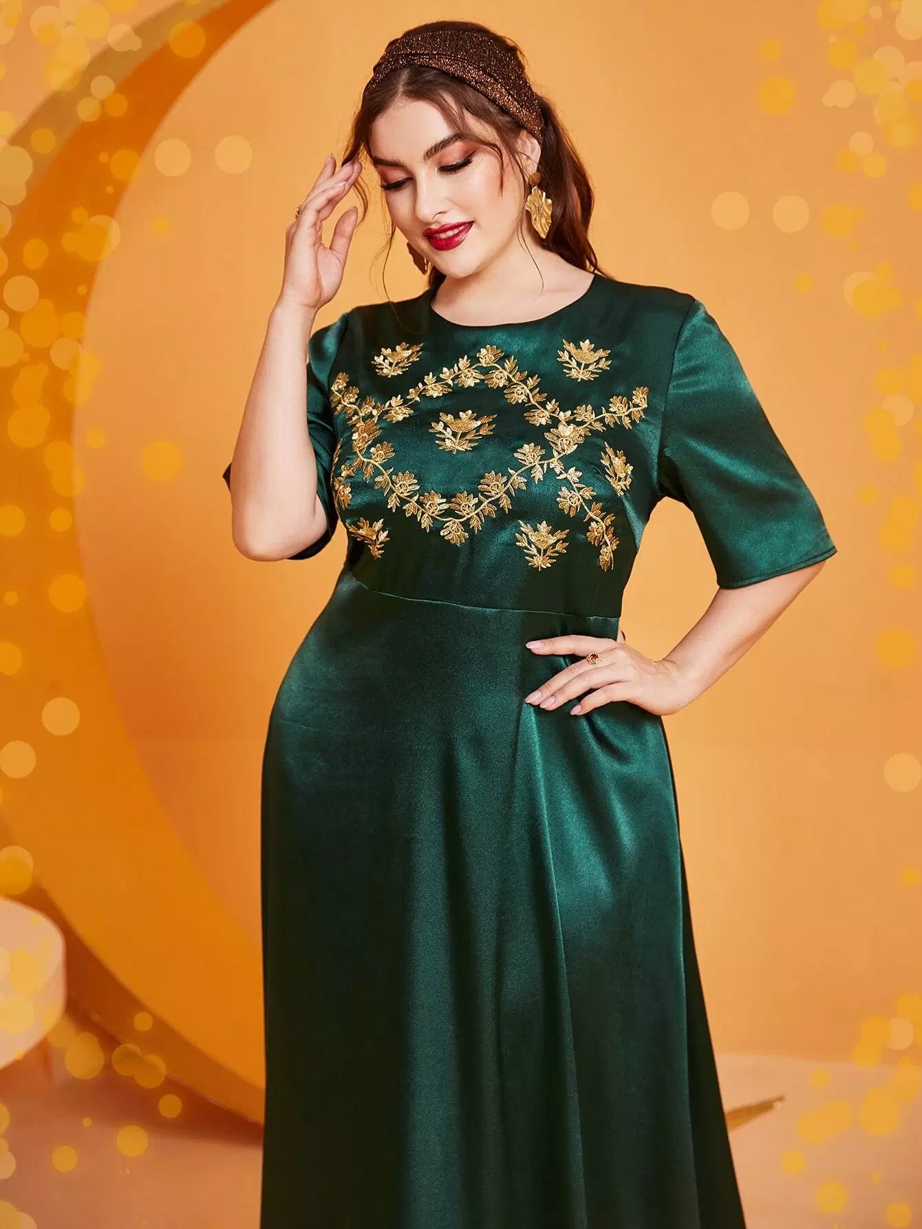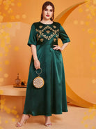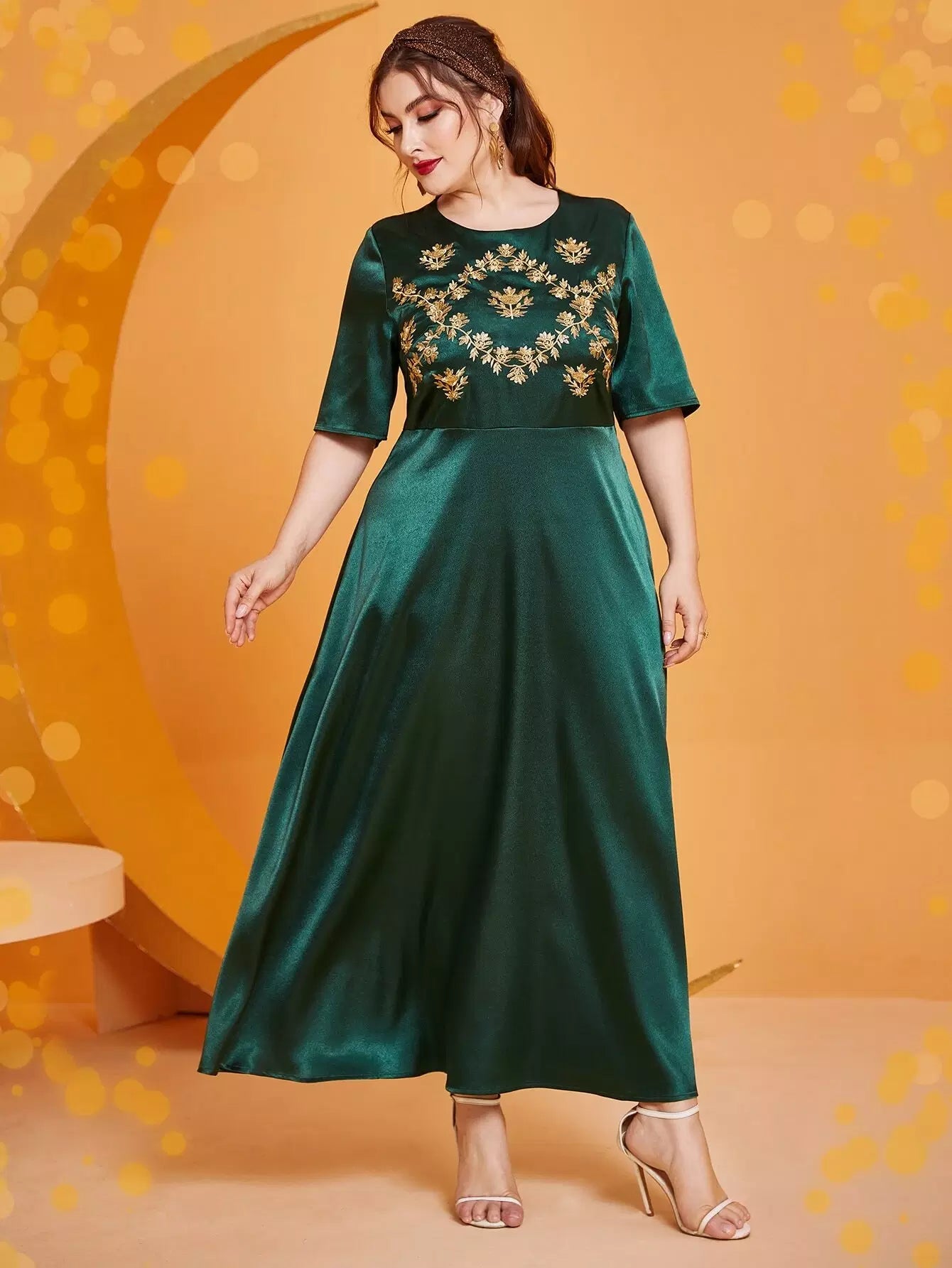 فستان ساتان برقبة مستديرة من الساتان مطرز بالزهور