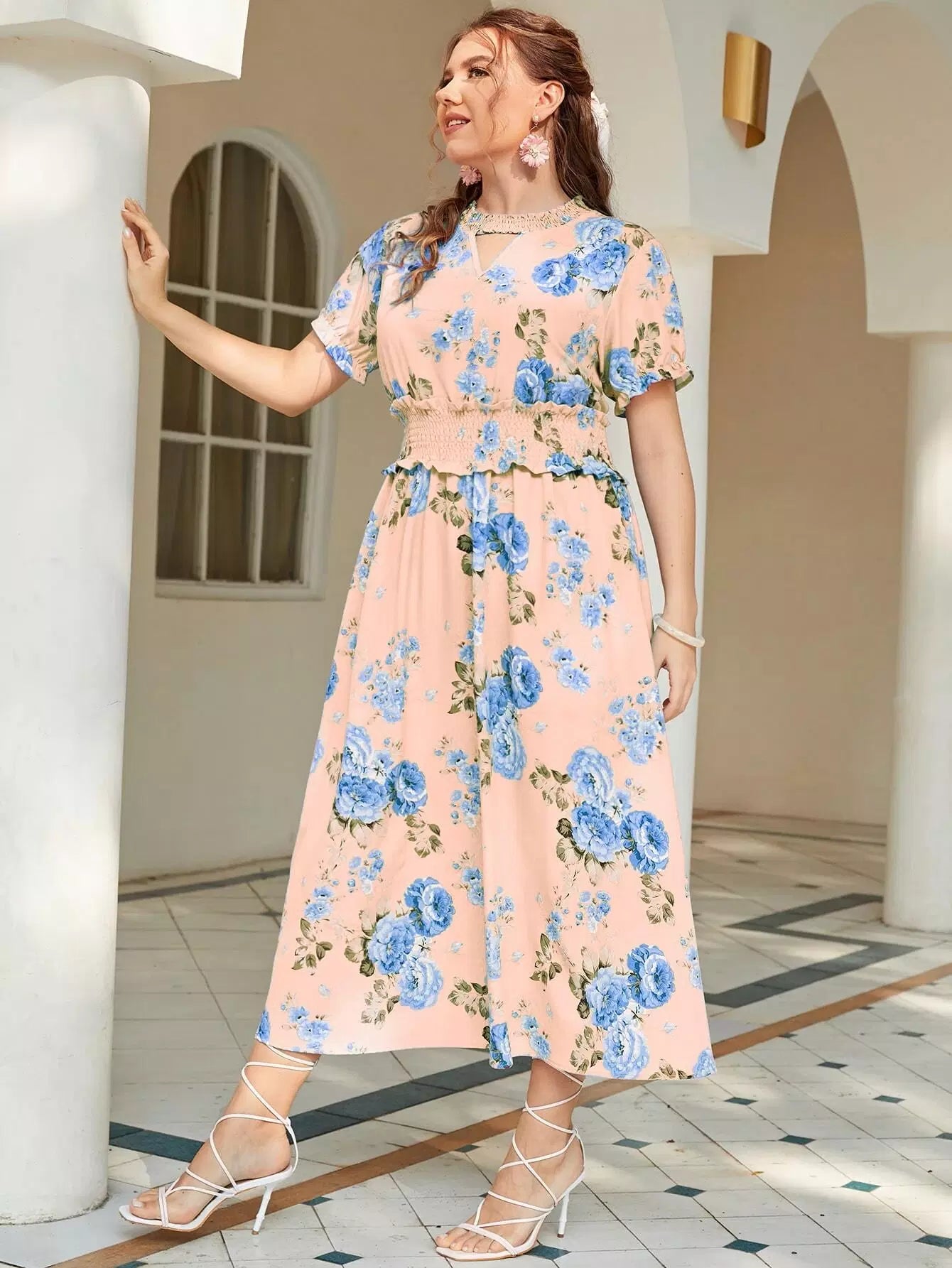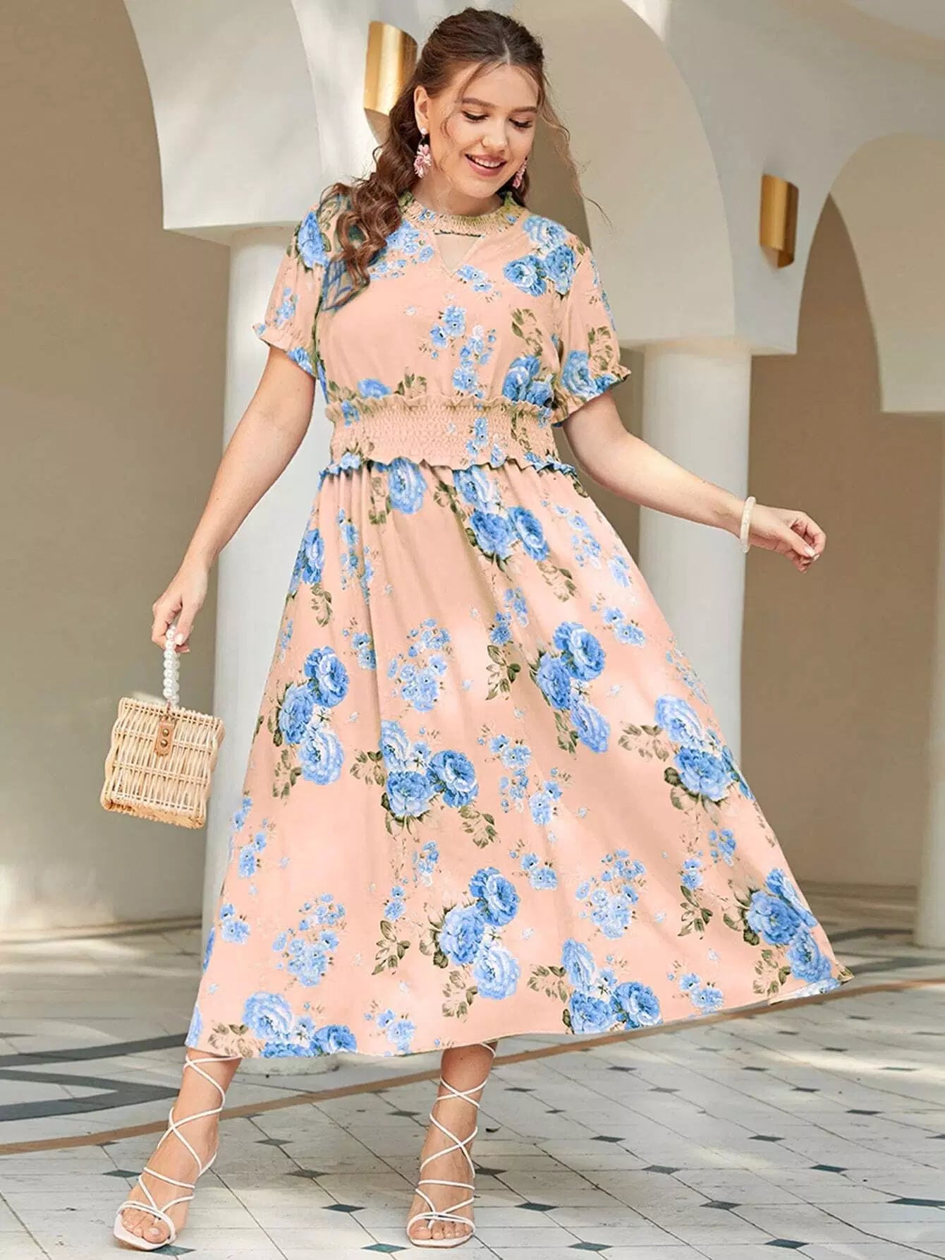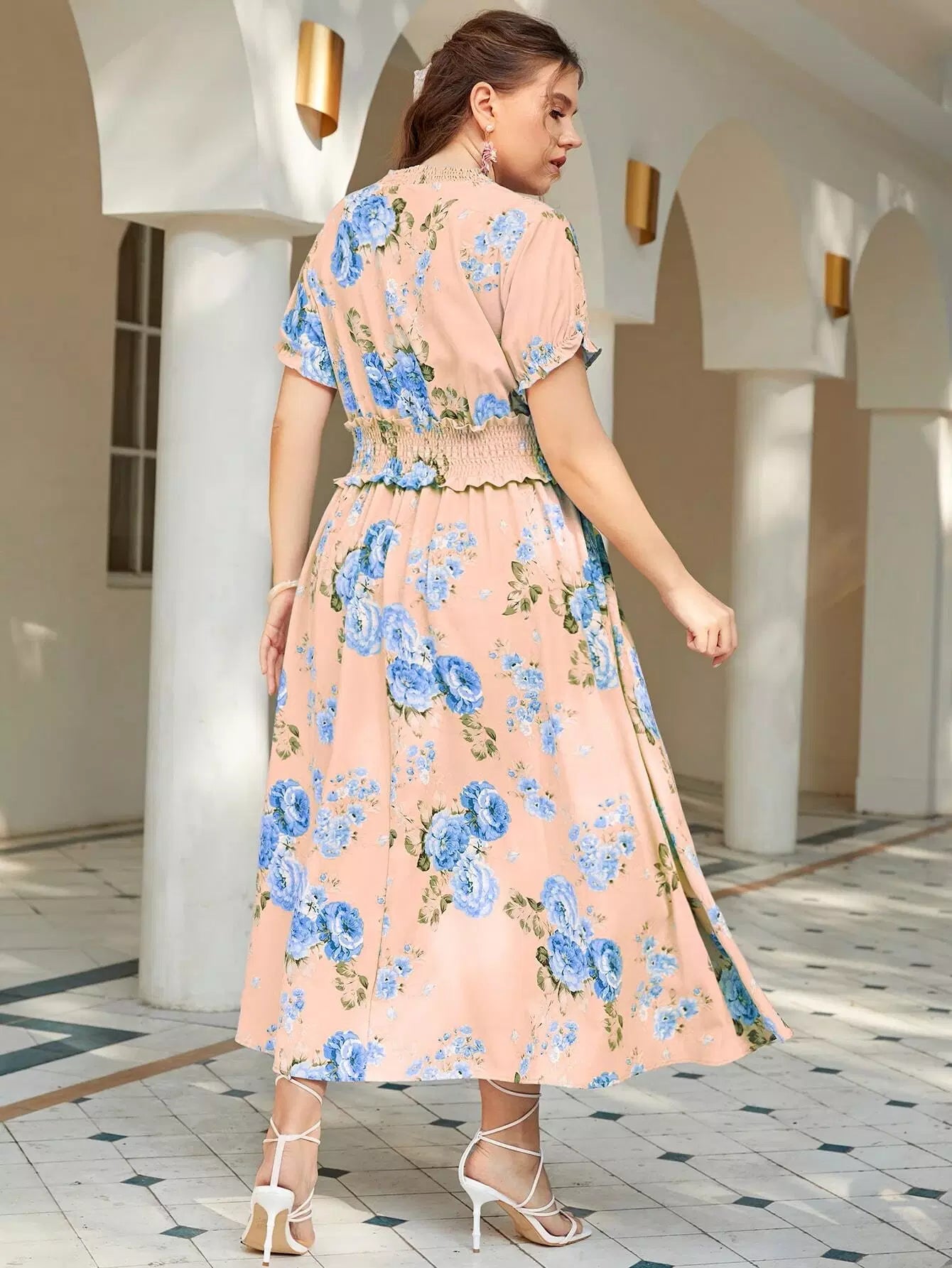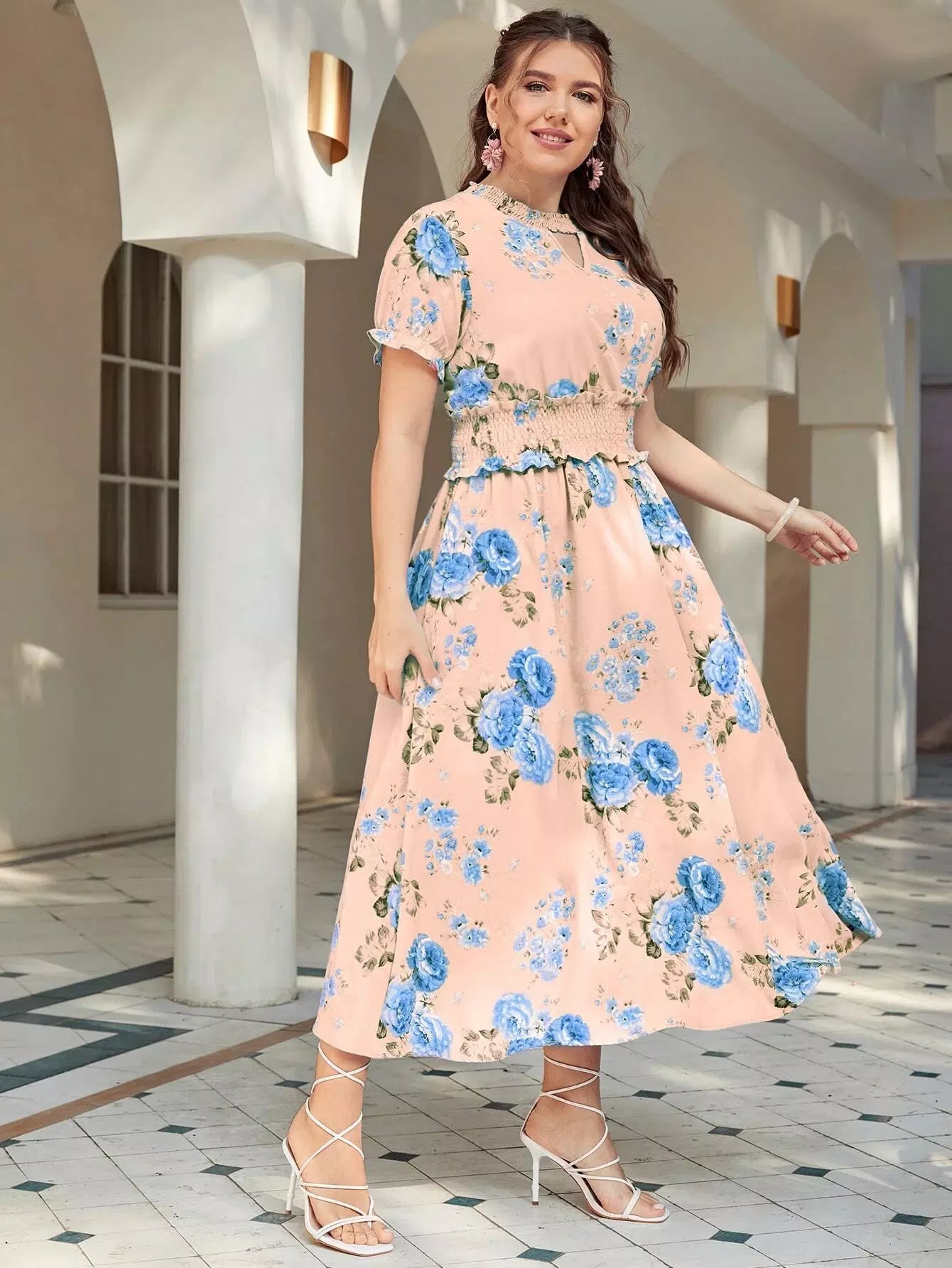 فستان كشكش على شكل حرف A بقصّة زهرية زائد