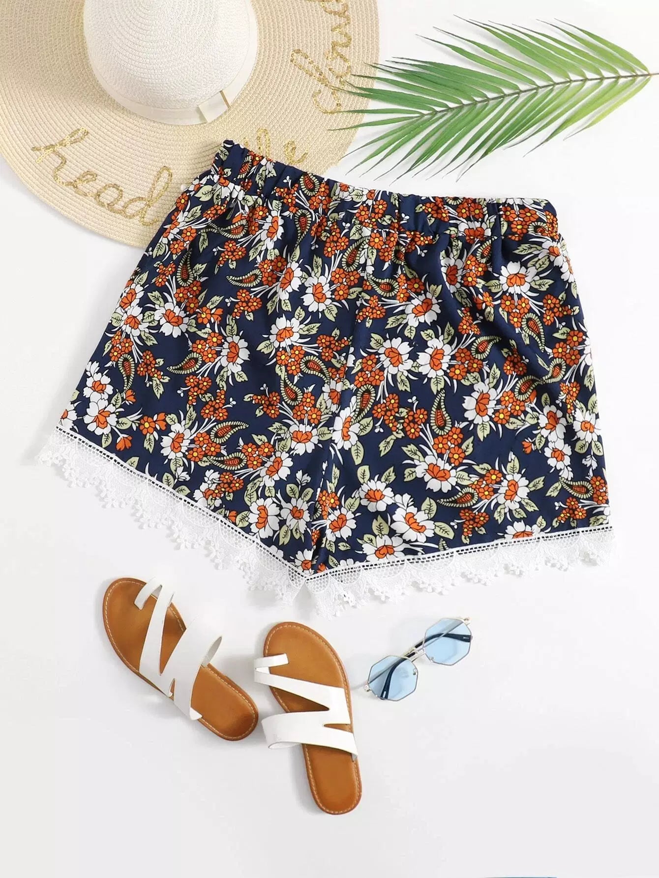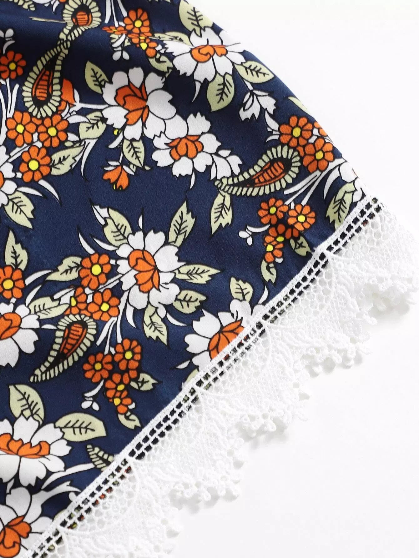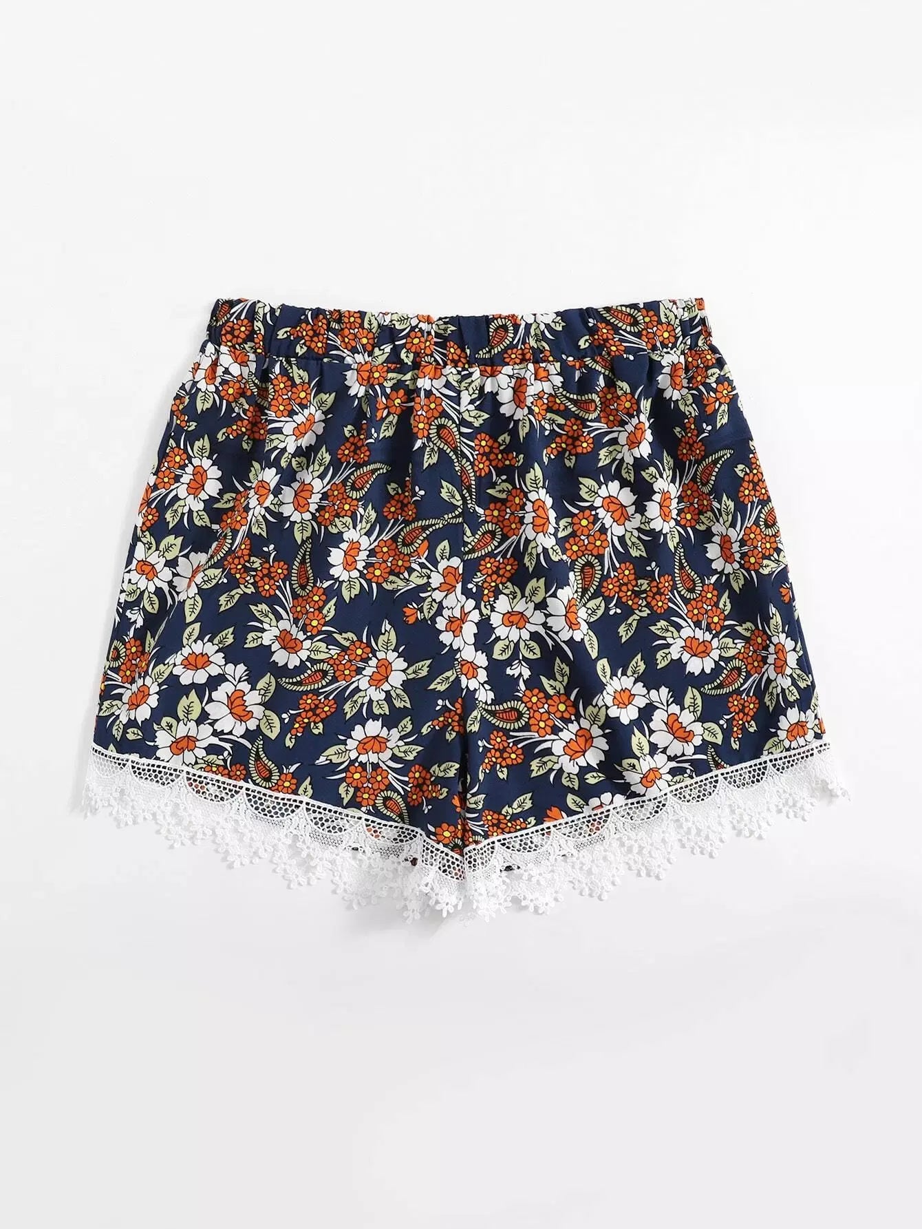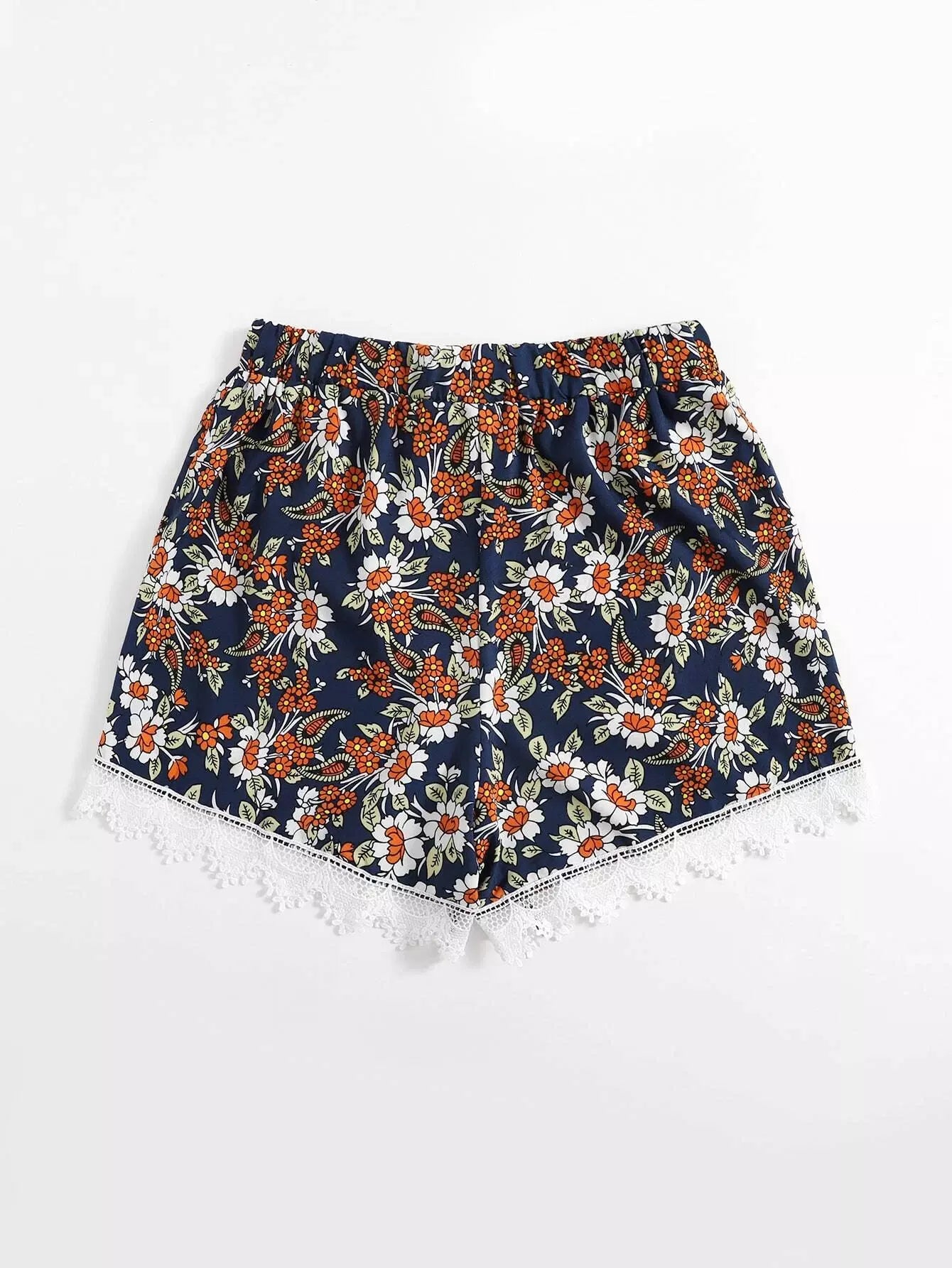 شورت دانتيل دانتيل بطبعة زهور بلون مغاير بلون زائد