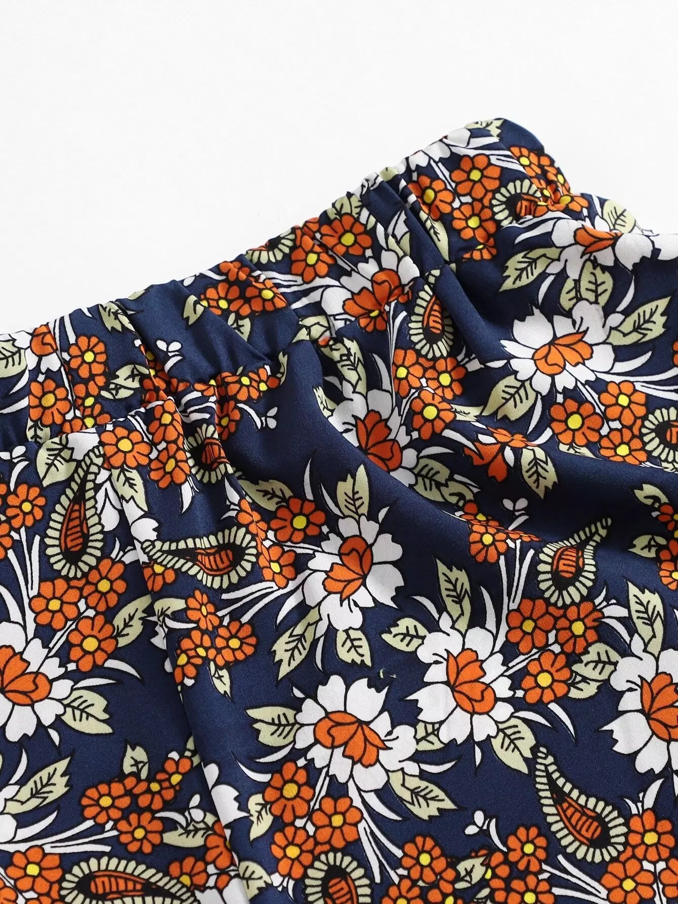 نحيف - مقاس كبير الأزهار الطباعة على النقيض من الدانتيل السراويل