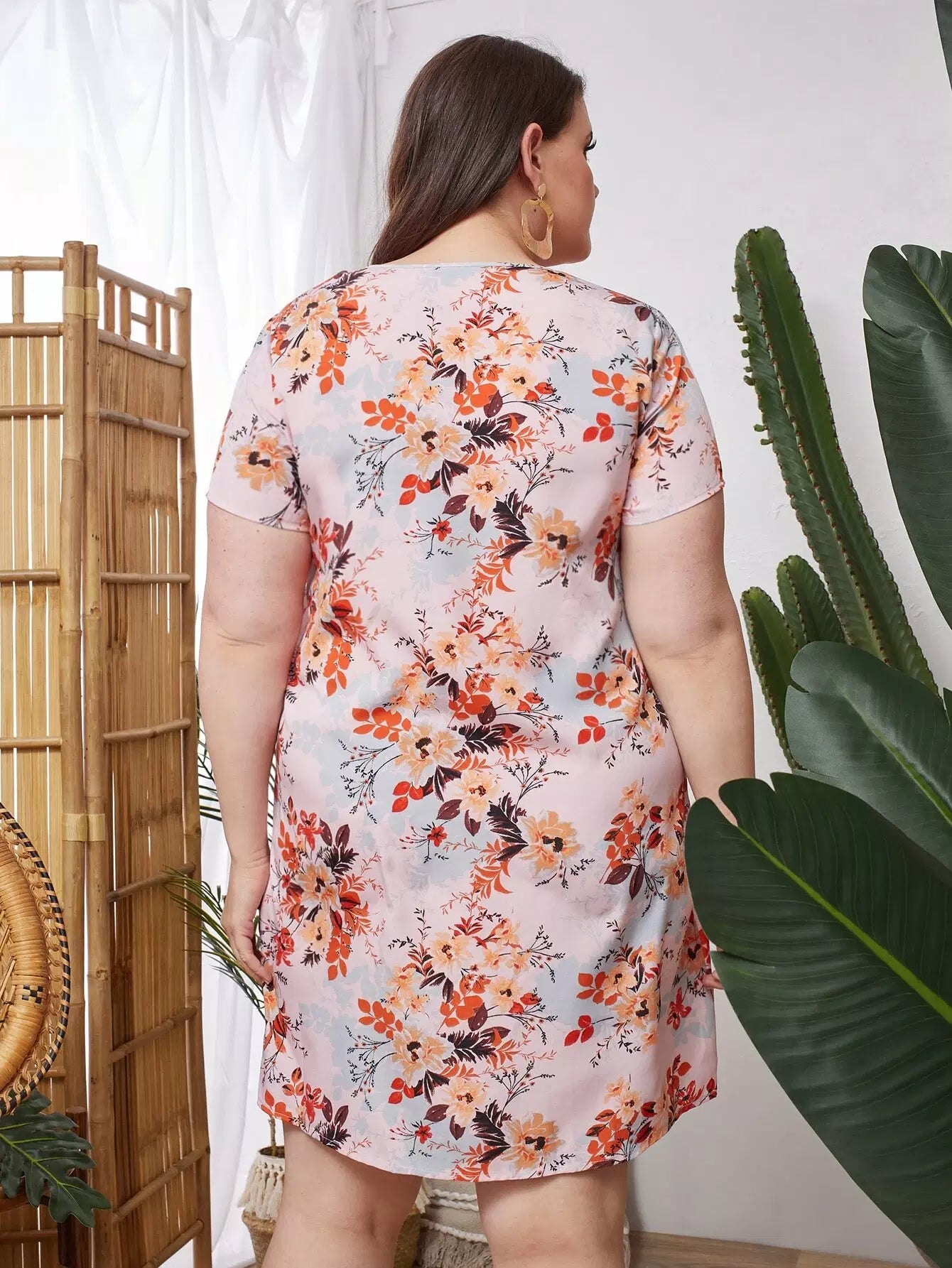 فستان بطبعة زهور زائد