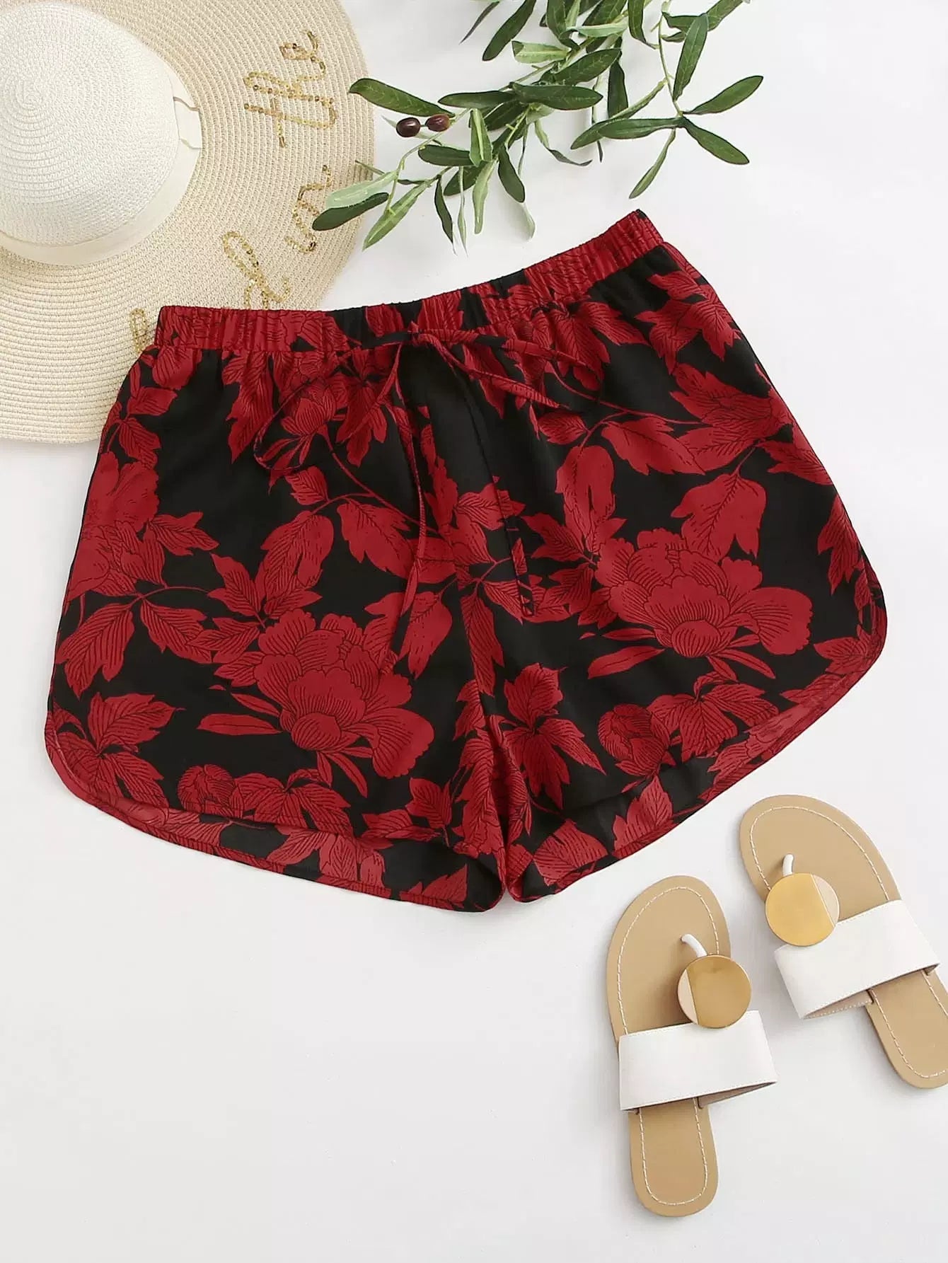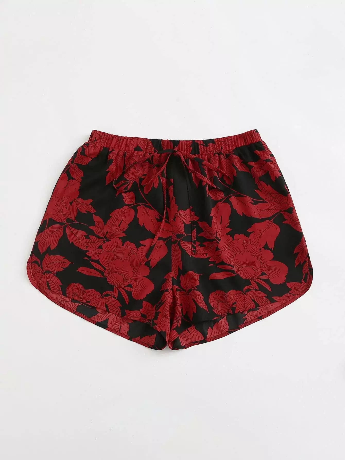 شورت قصير مزين بطبعة زهور مطبوع عليه عقدة زائد