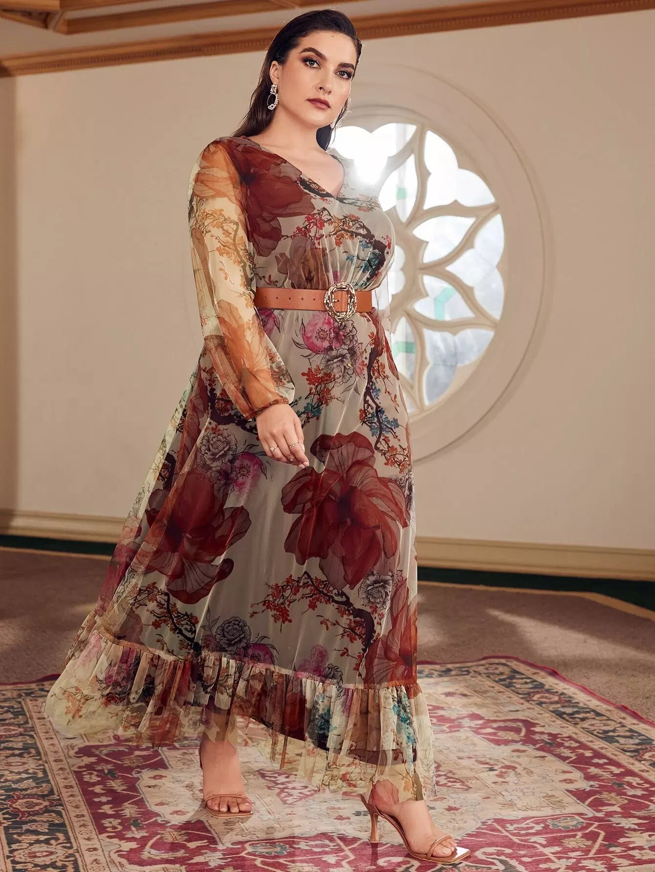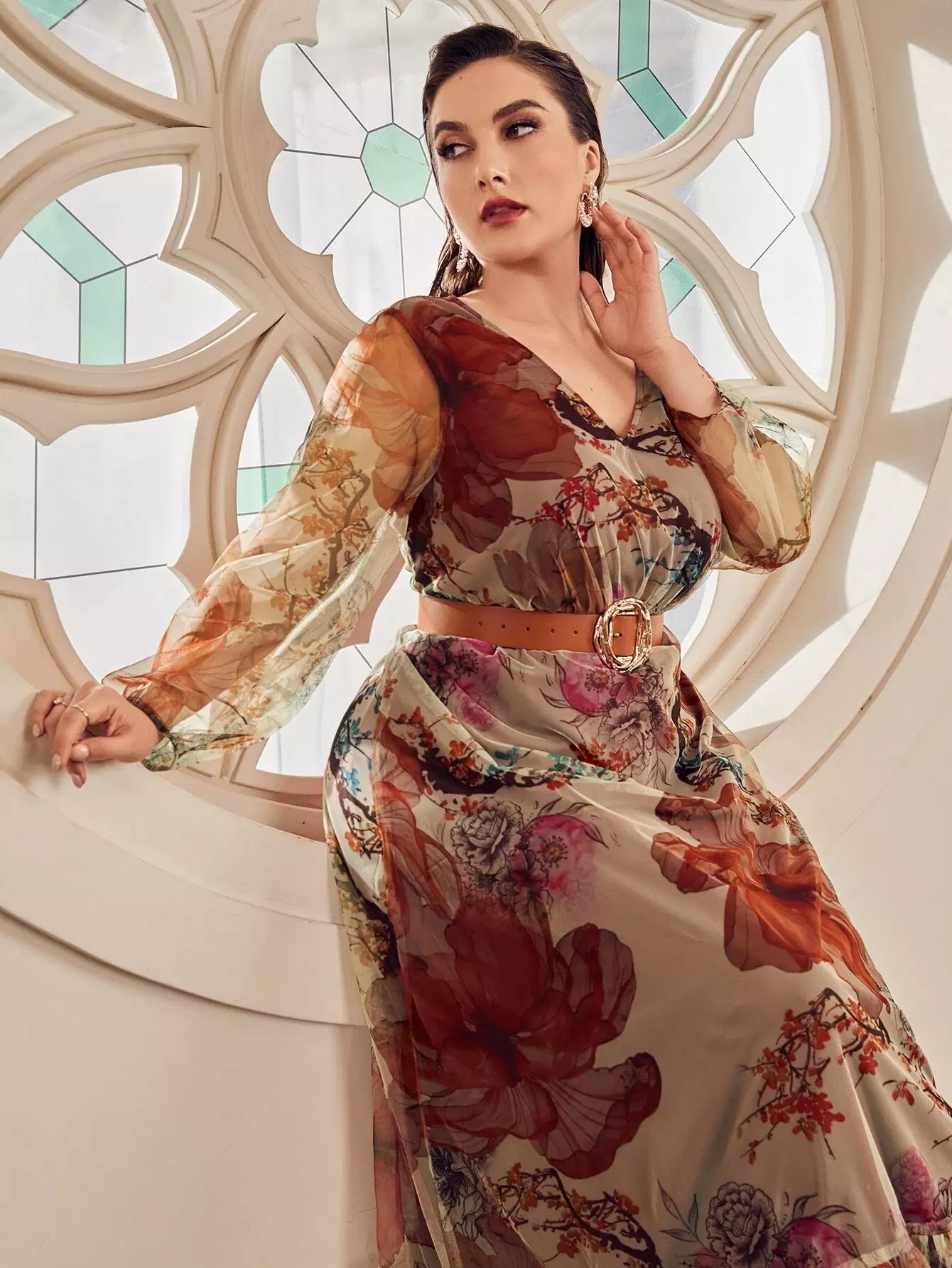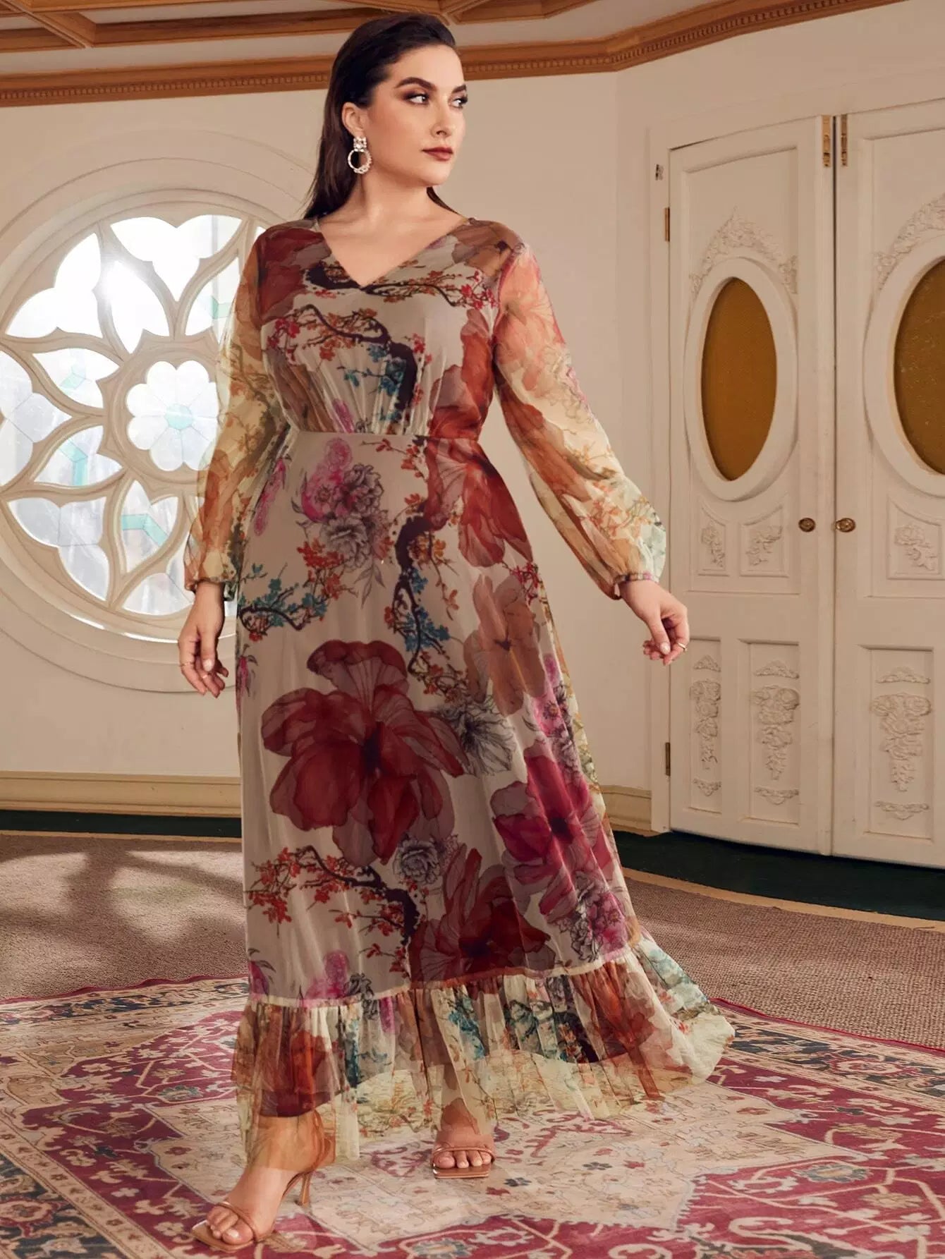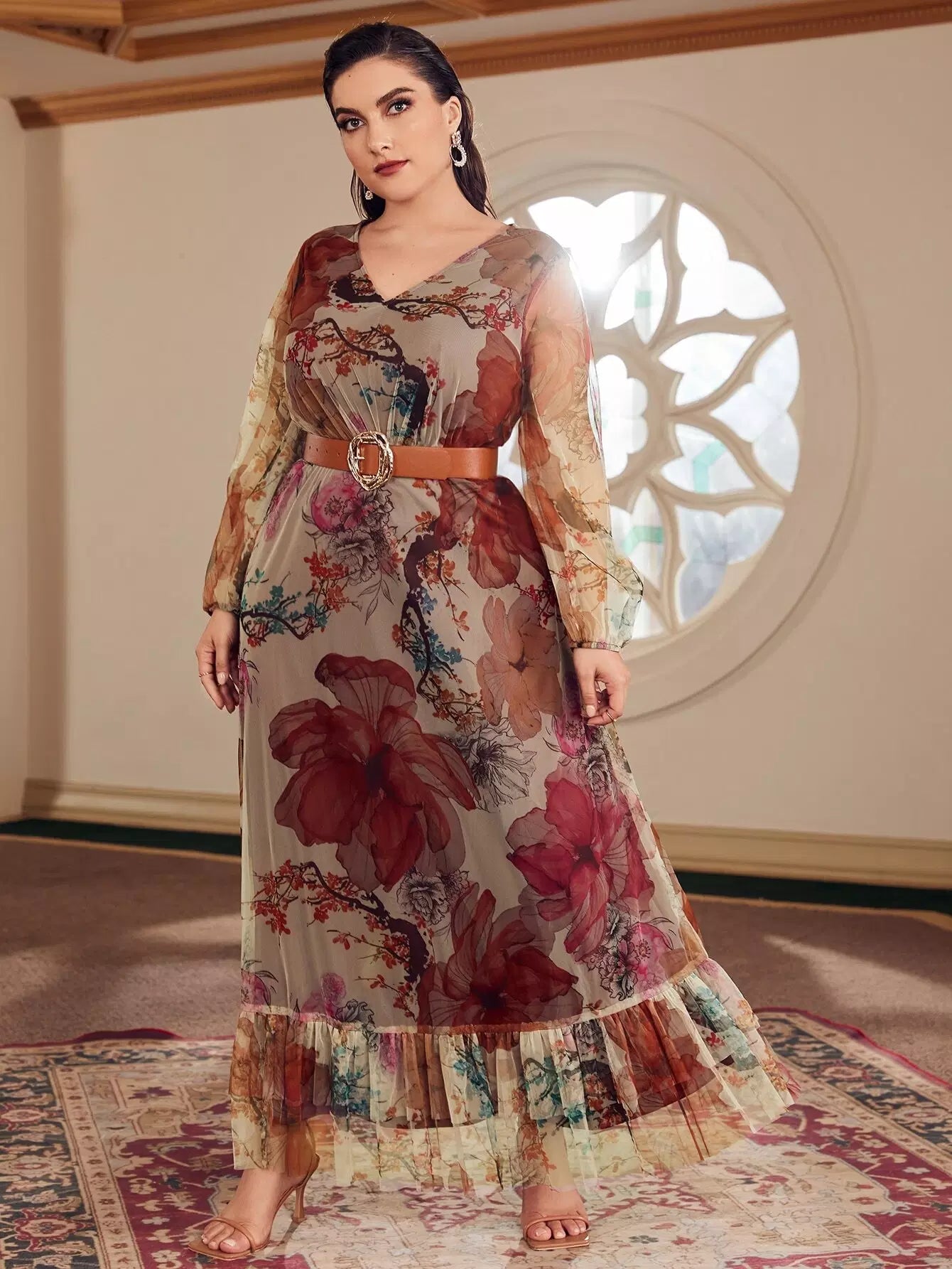 بالإضافة إلى فستان الحفلة الراقصة بأكمام واسعة وطبعة زهور بدون حزام