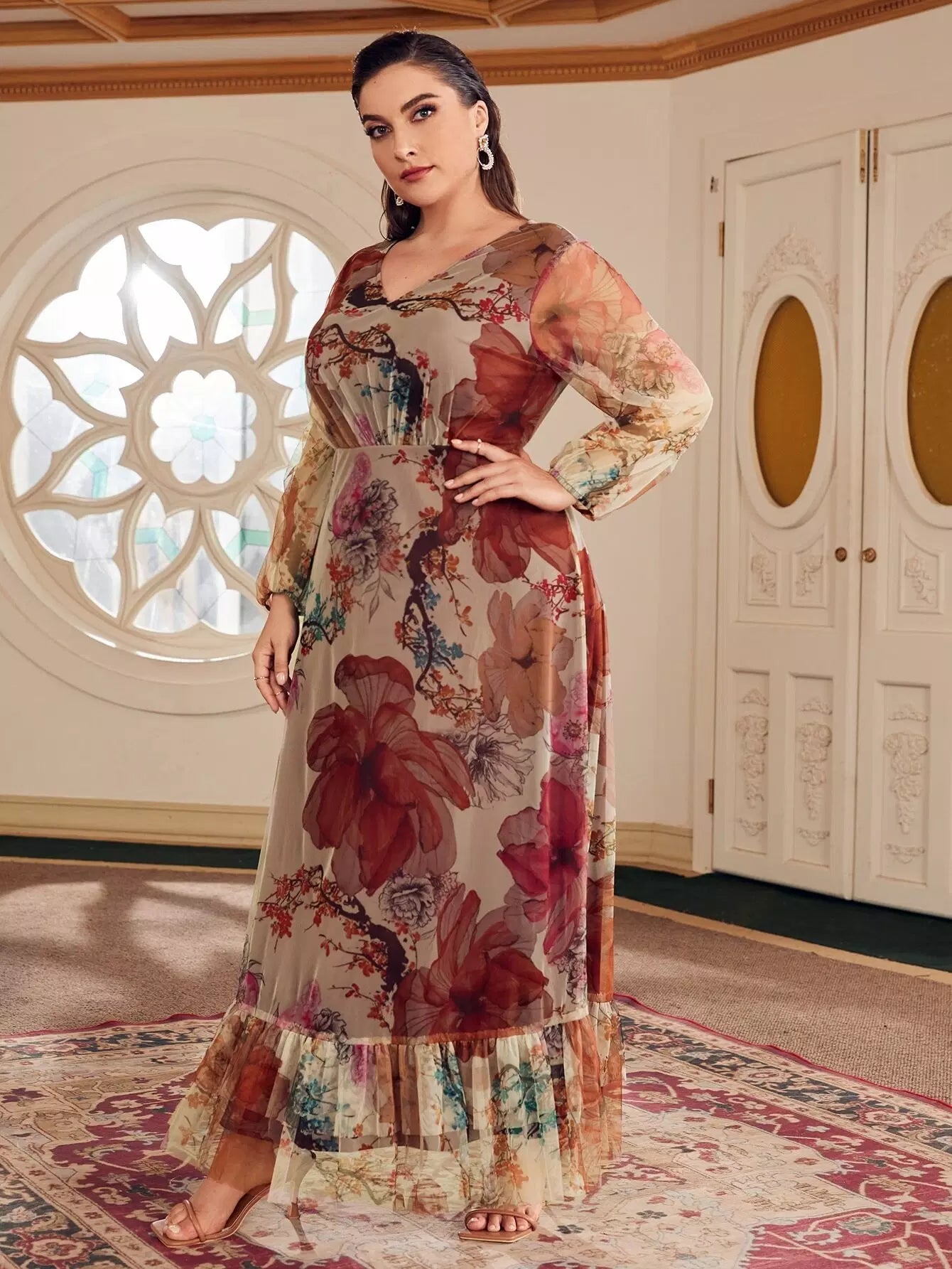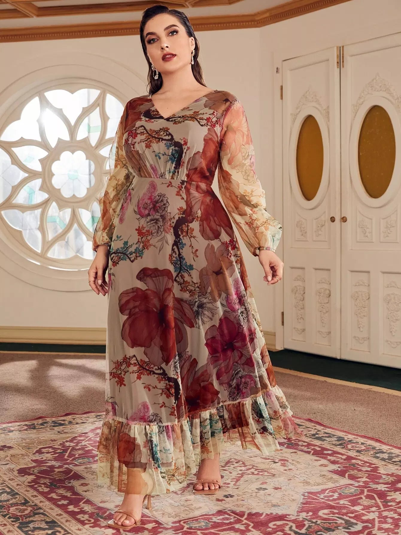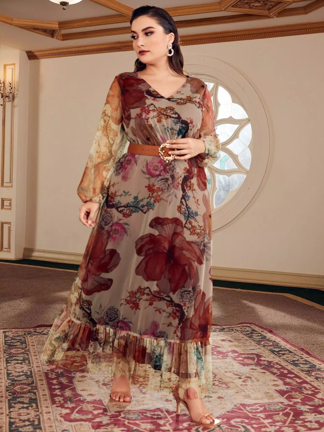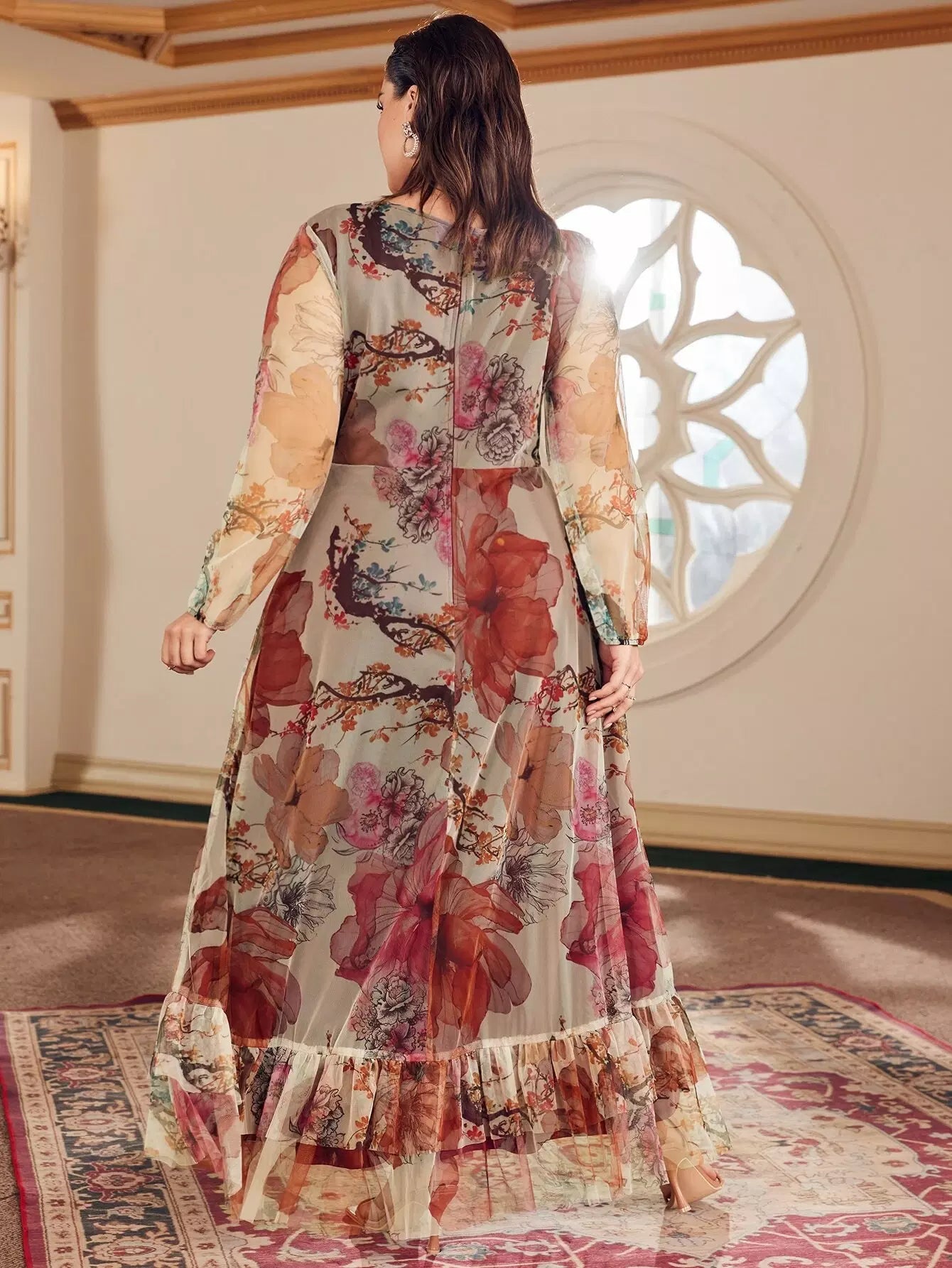 بالإضافة إلى فستان الحفلة الراقصة بأكمام واسعة وطبعة زهور بدون حزام