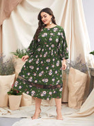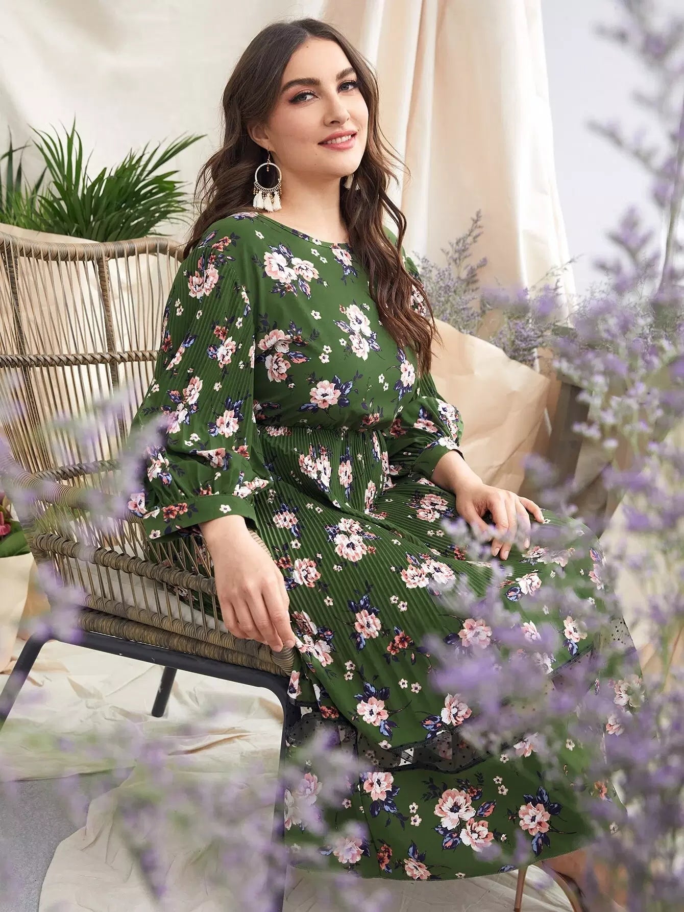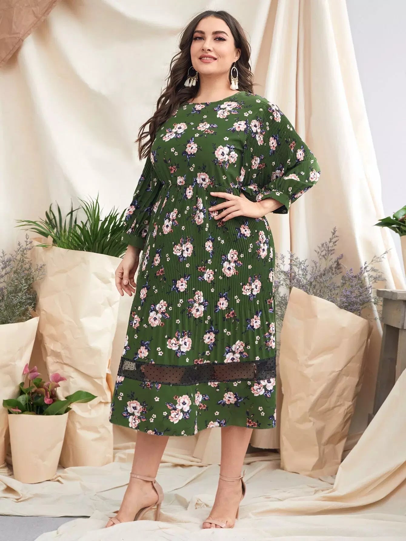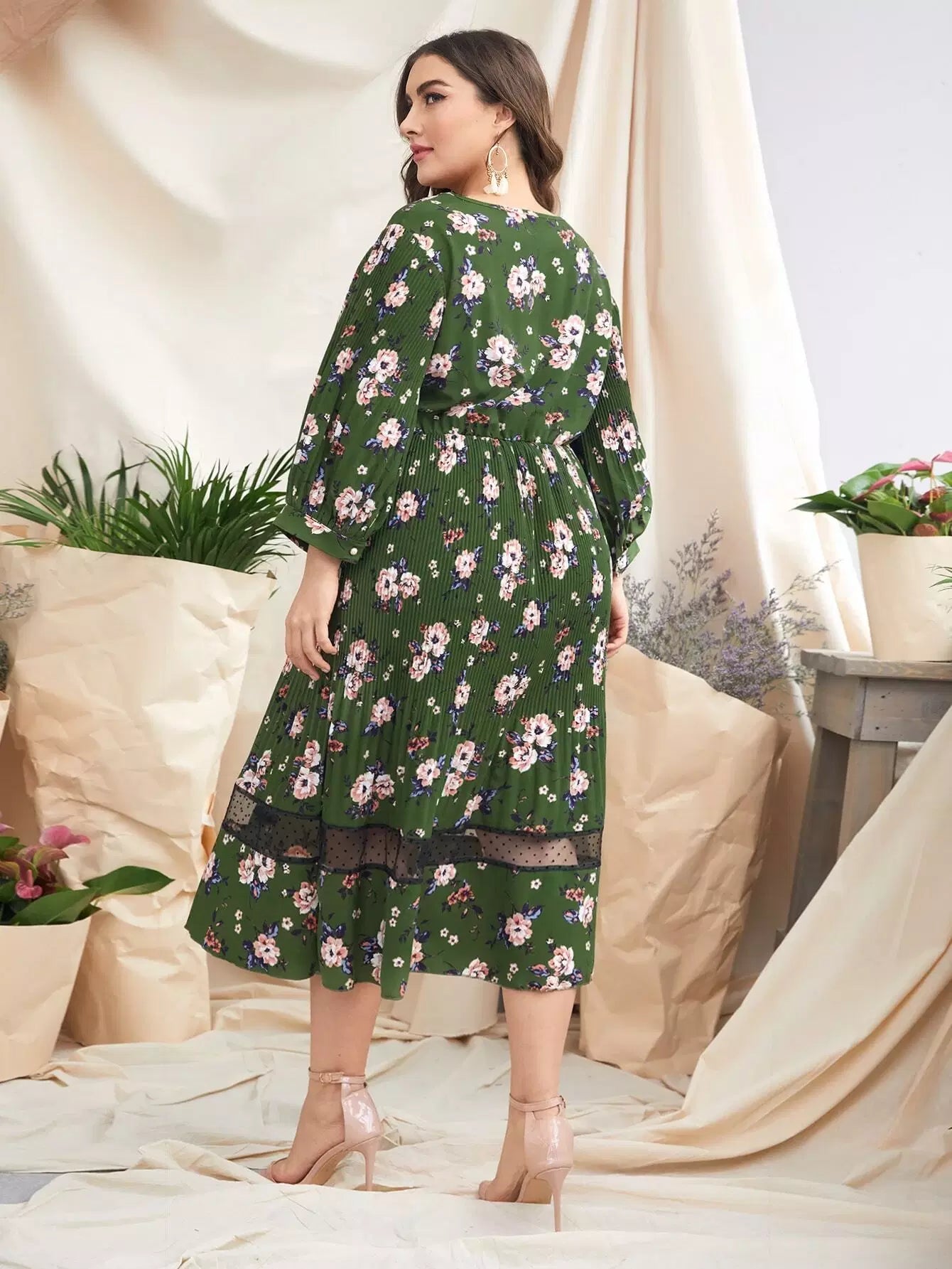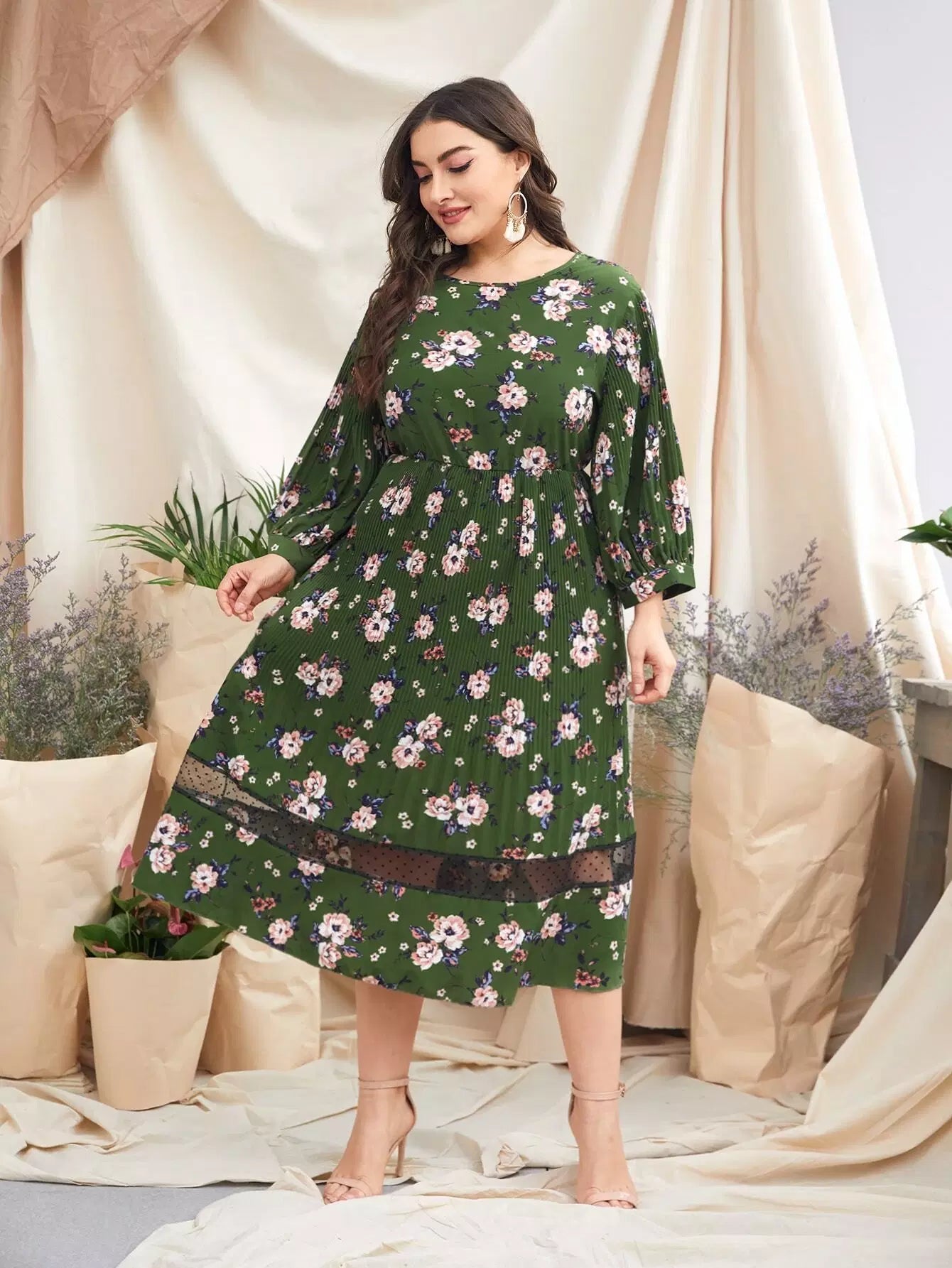 فستان مزين بطبعة زهور زائد بطبعة زهور وشبكة على شكل حرف A