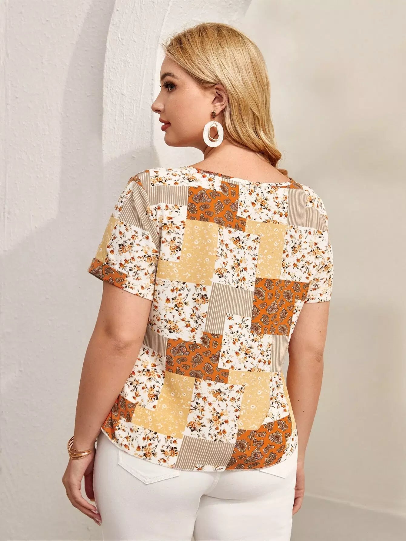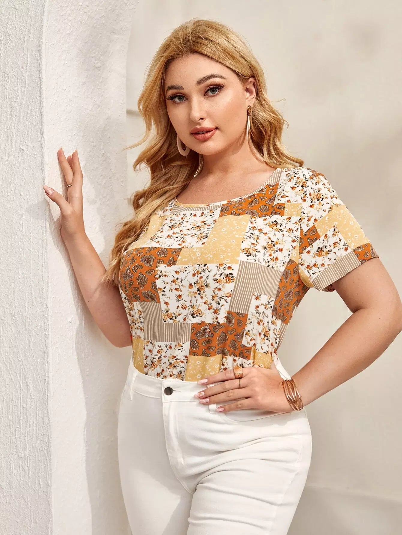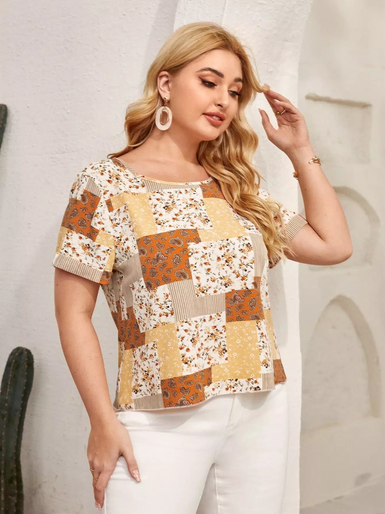 بلوزة مرقعة بطبعة زهور مرقعة زائد