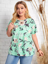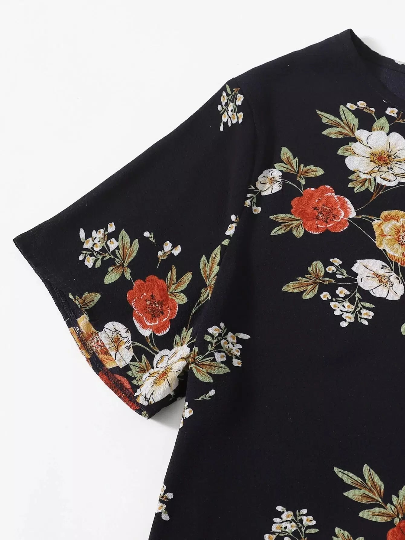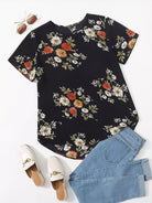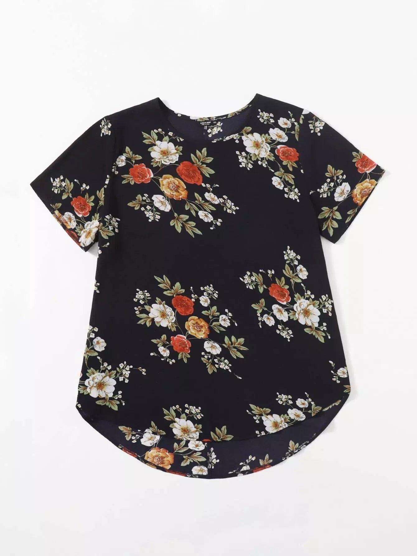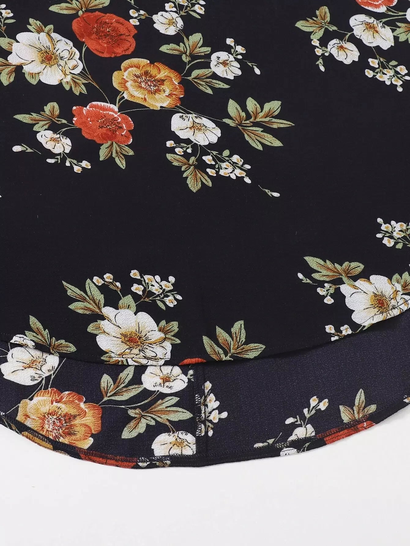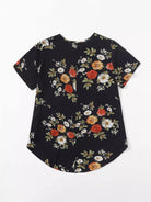 بلوزة برقبة دائرية برقبة دائرية مطبوع عليها زهور
