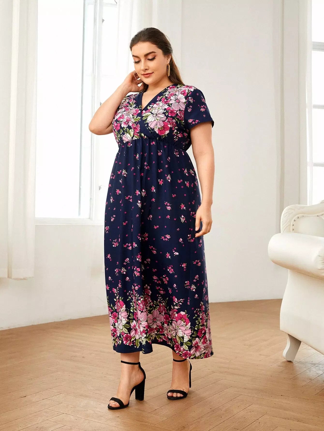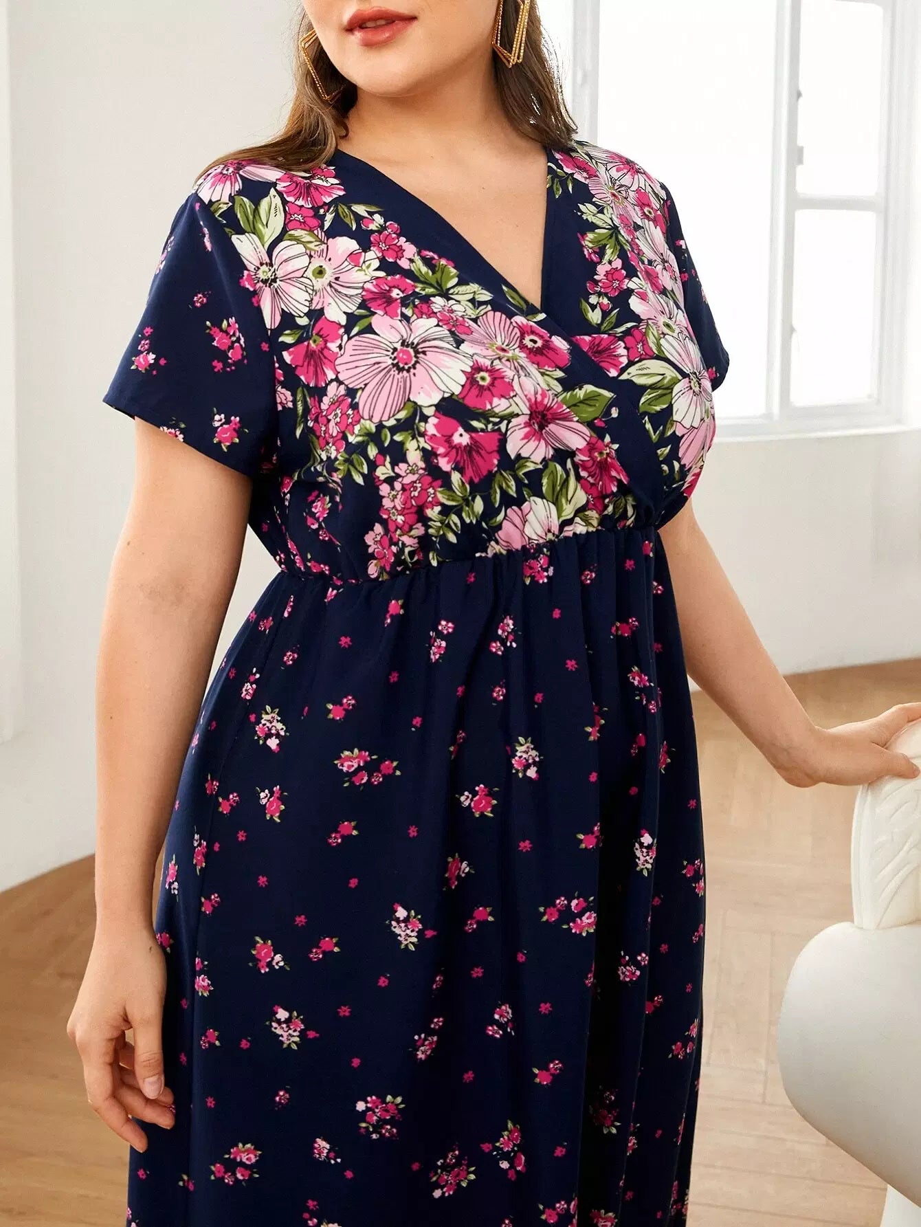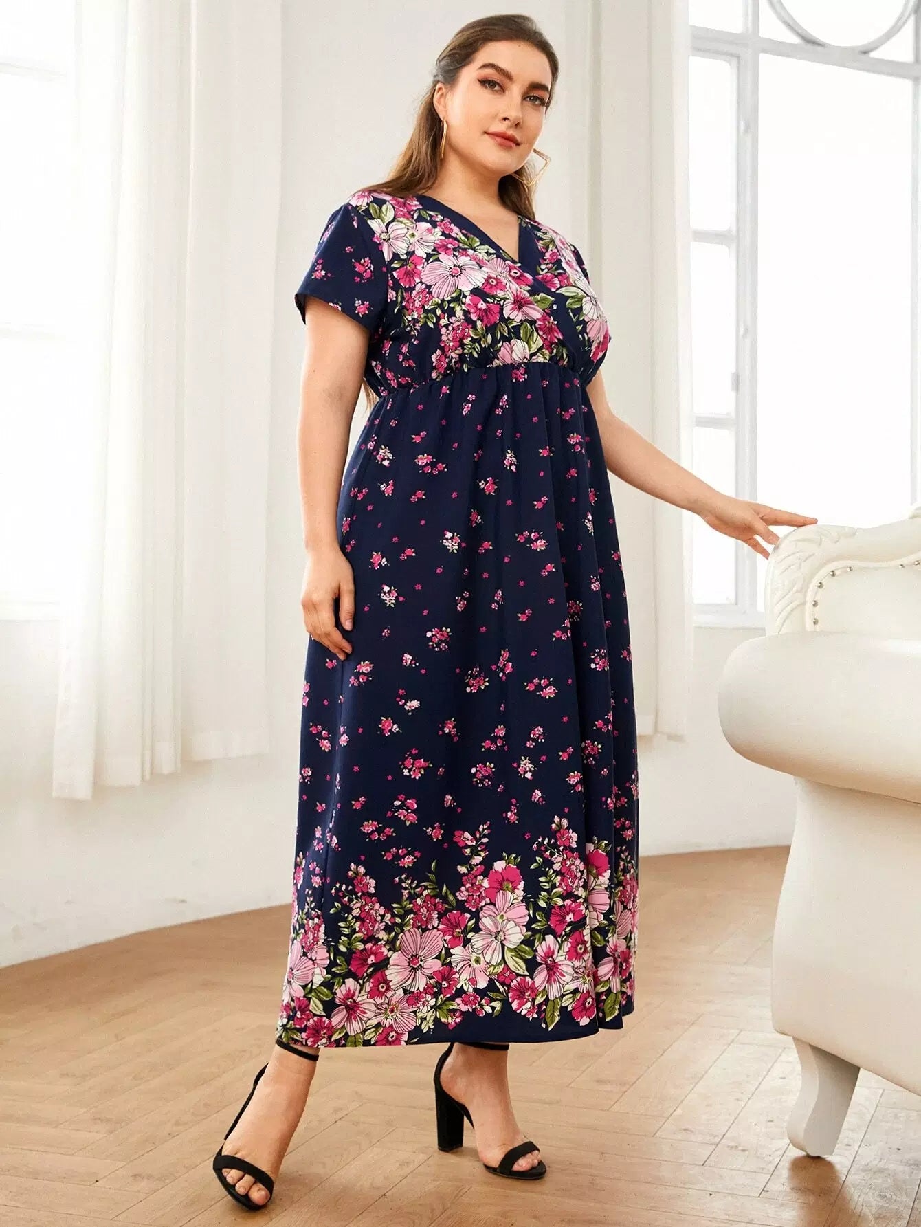 فستان بياقة على شكل حرف A برقبة على شكل حرف A مطبوع بالزهور