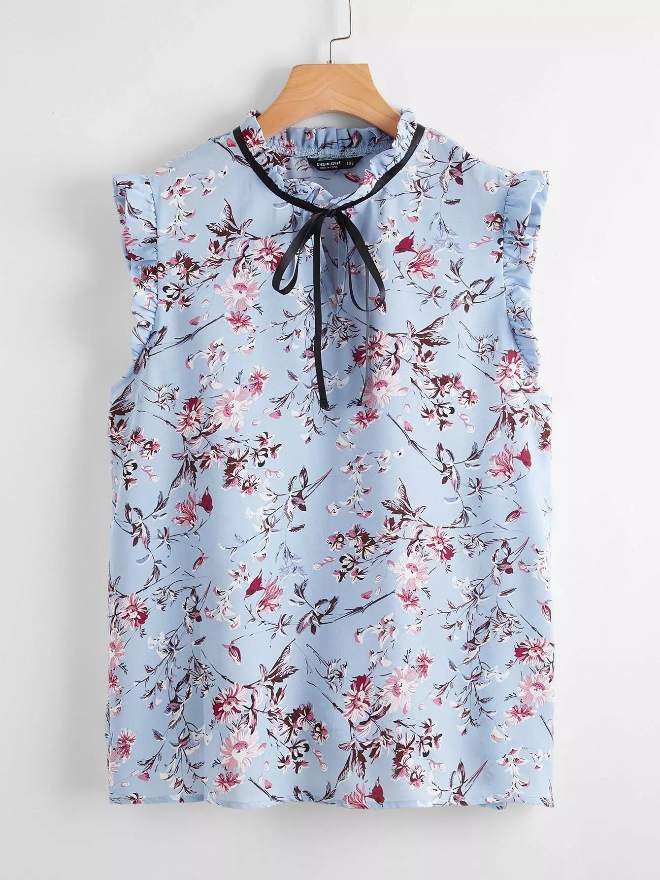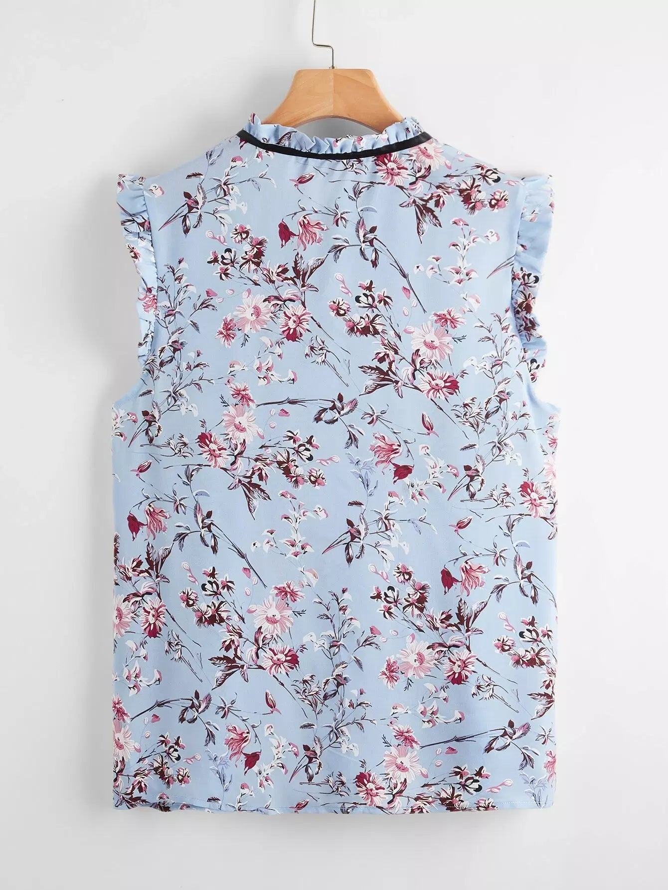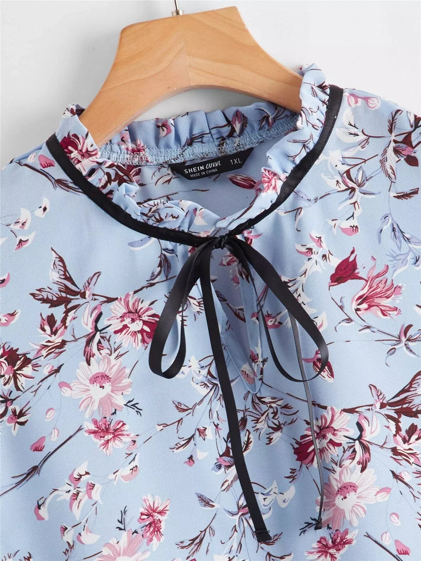 بلوزة زائد كشكش مزينة بربطة عنق زهرية برقبة زائدة