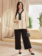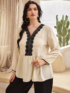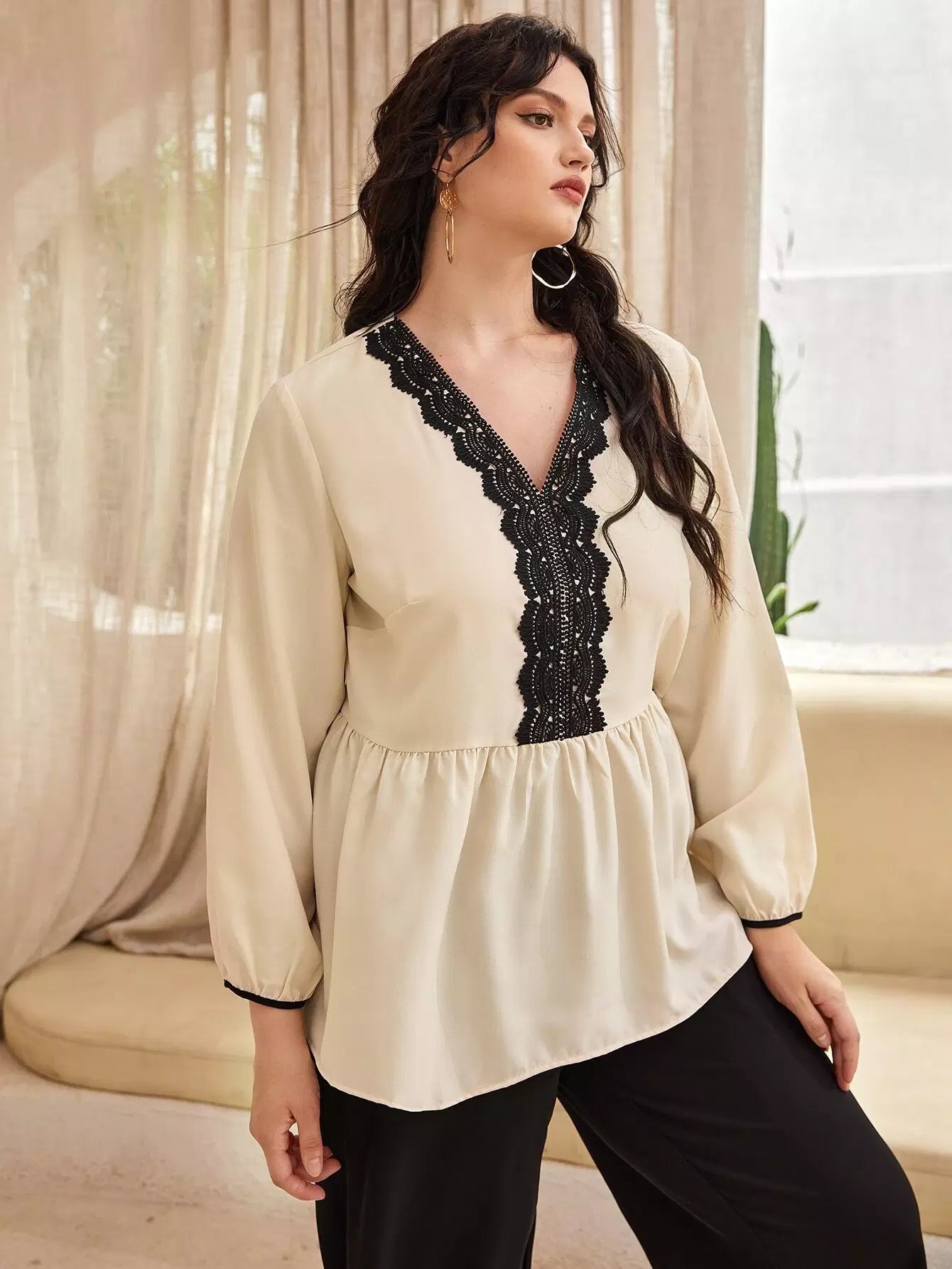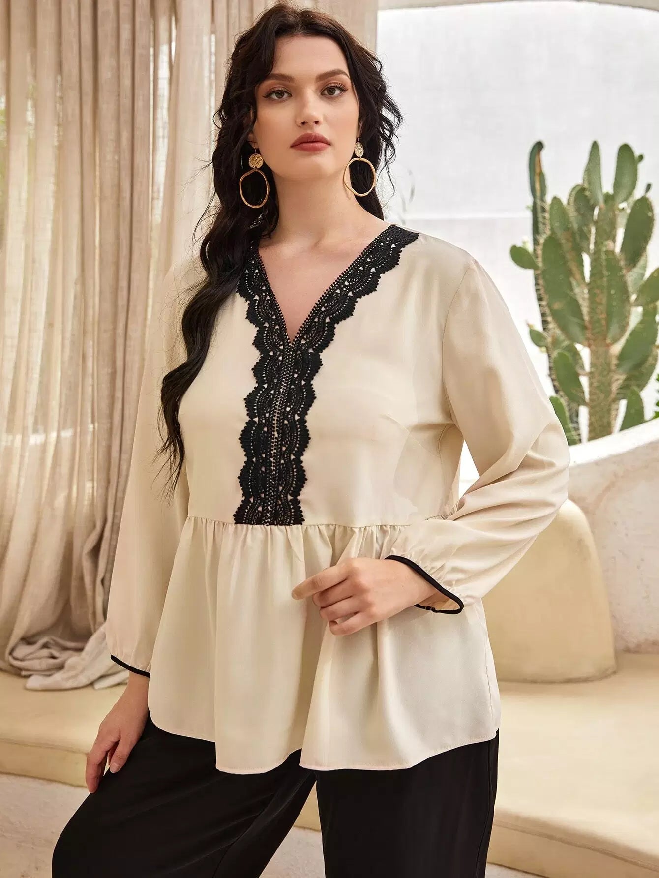 بلوزة من الدانتيل المخرّم المخرّم المزيّن بالدانتيل المخرّم