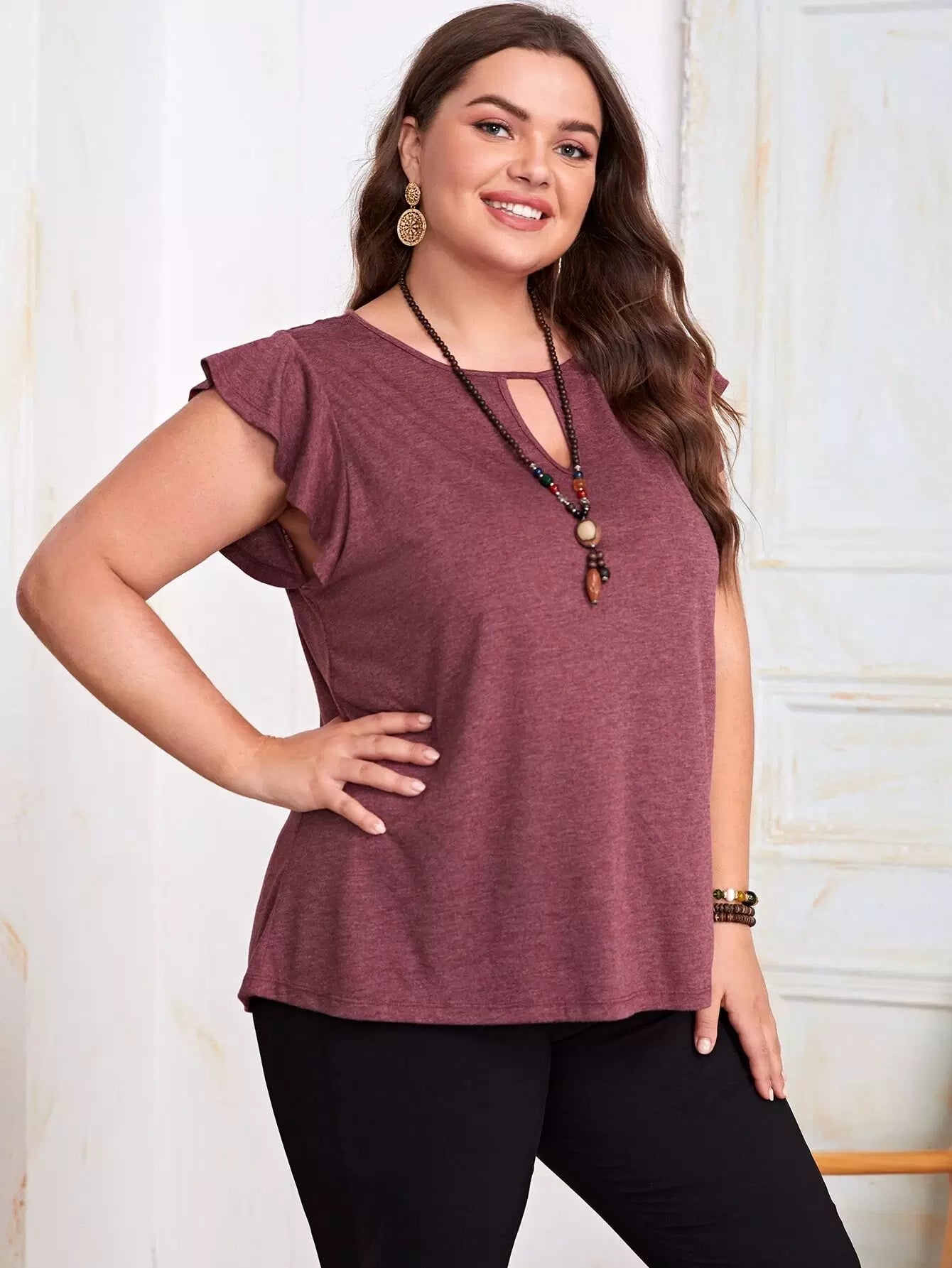 تي شيرت برقبة بفتحة عنق على شكل فراشة