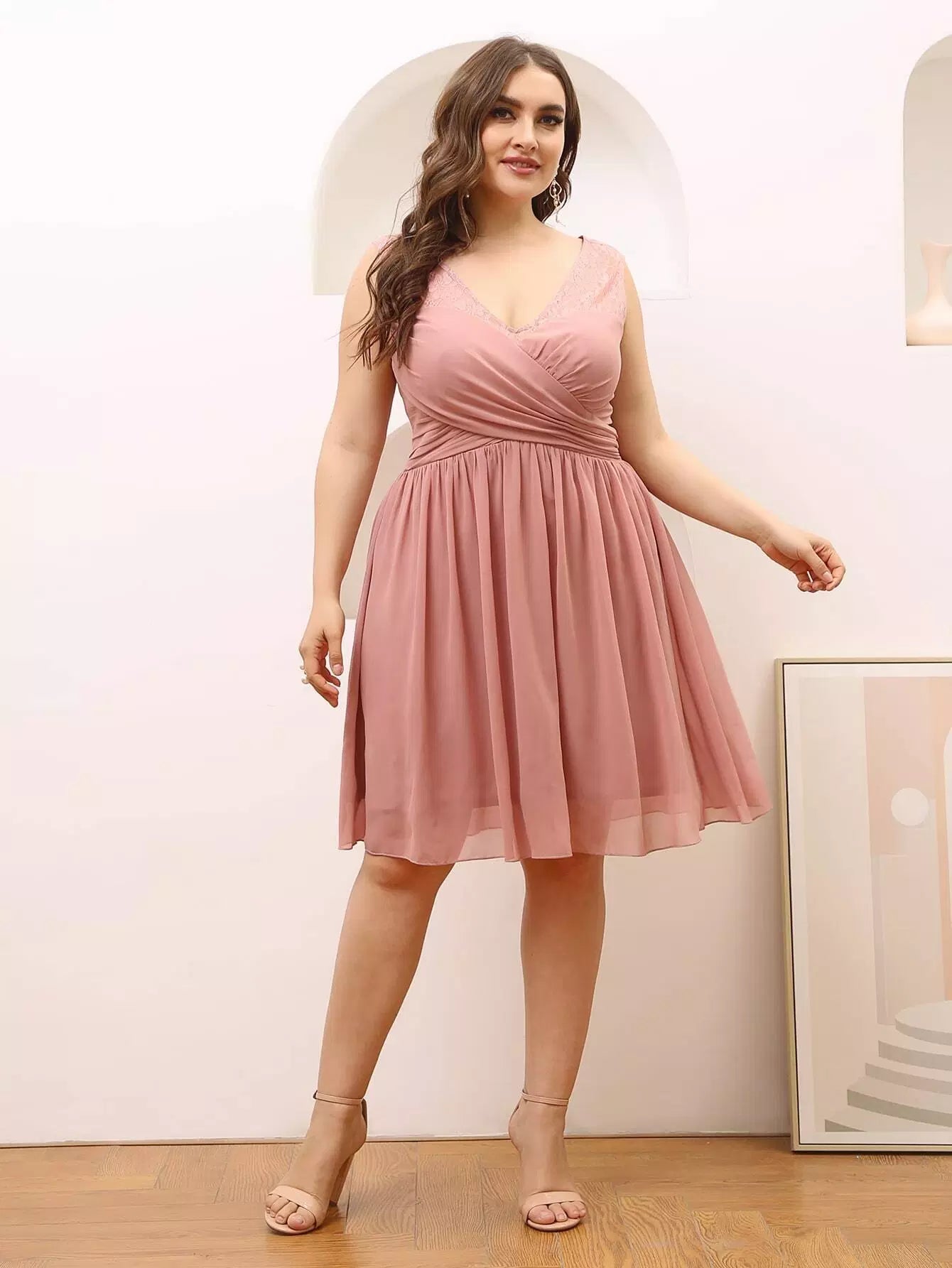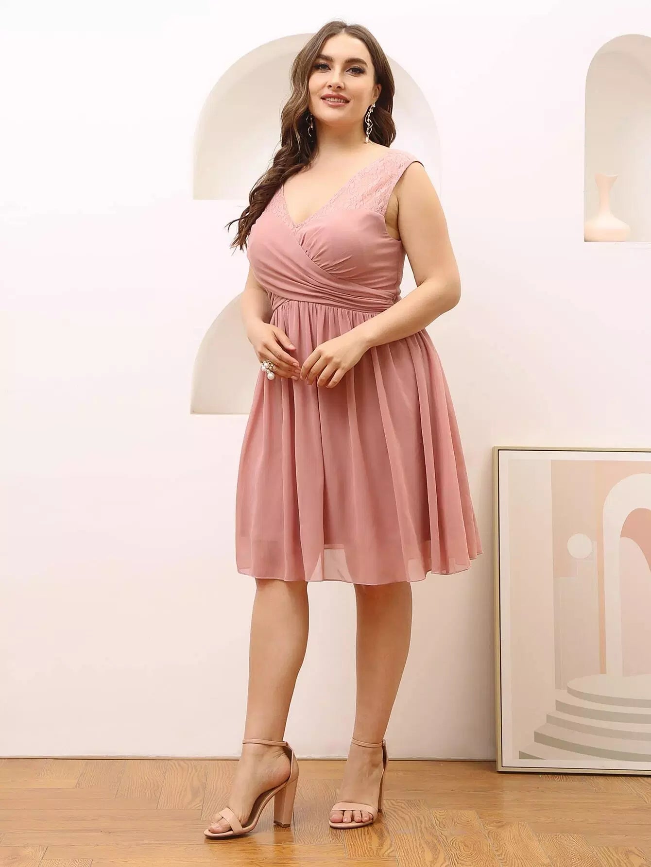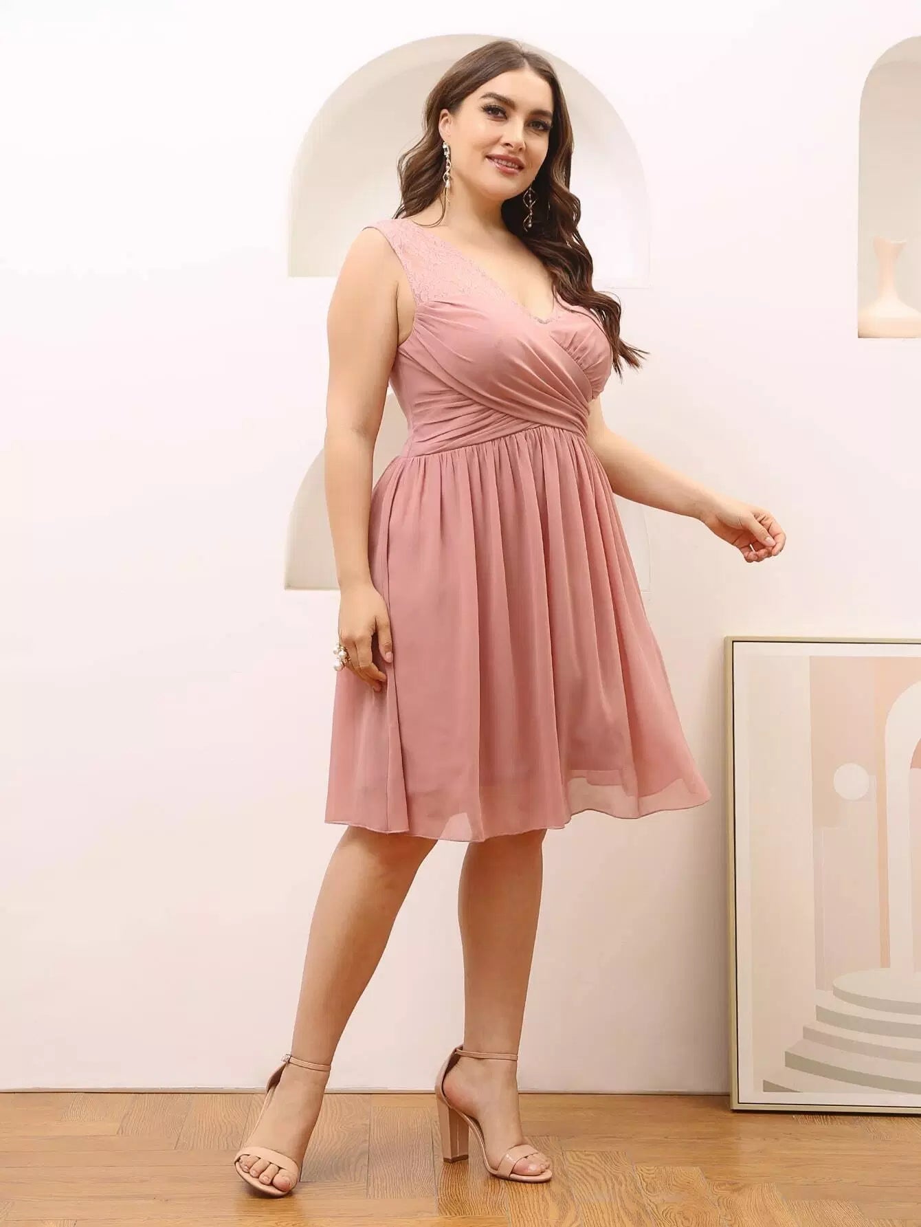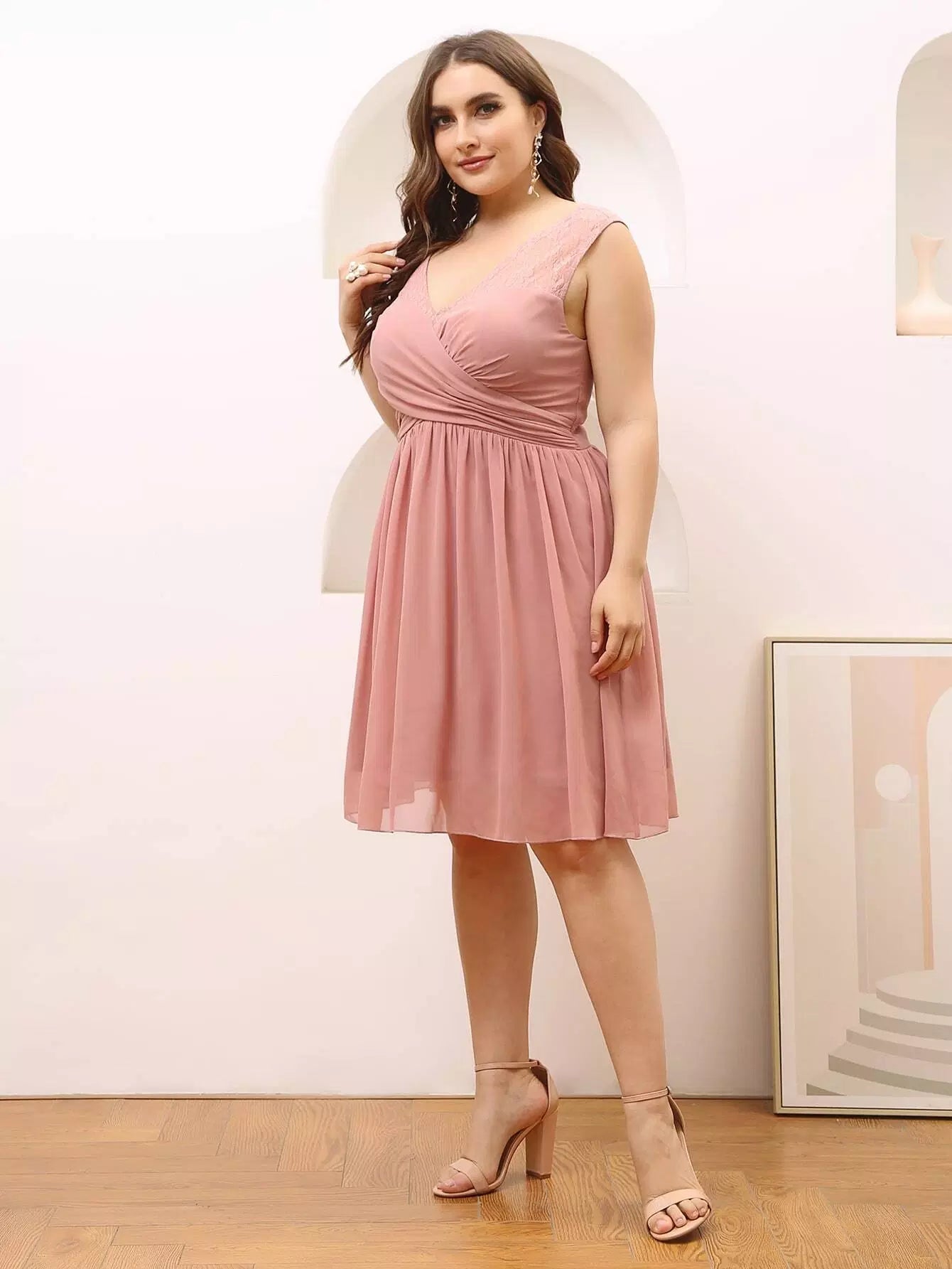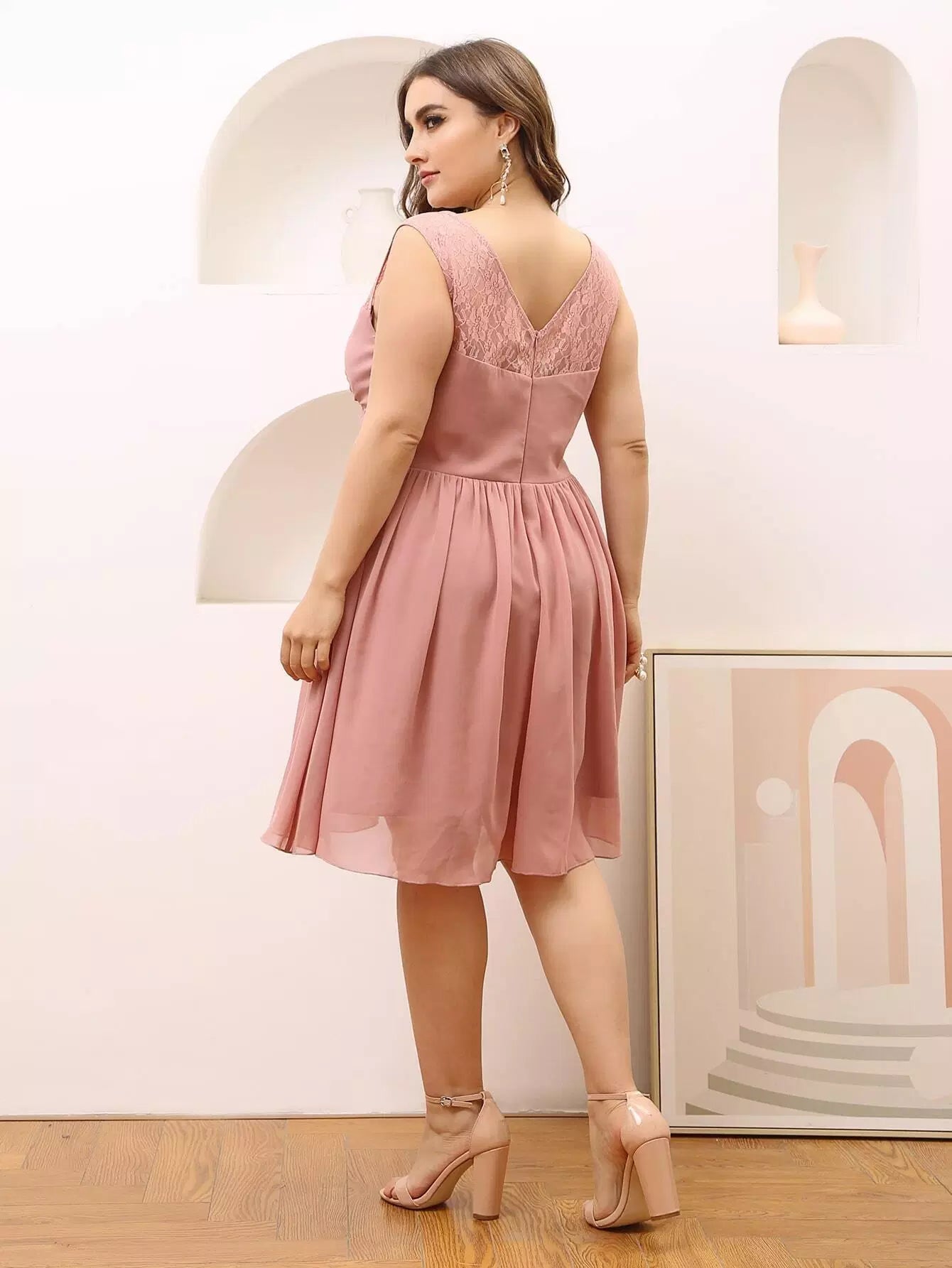 فستان من الدانتيل الشيفون المربّع بالزائد