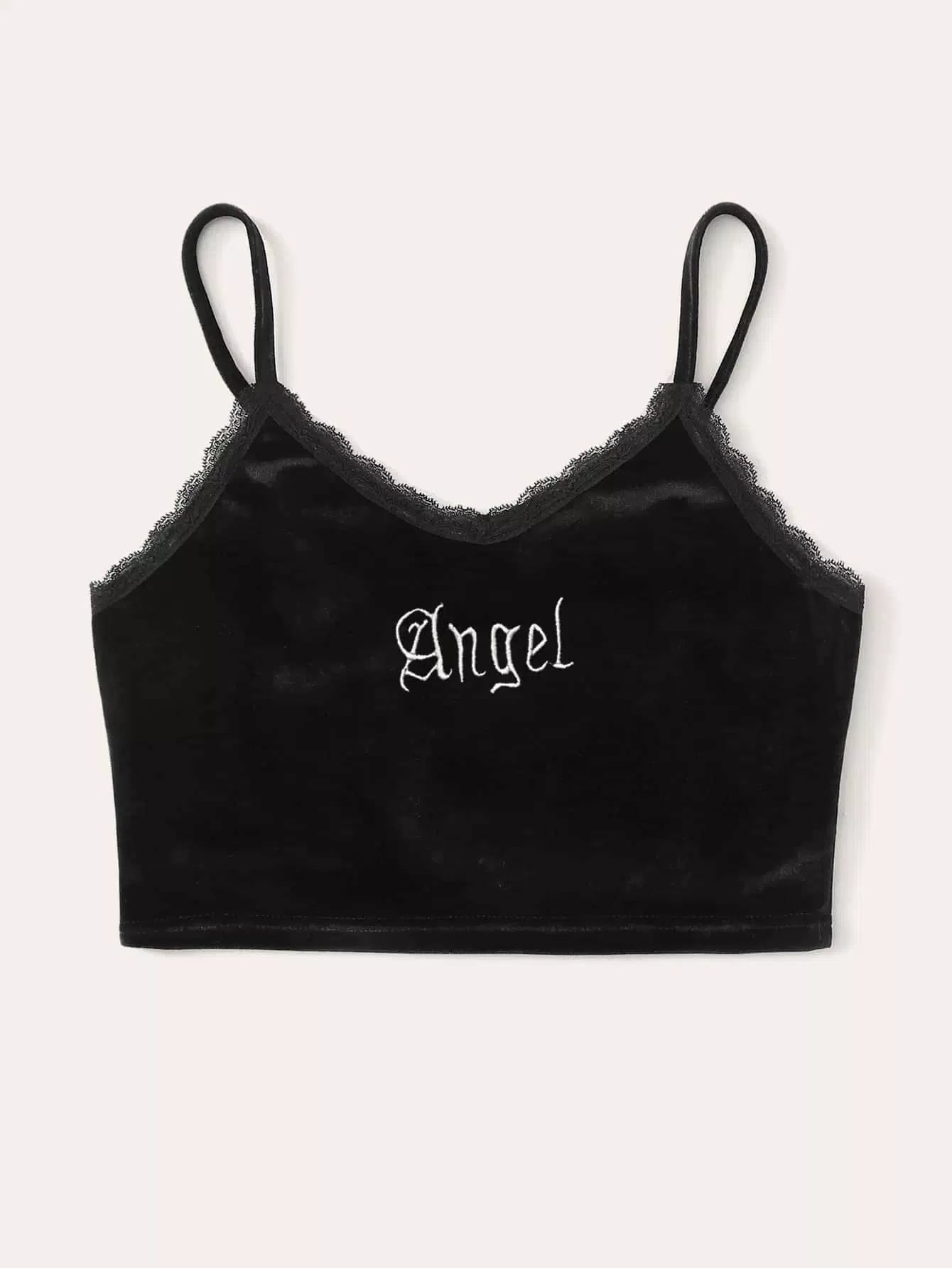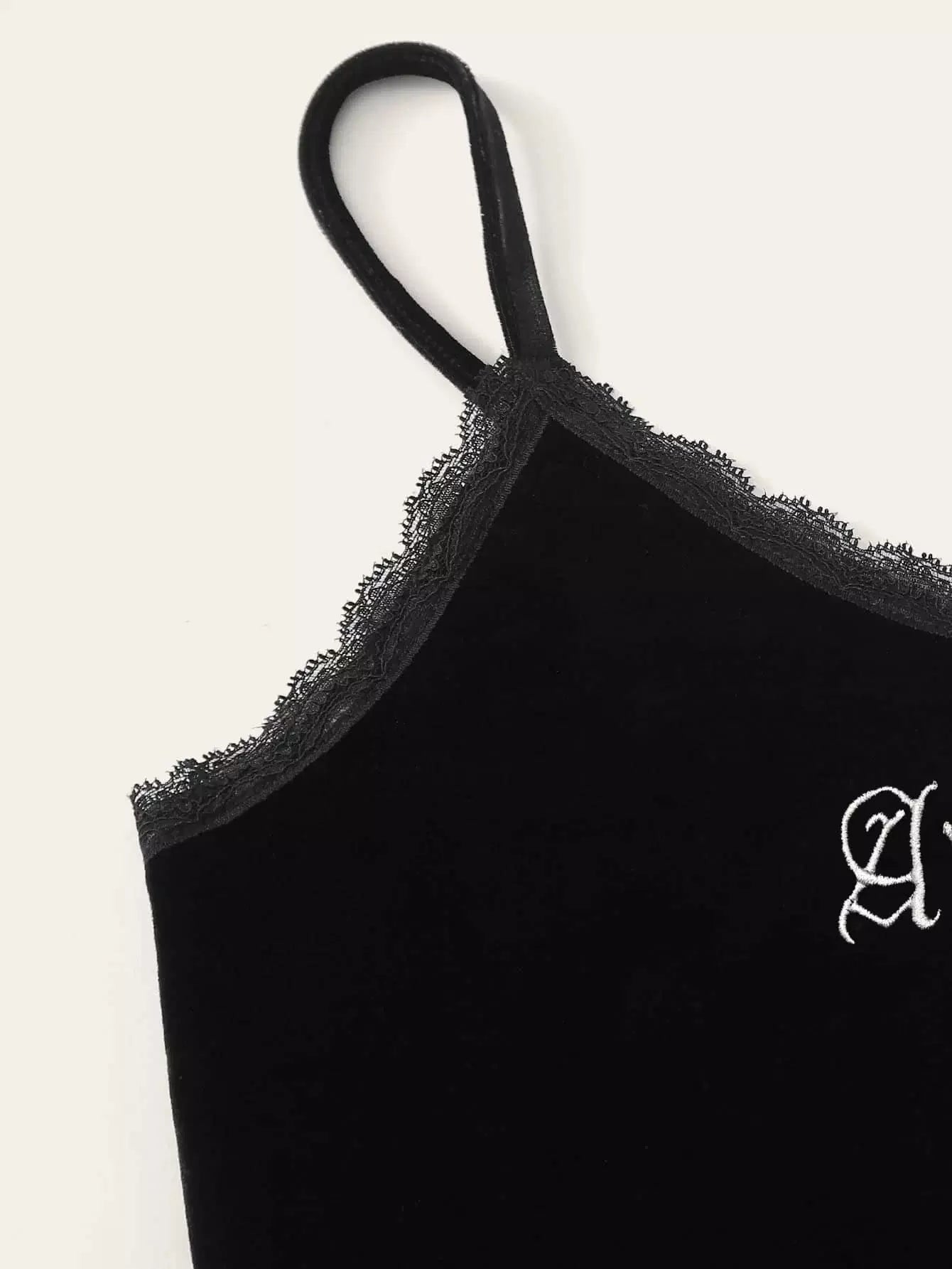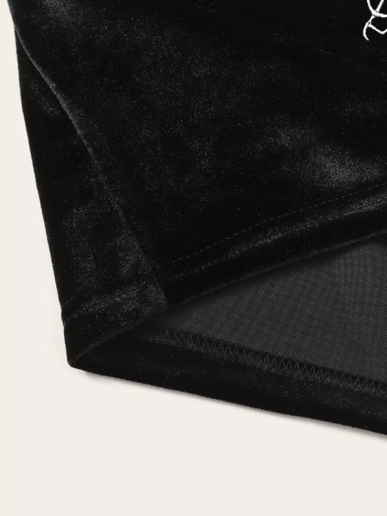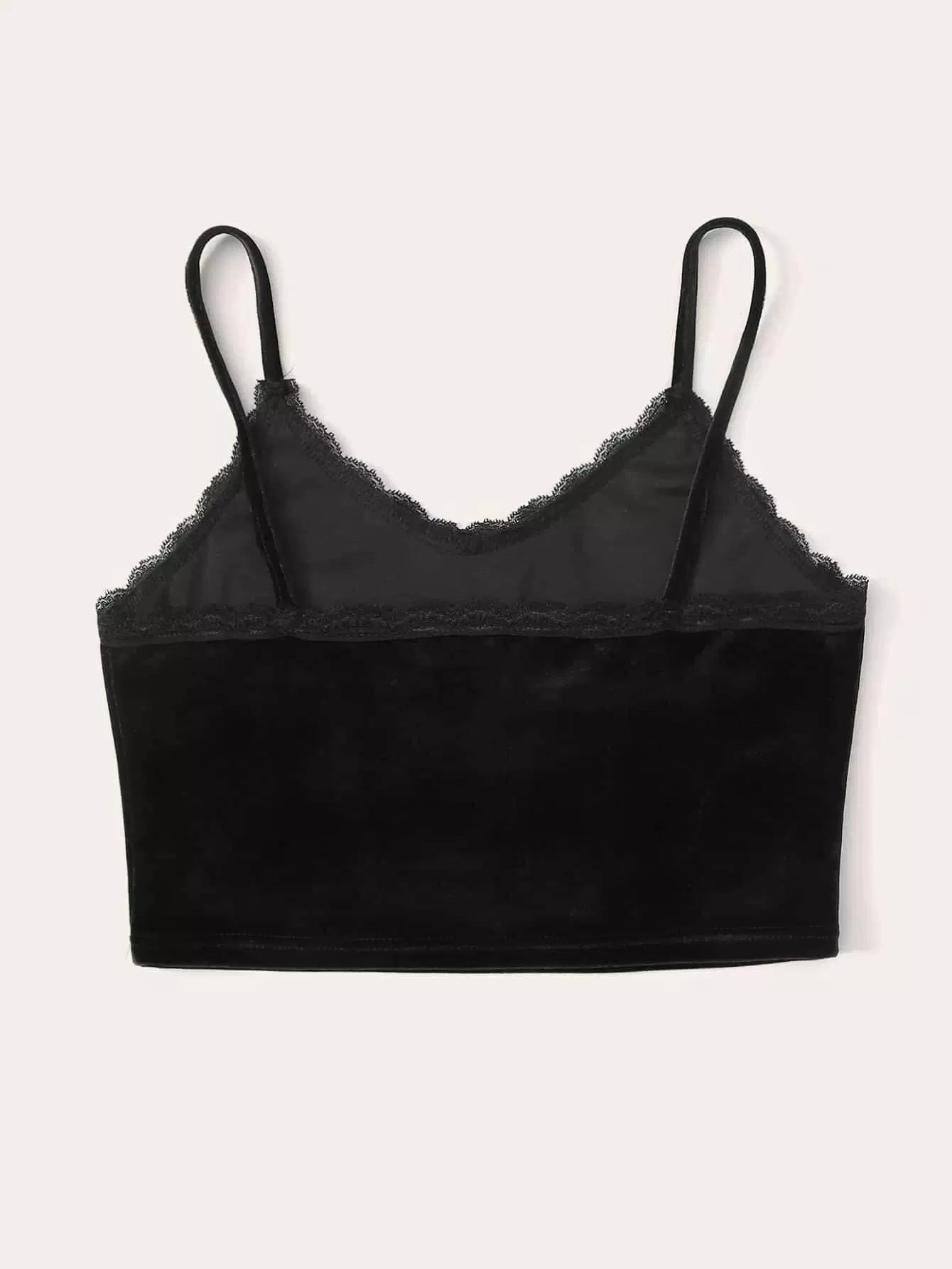 بلوزة مخملية مزينة بتطريزات دانتيل على شكل حرف زائد