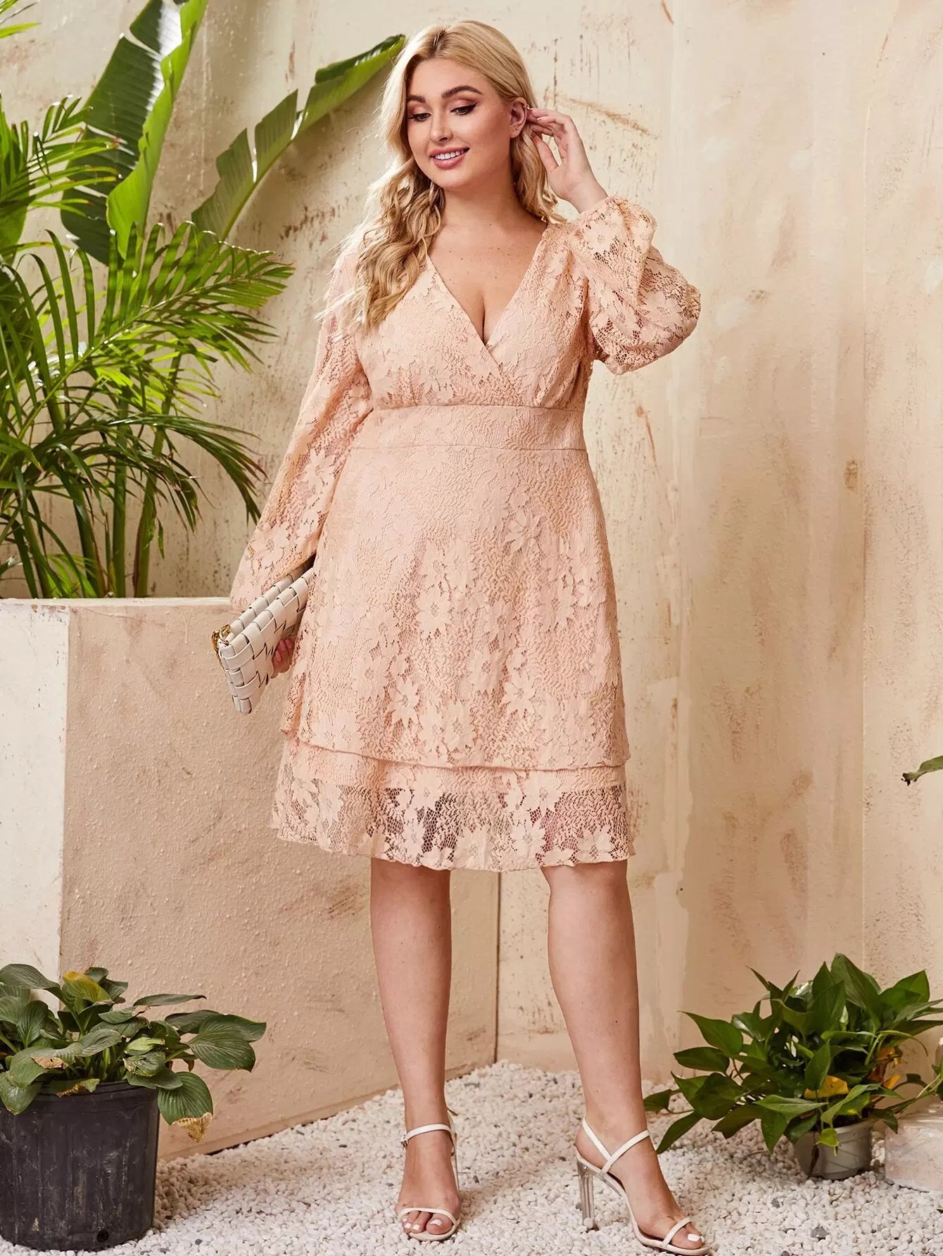 فستان من الدانتيل بأكمام متعددة الطبقات من الدانتيل