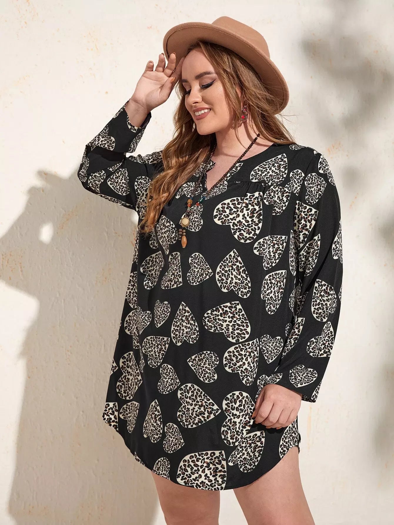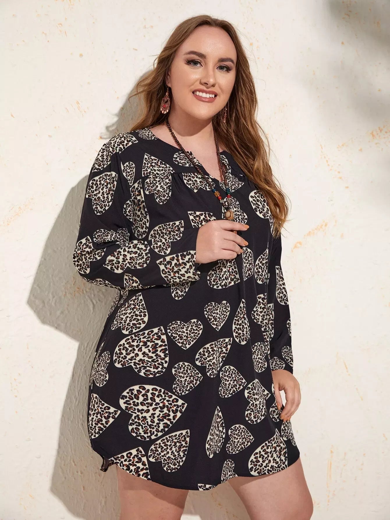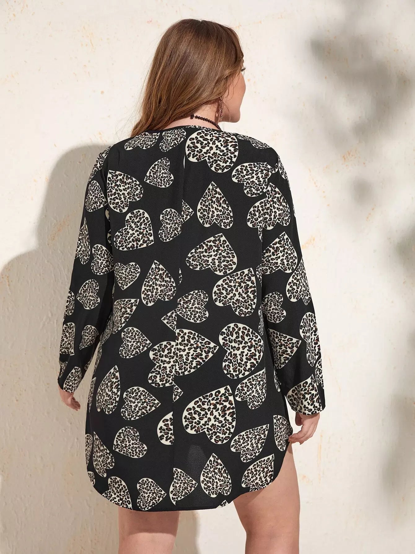فستان بياقة برقبة بفتحة رقبة على شكل قلب بنقشة جلد النمر