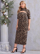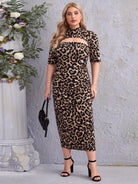 فستان أنبوبي بنقشة جلد النمر مع بلوزة قصيرة للغاية