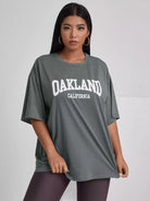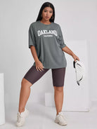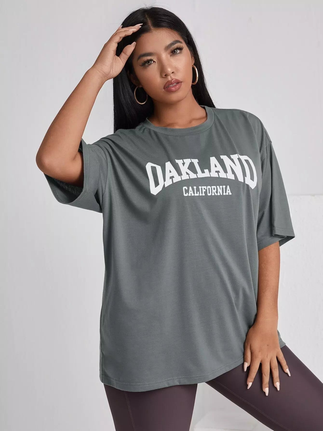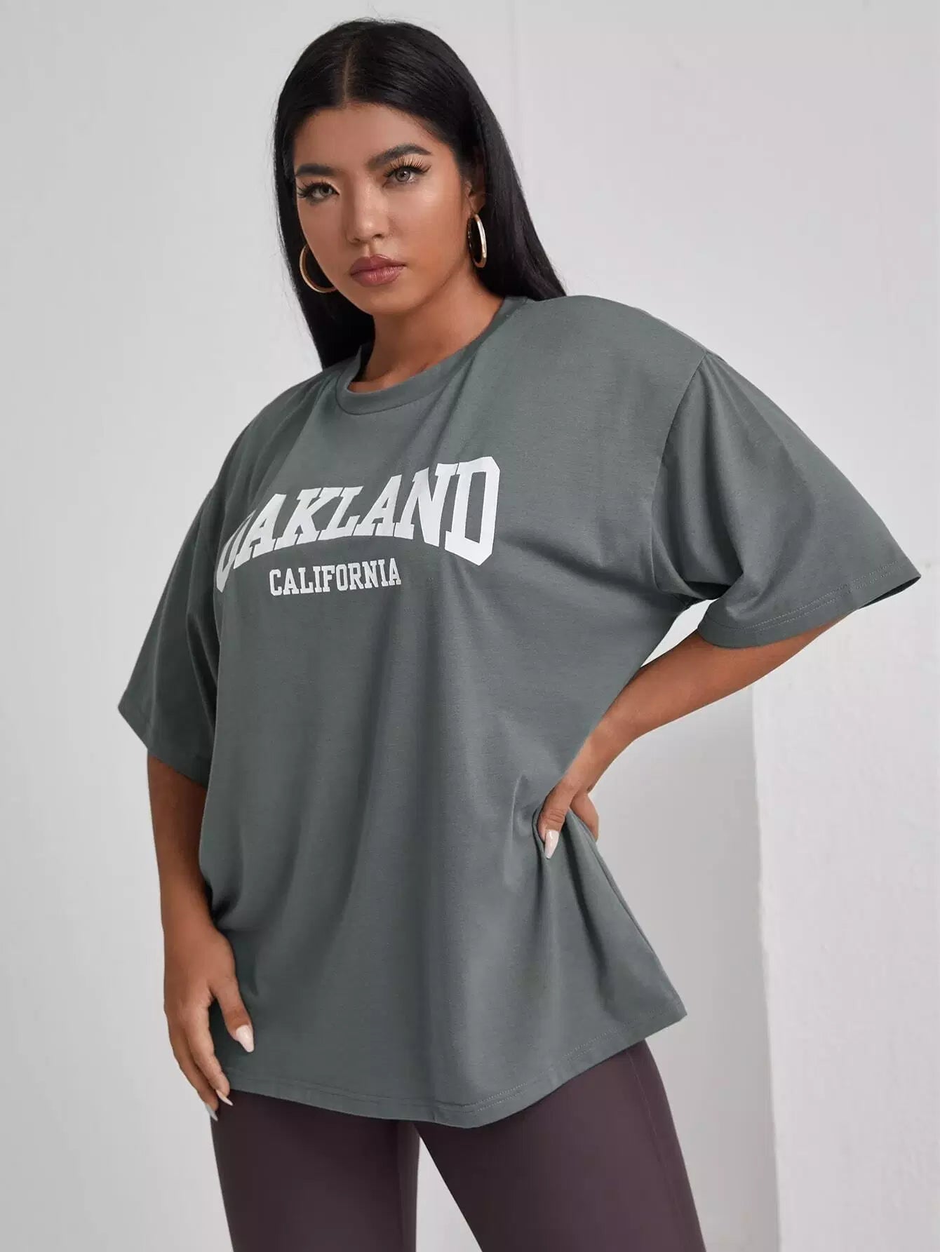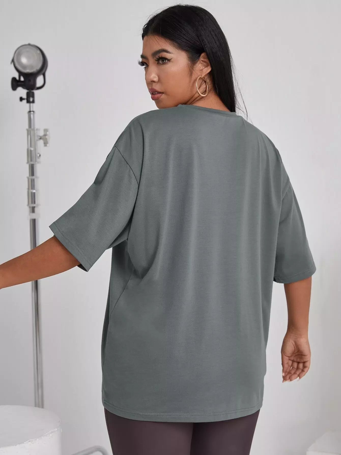 تي شيرت منسدل الكتف برسومات على شكل حرف زائد