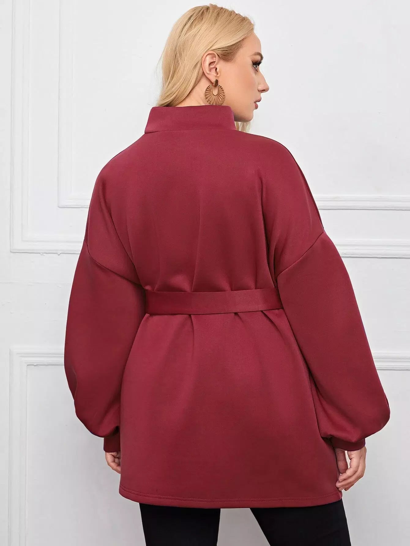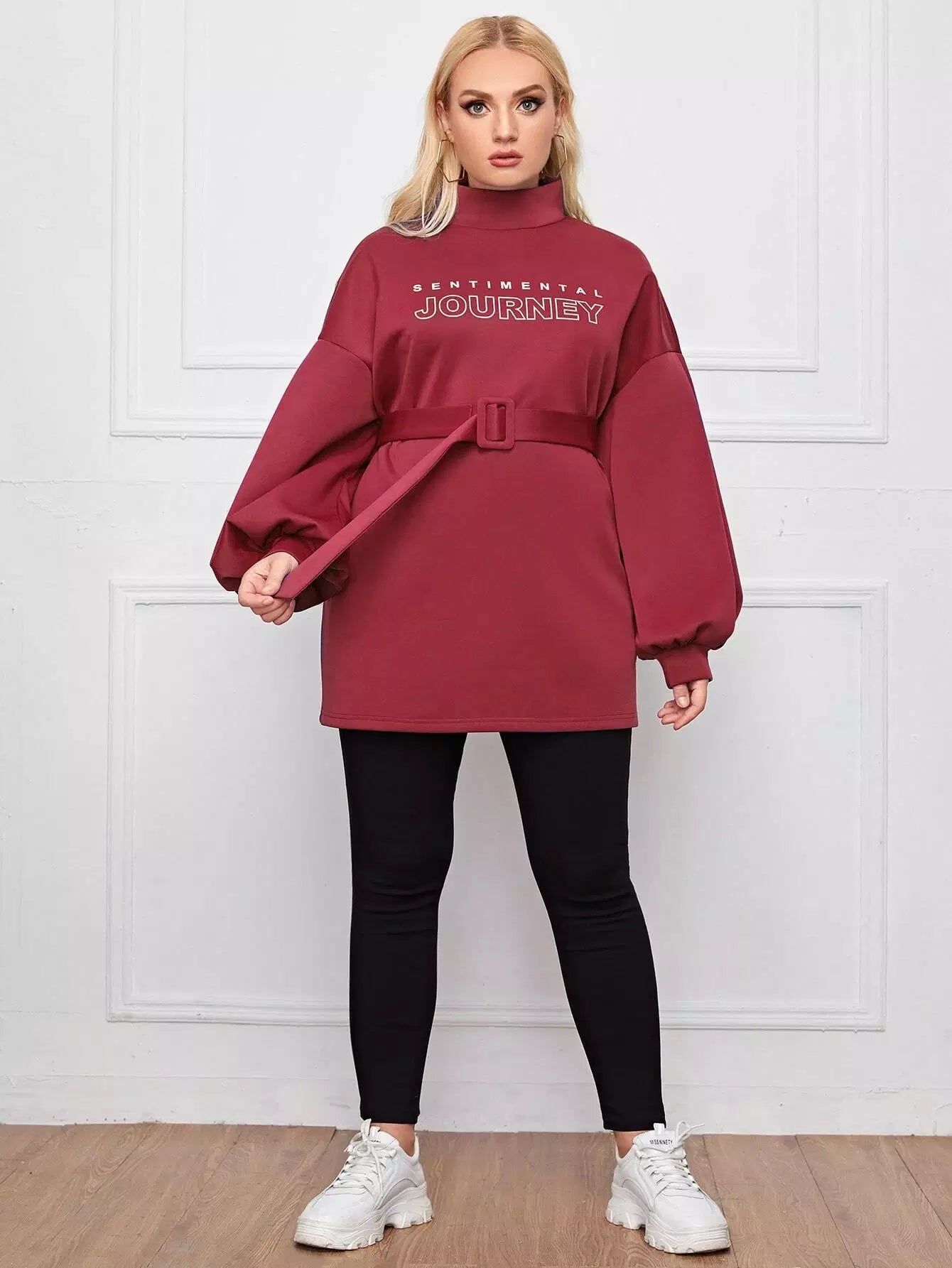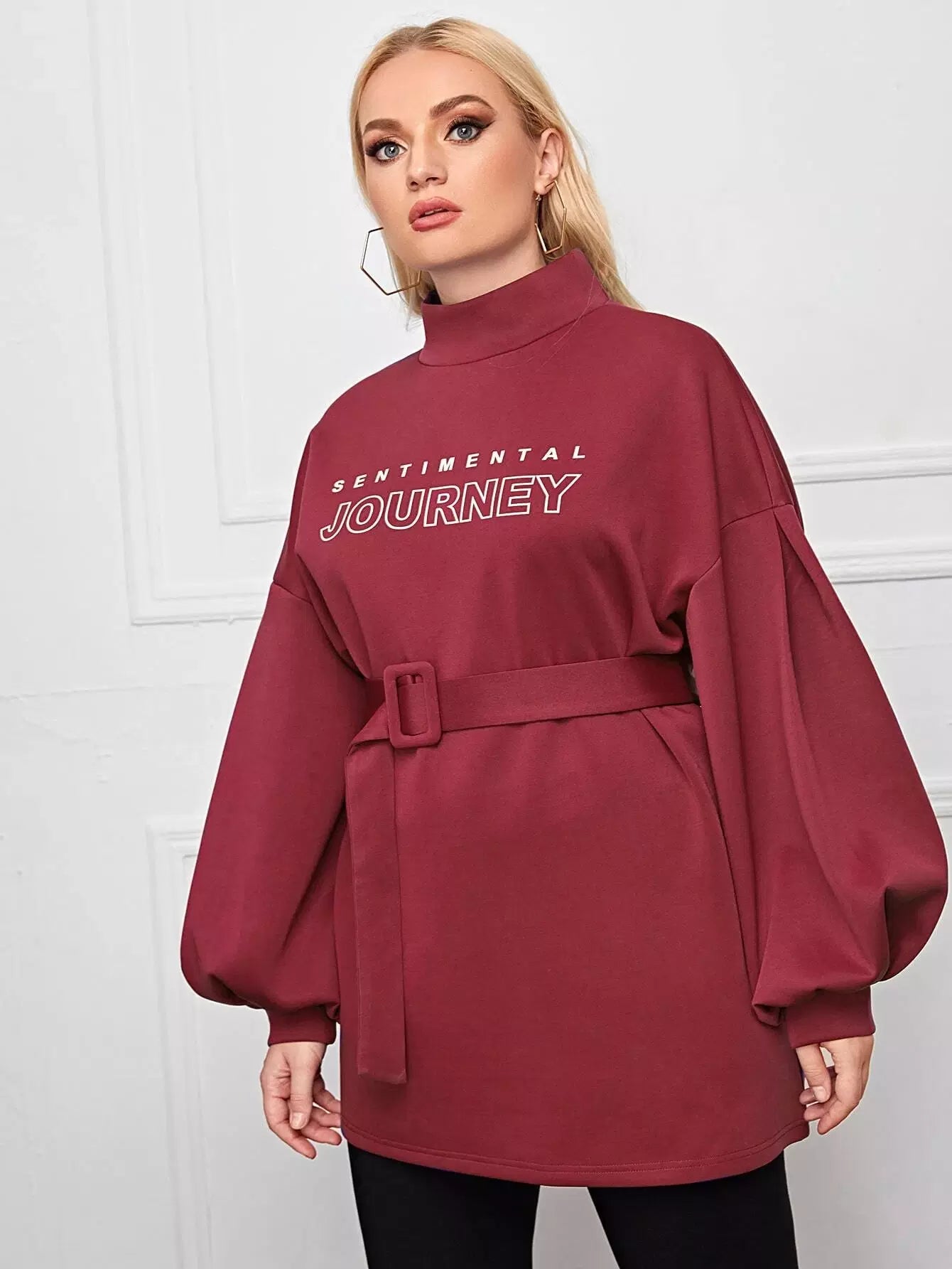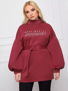 بلوفر بأكمام منسدلة ورقبة وهمية ورسومات أحرف زائدة بدون حزام