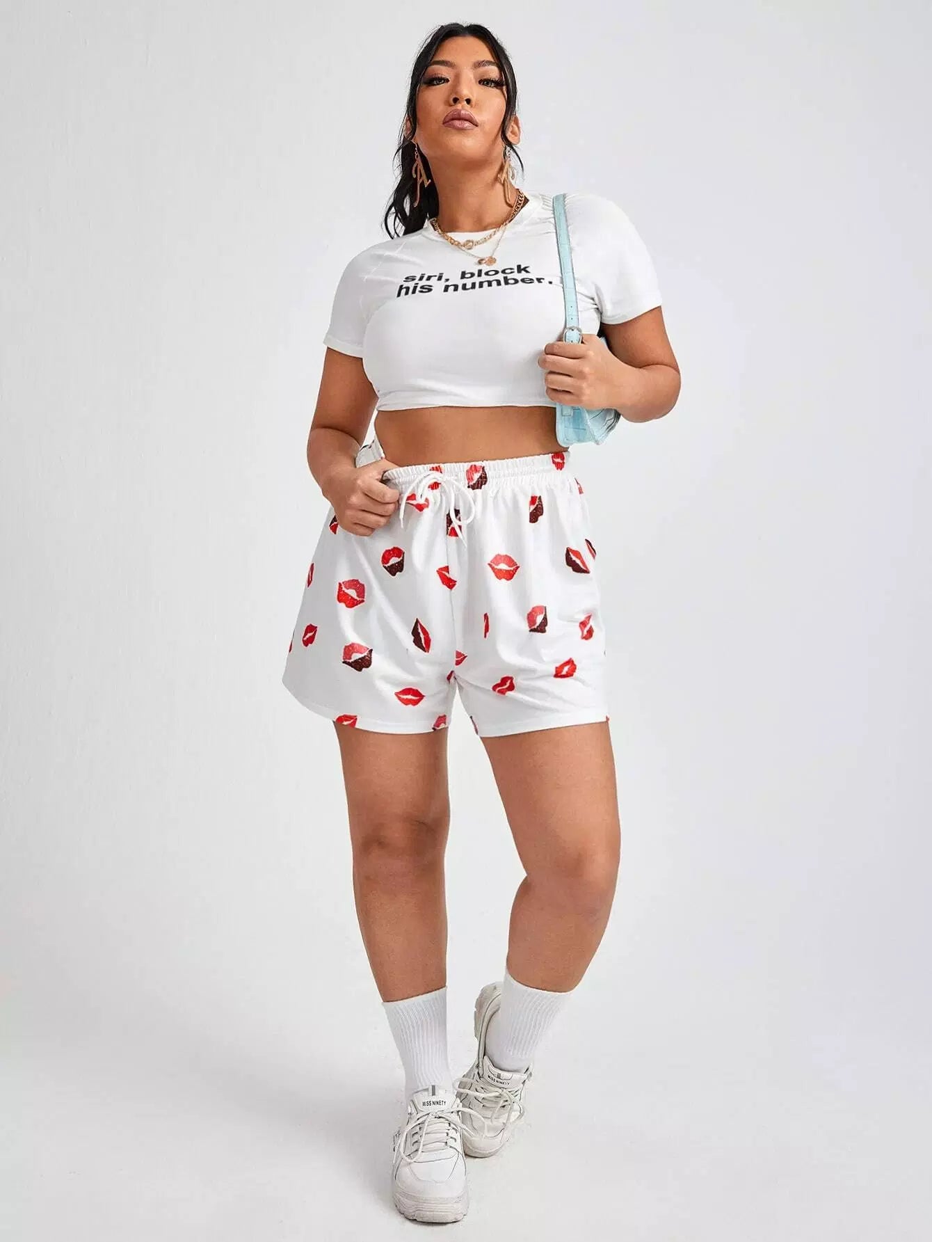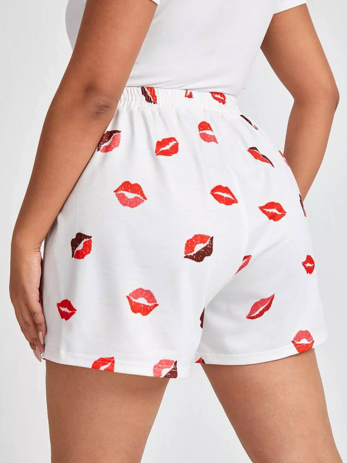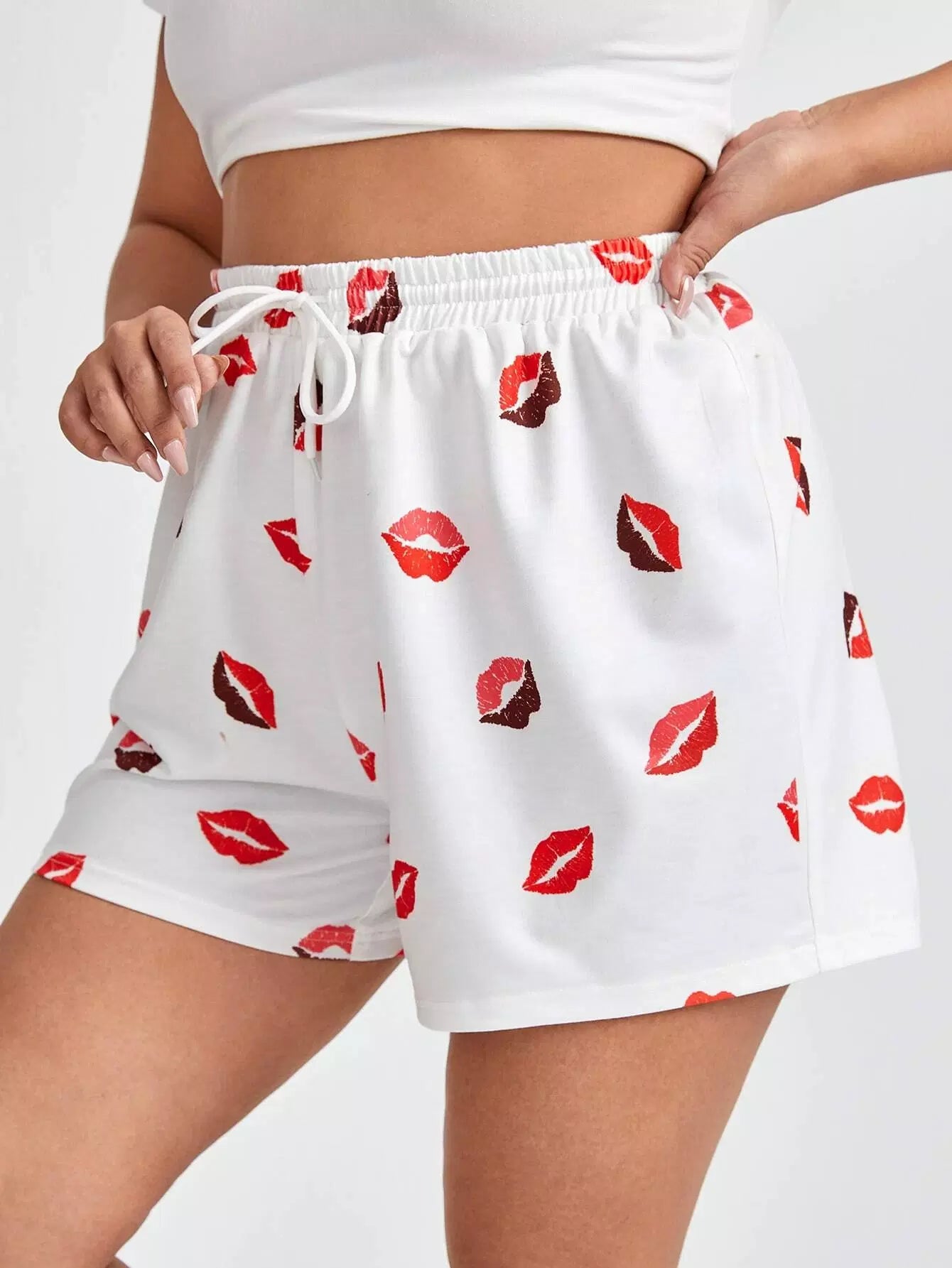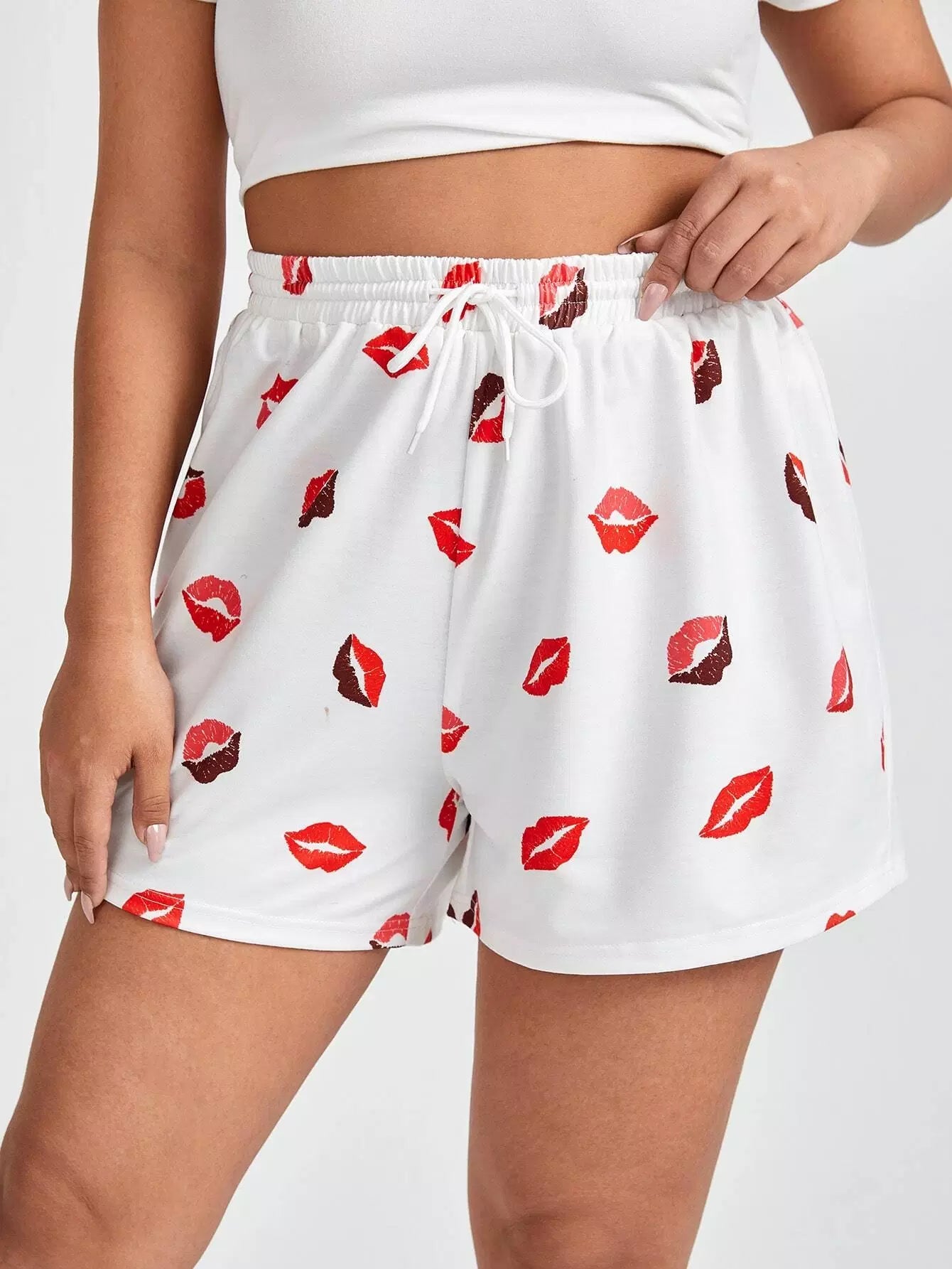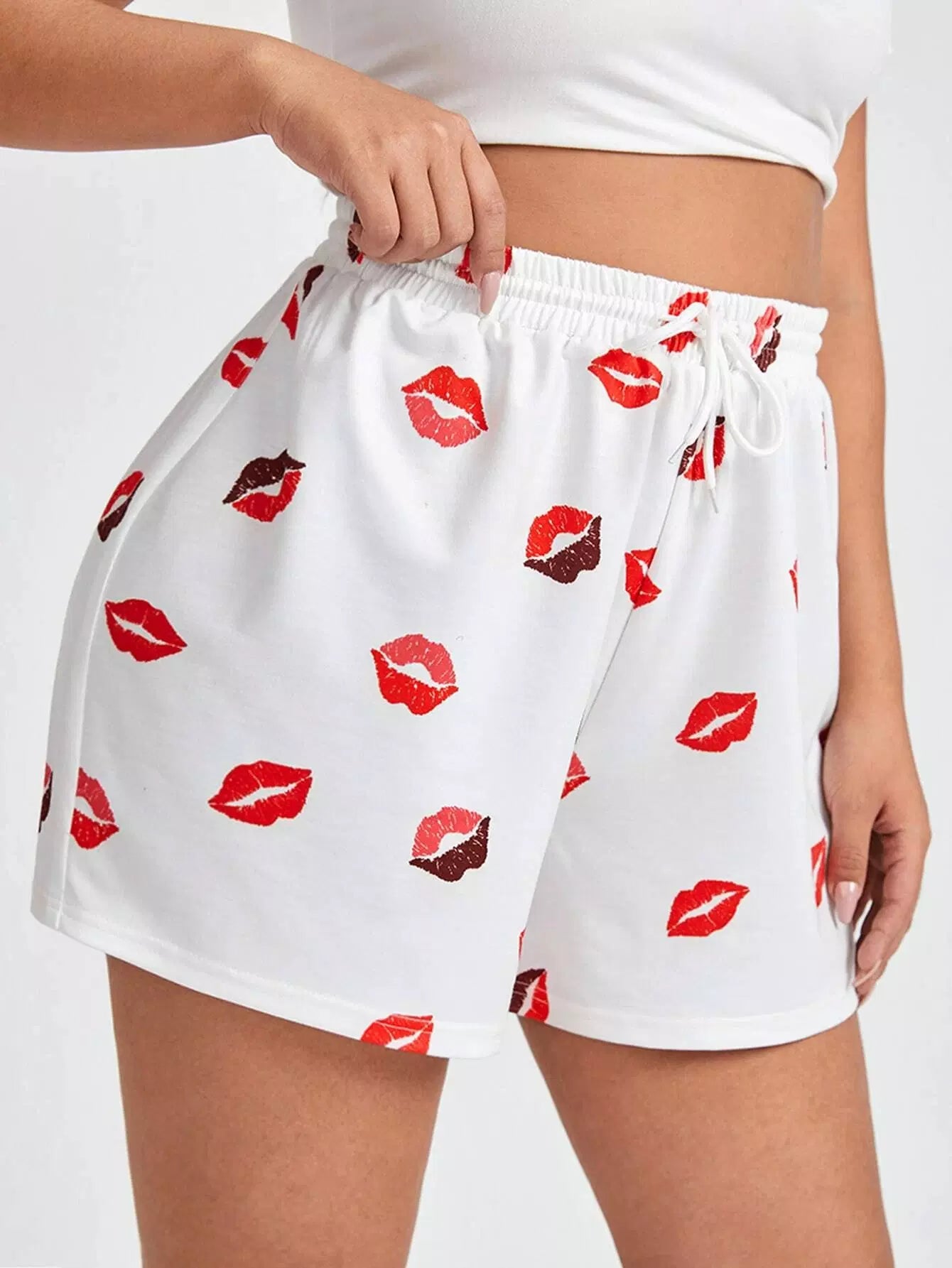 شورت رياضي قصير بطبعة شفاه زائد رباط مطبع الشفاه