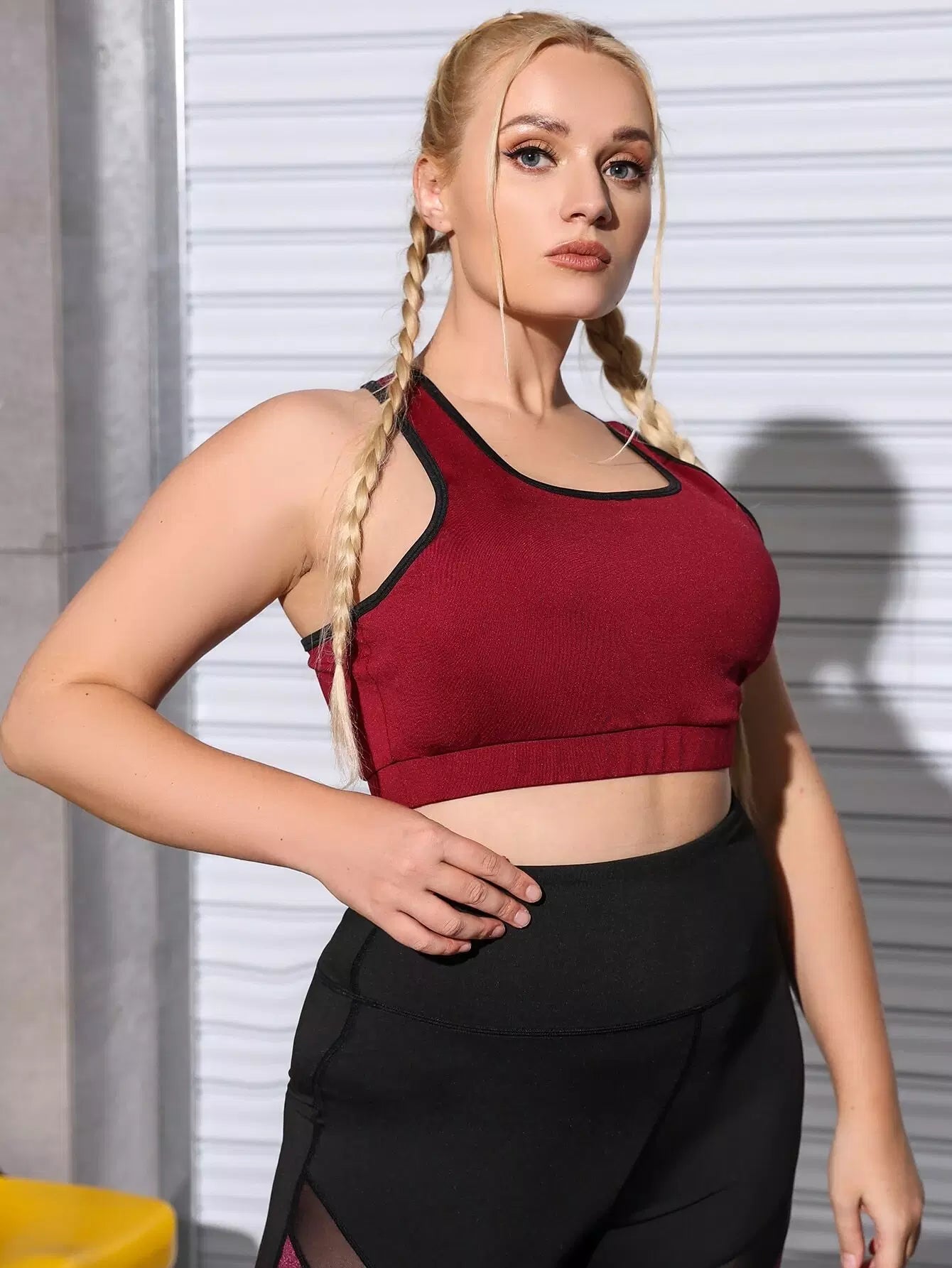حمالة صدر رياضية مقصوصة بلون متباين ذات دعم متوسط زائد
