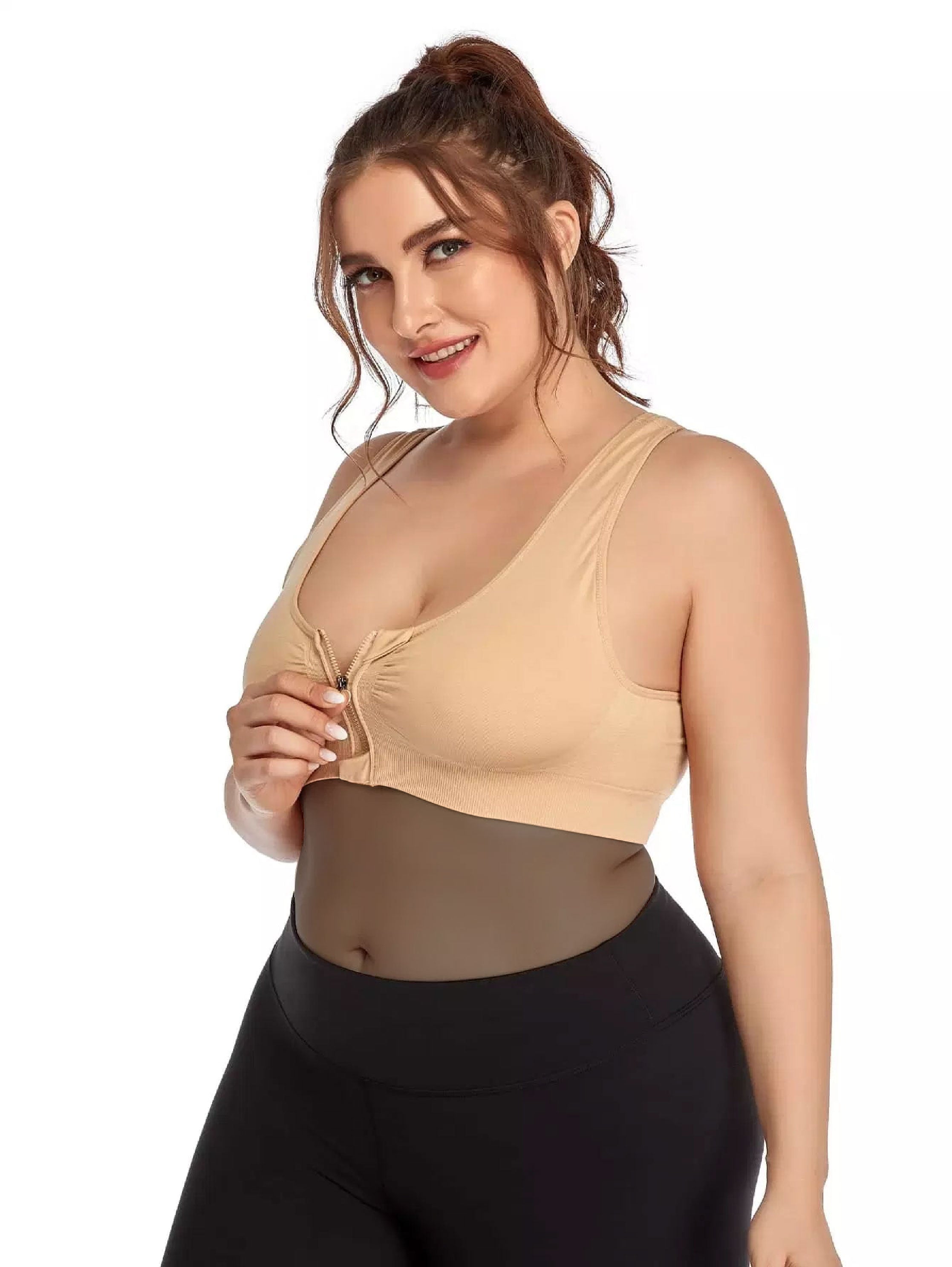 نحيف - مقاس كبير حمالة صدر رياضية بسحاب أمامي ودعم متوسط