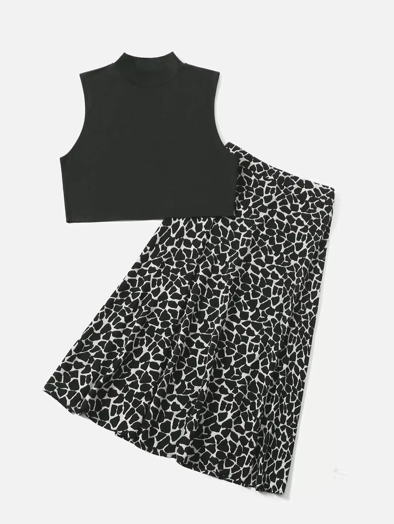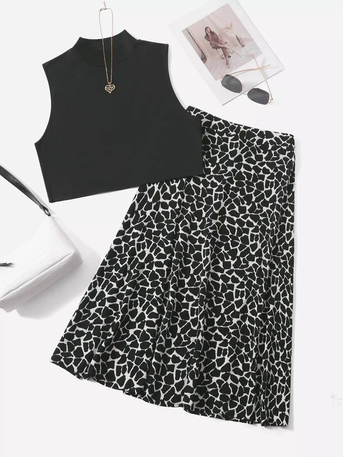 تانك برقبة زائد برقبة زائدة وتنورة بطبعة جيو