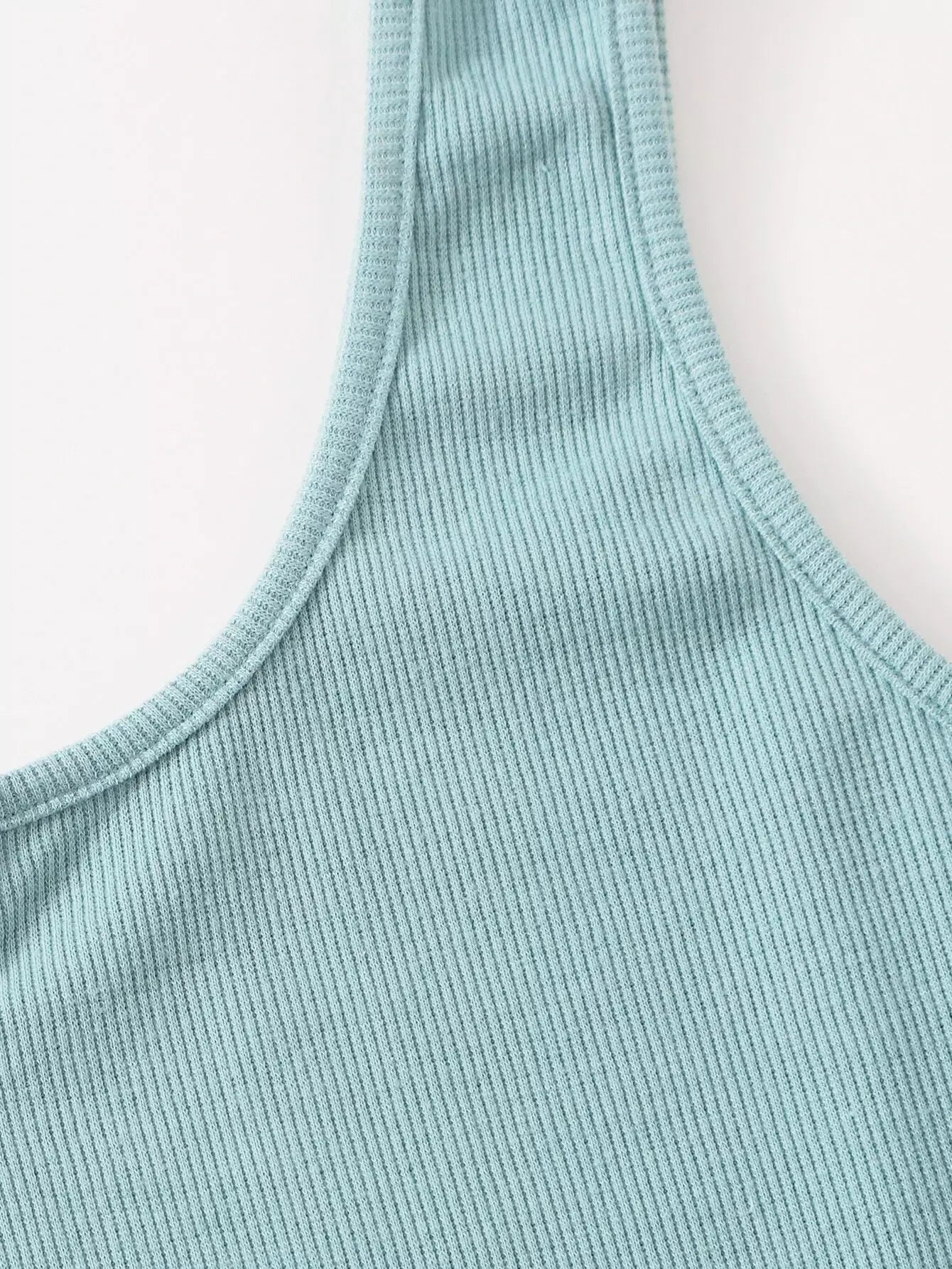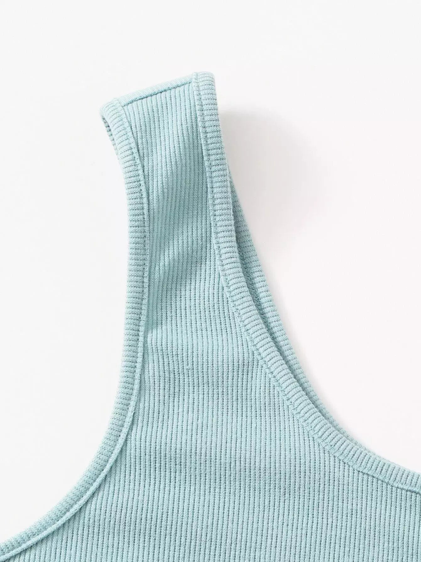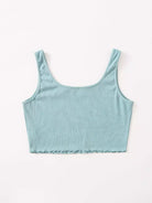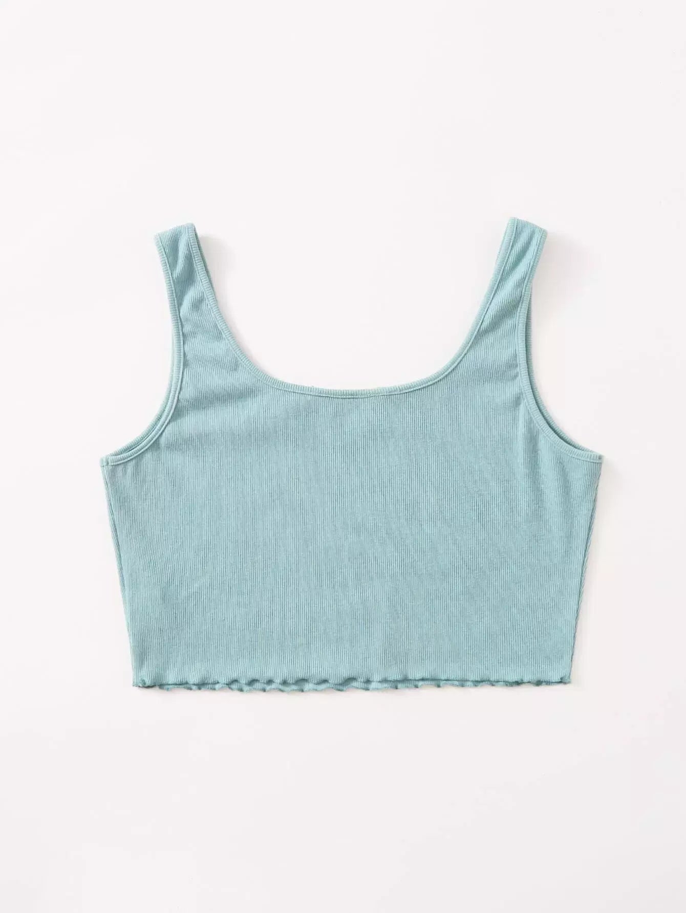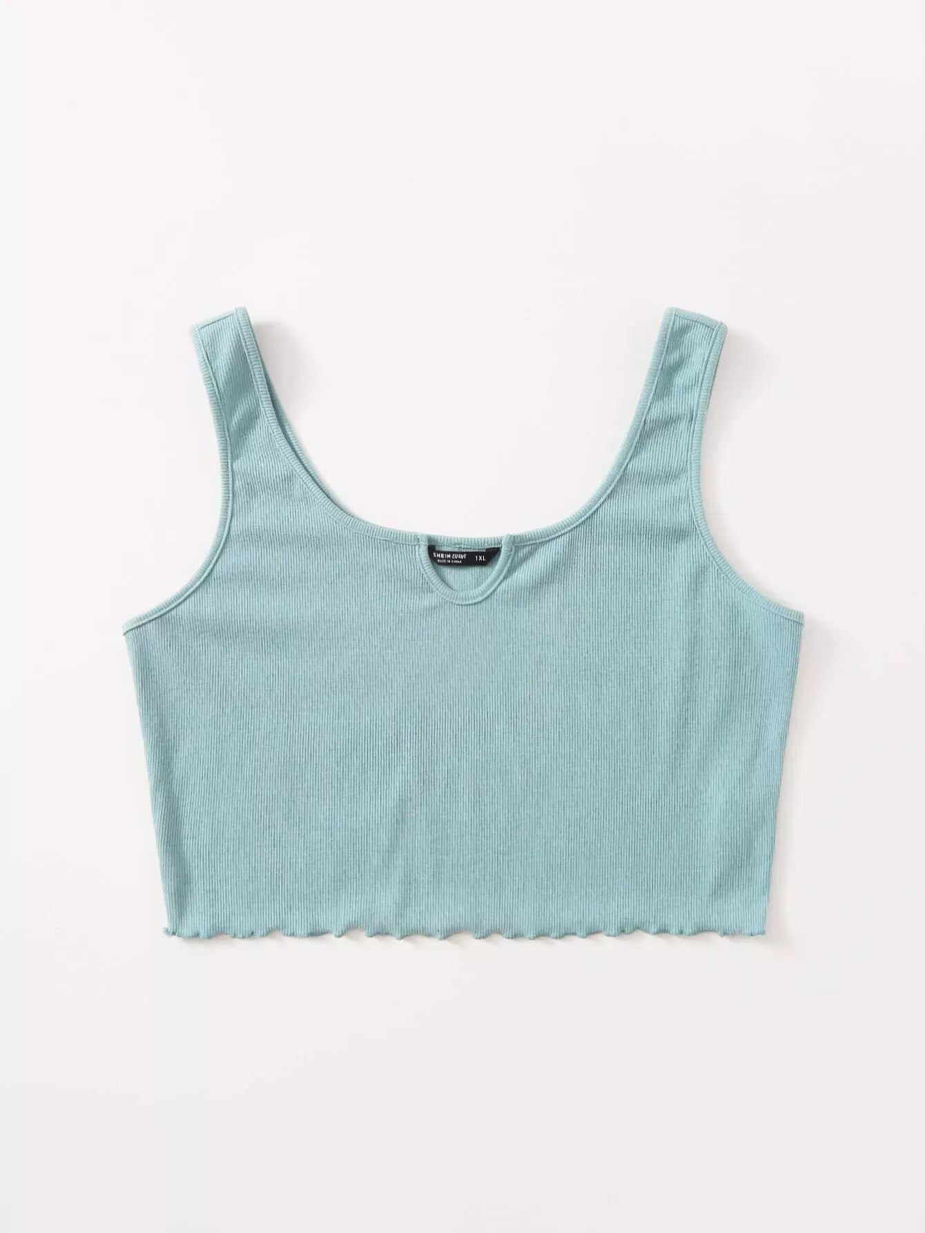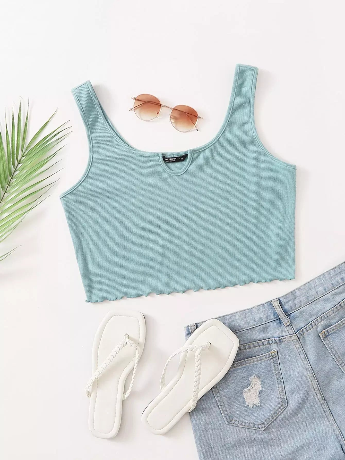 بلوزة بدون أكمام برقبة بفتحة رقبة زائد بحافة خس قصيرة