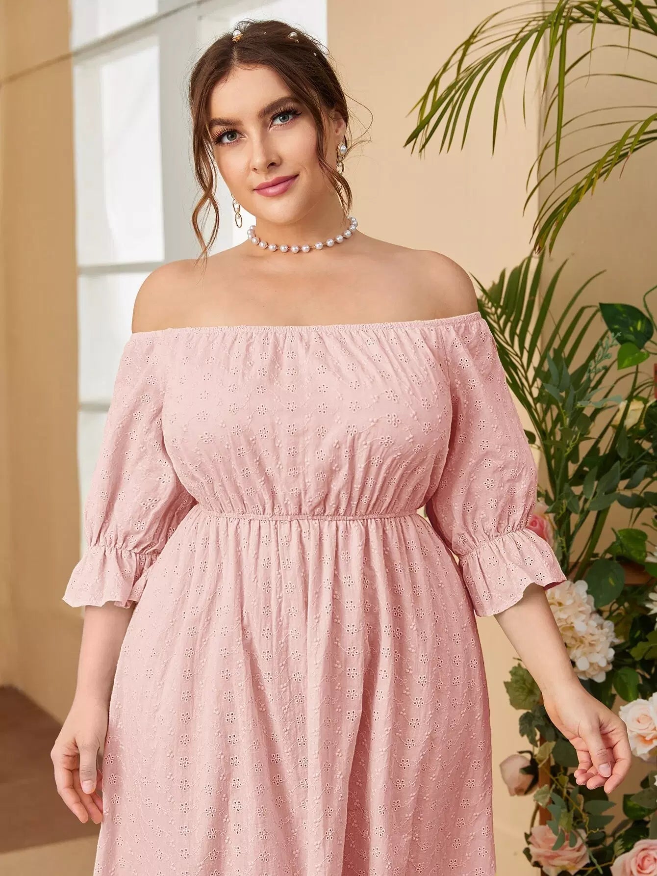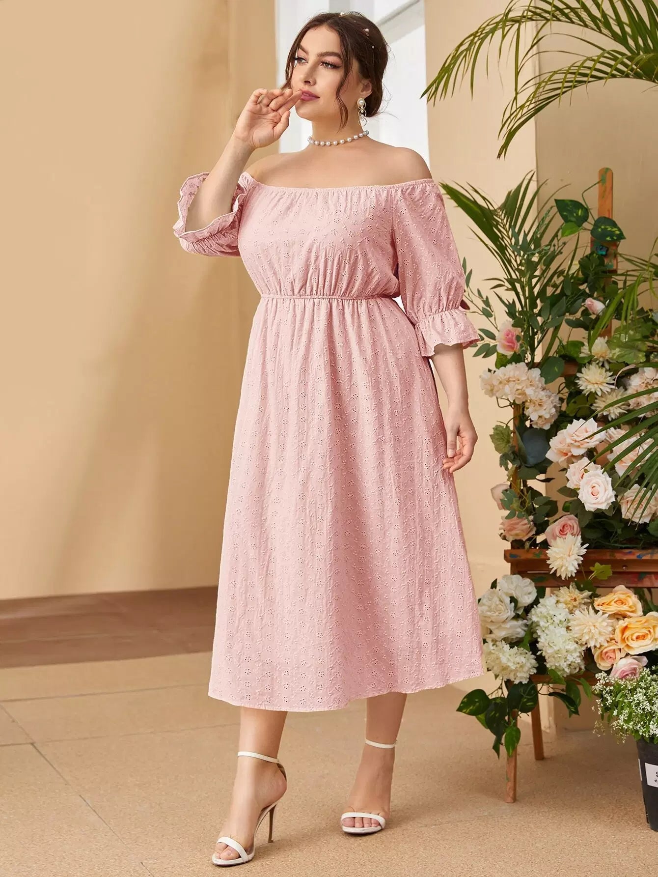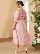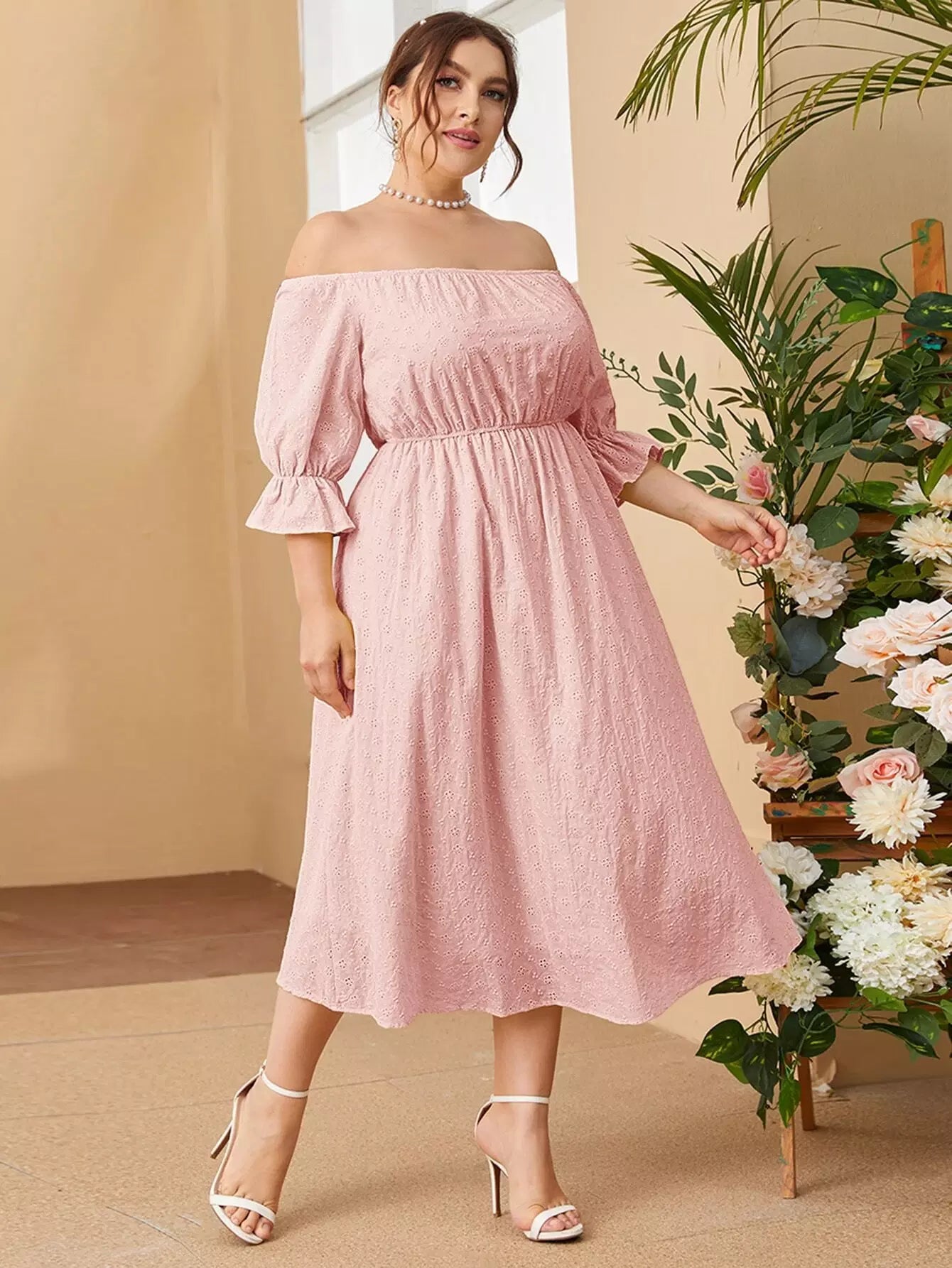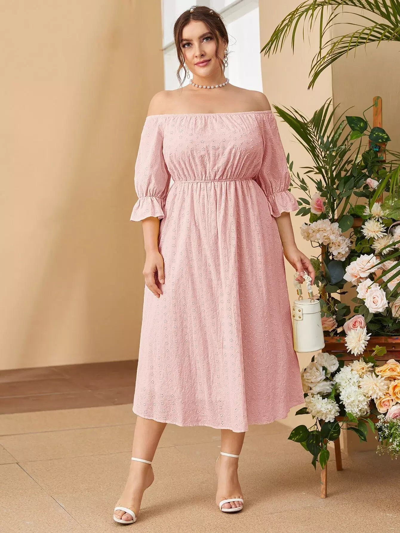 فستان بدون أكتاف بأكمام منفوشة بأكمام منفوشة