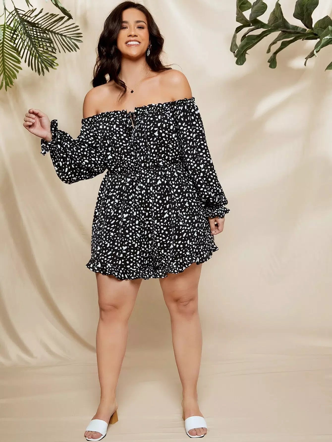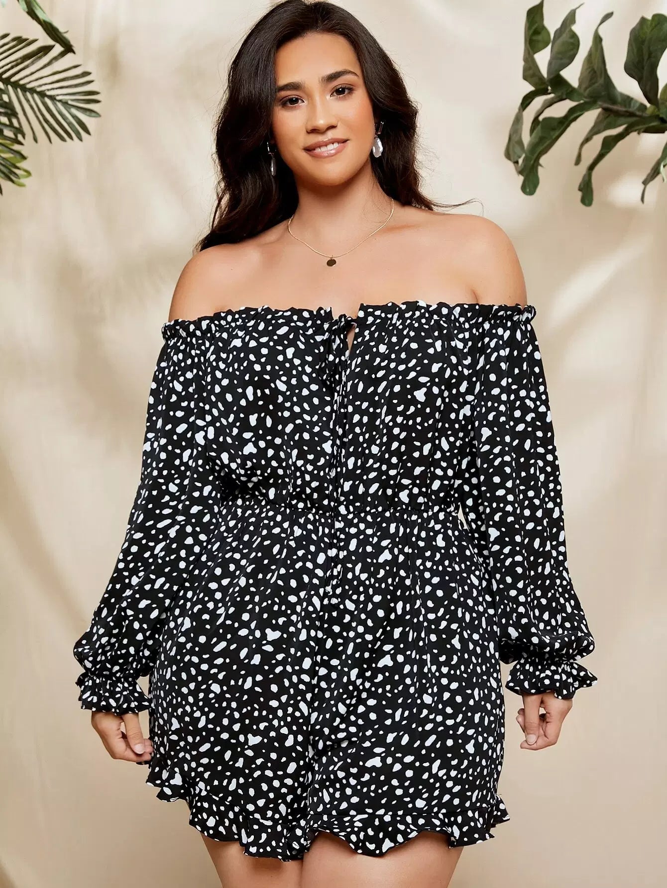 رومبر مكشكش برباط أمامي مكشكش من الأمام بدون أكتاف زائد