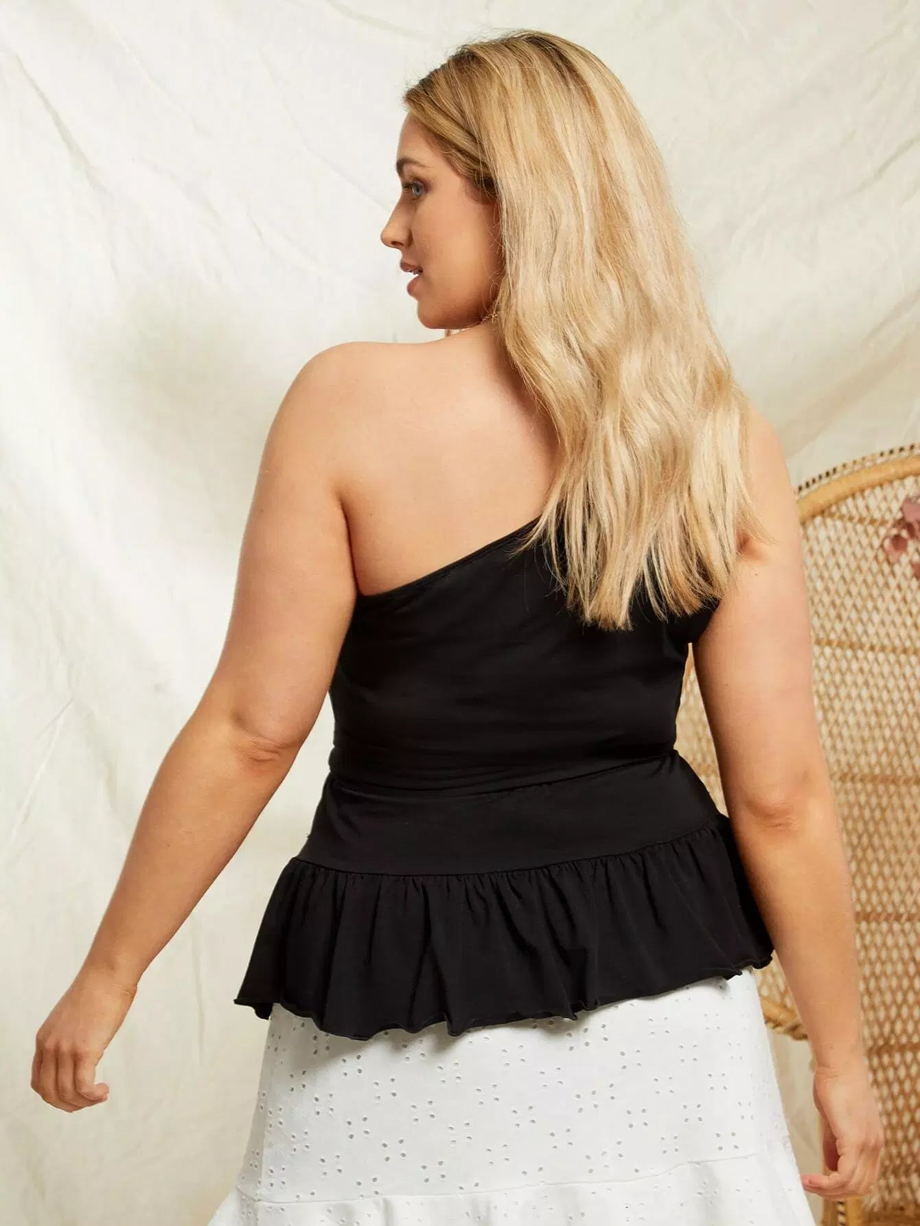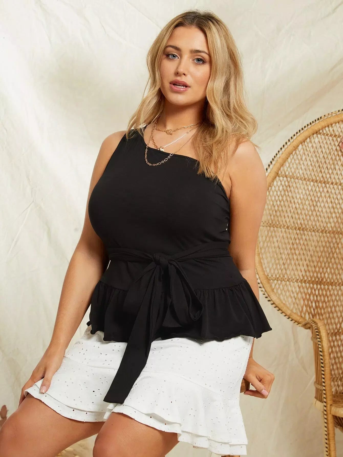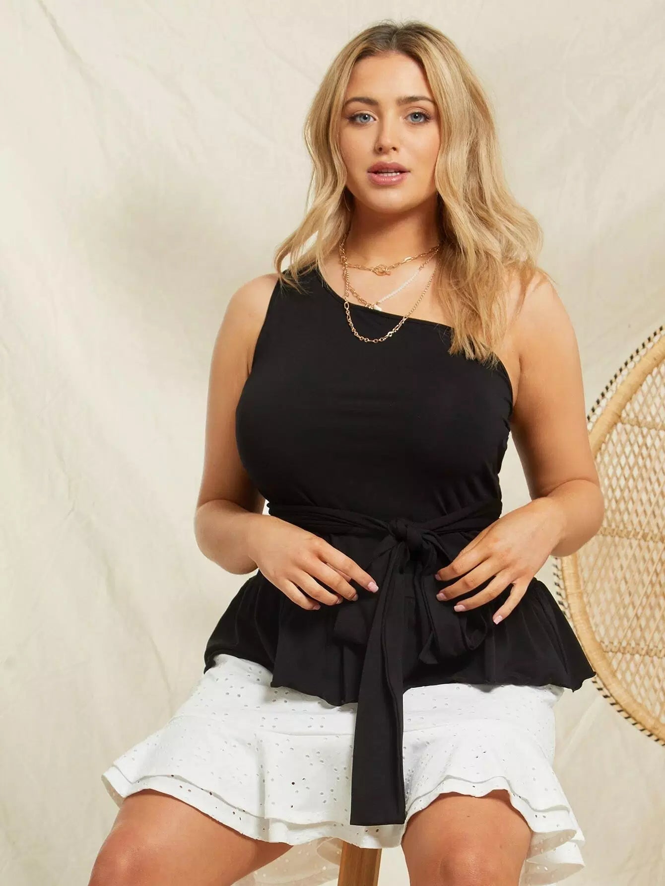 بالإضافة إلى بلوزة بيبلوم بكتف واحد بدون حزام