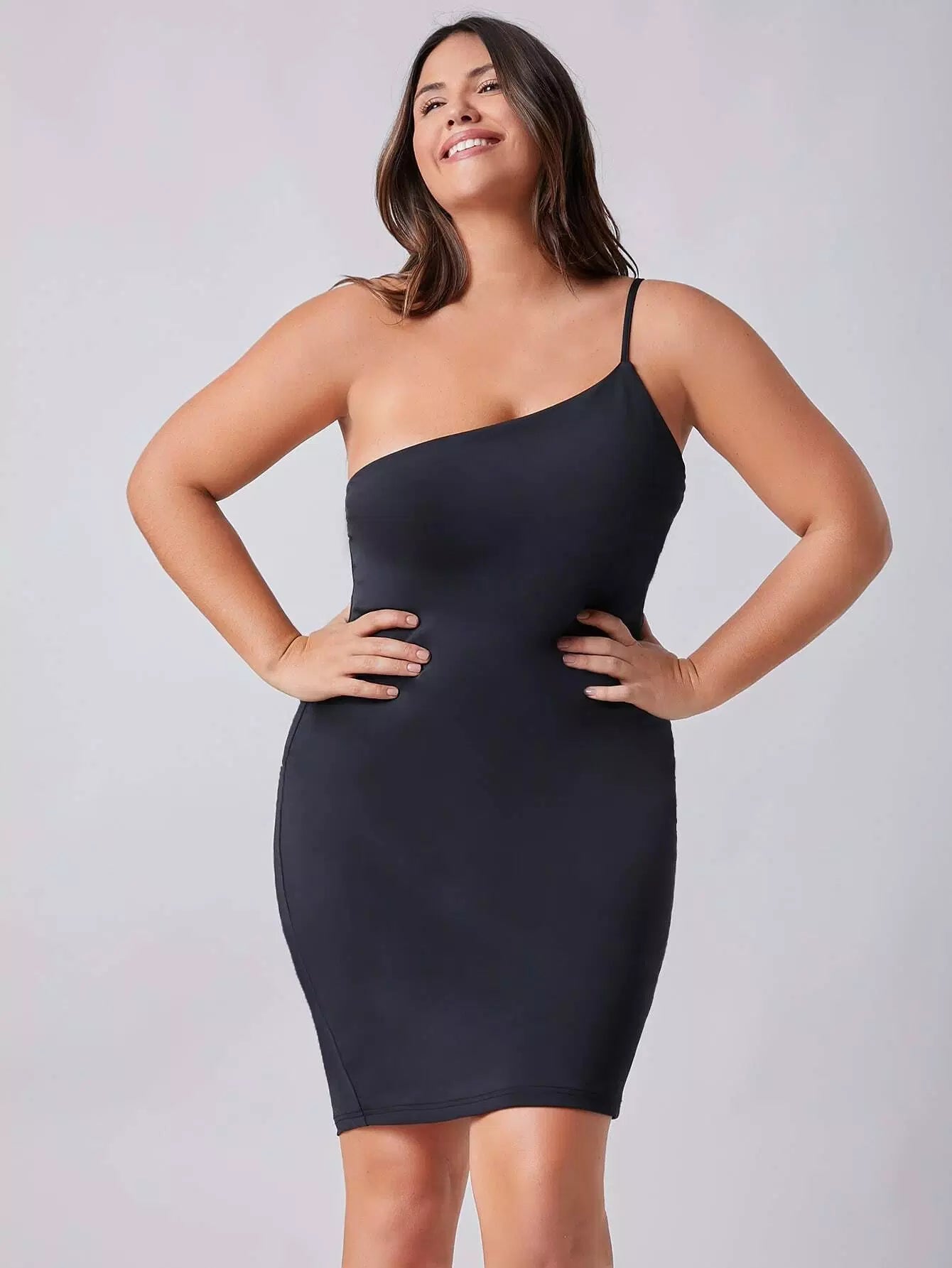 فستان سادة بوديكون سادة بكتف واحد زائد
