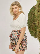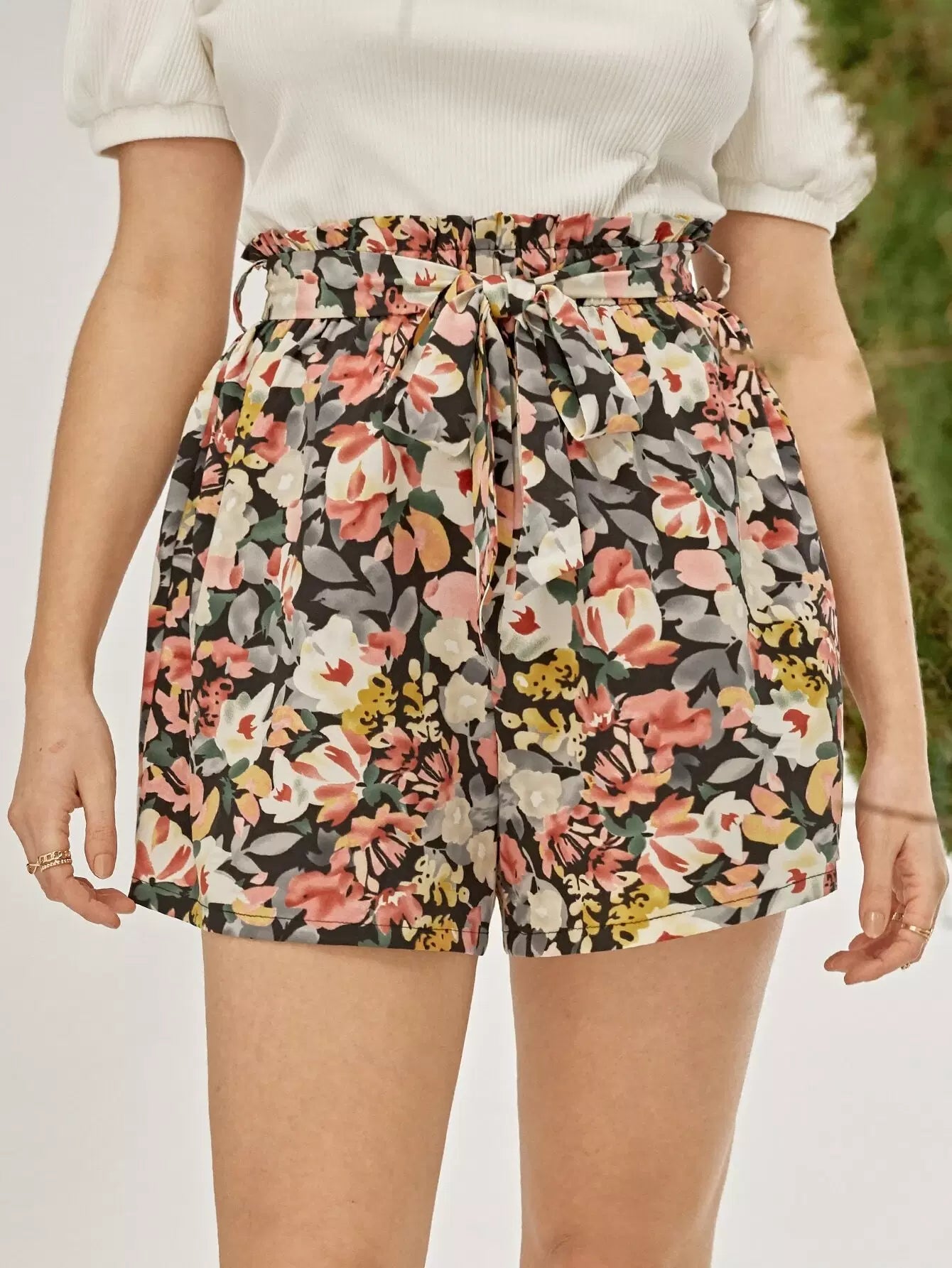 بالإضافة إلى السراويل الورقية الخصر الأزهار بدون حزام