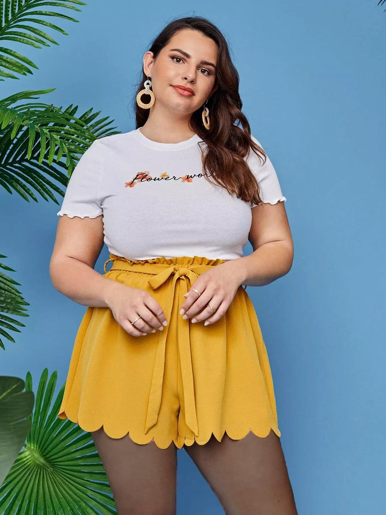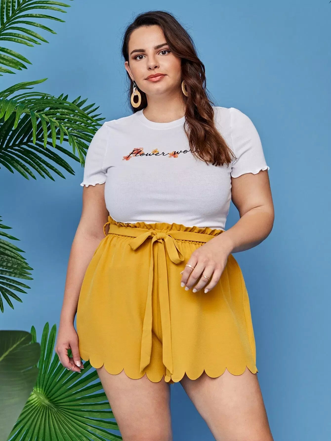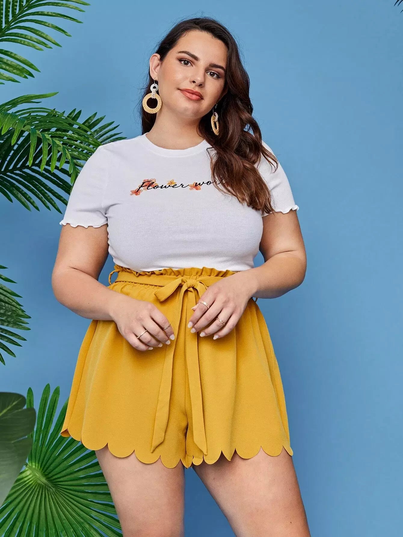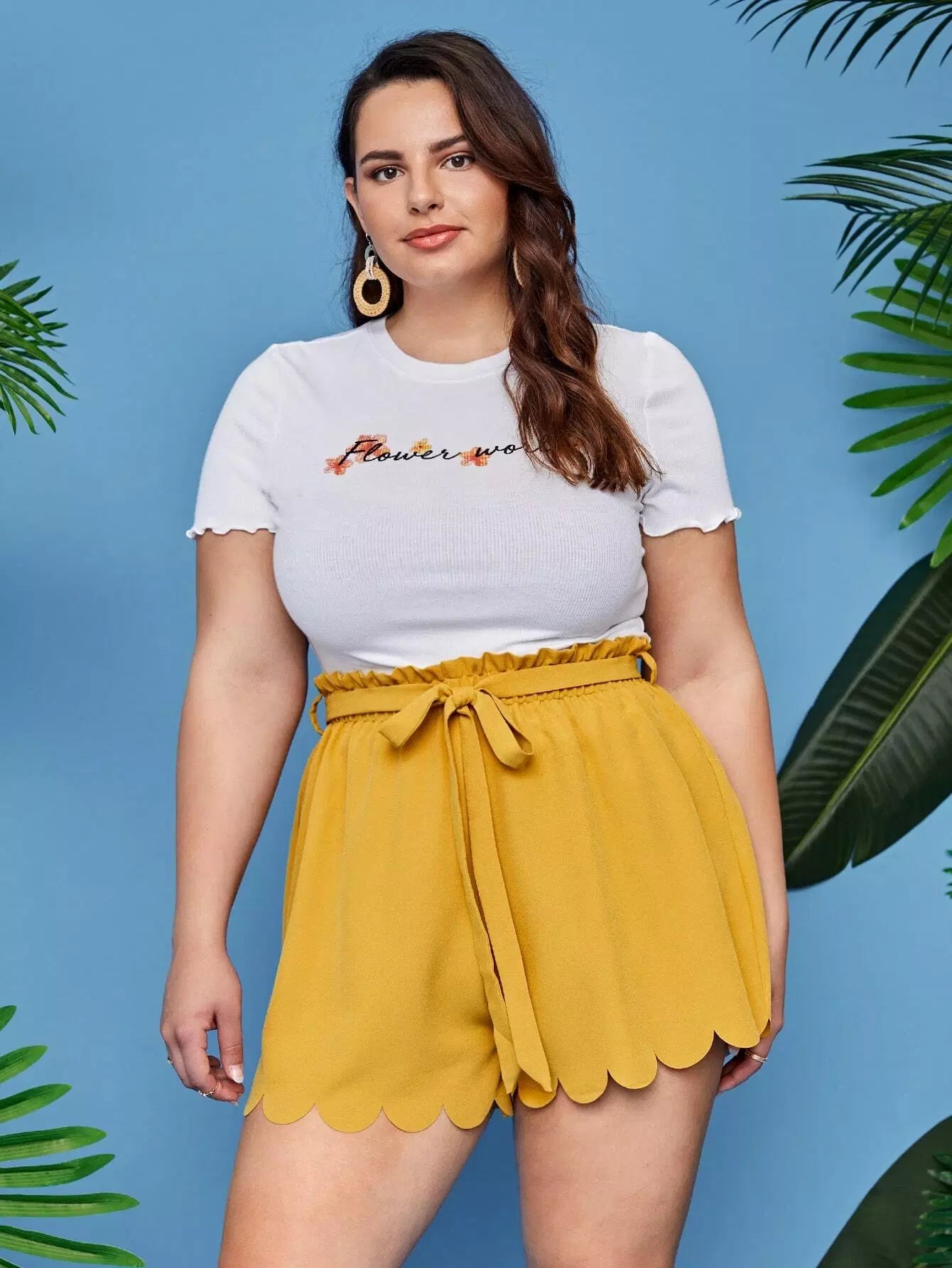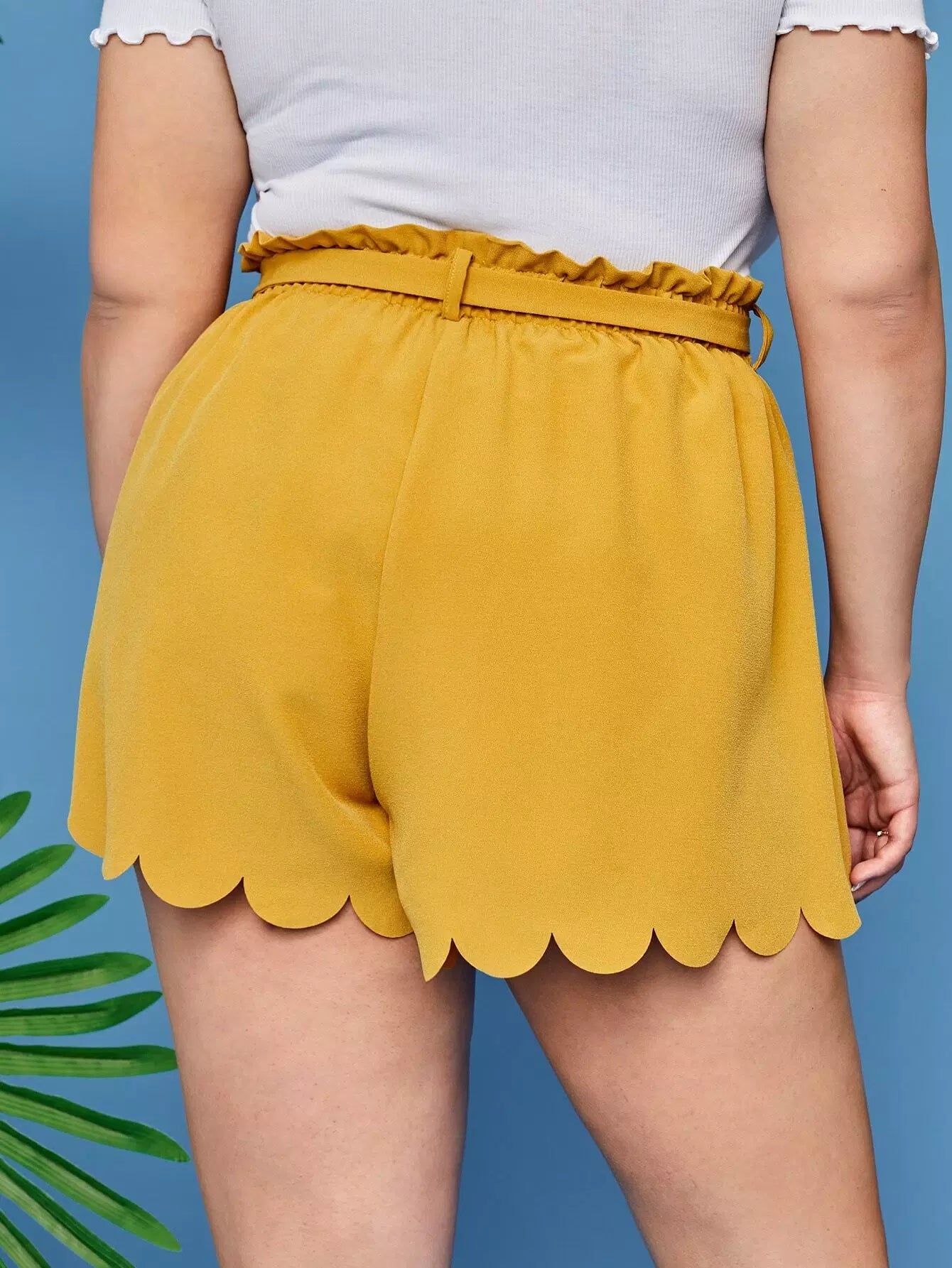 شورت بحافة صدفي بحقيبة ورقية بخصر زائد