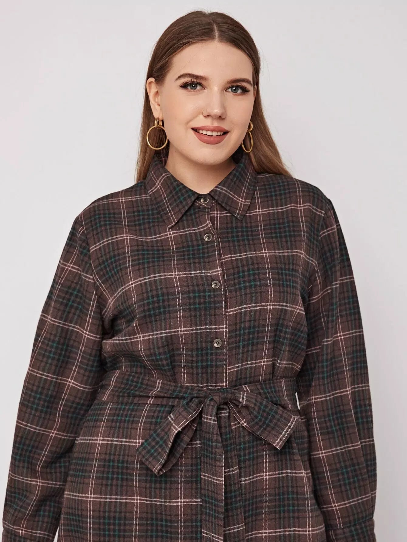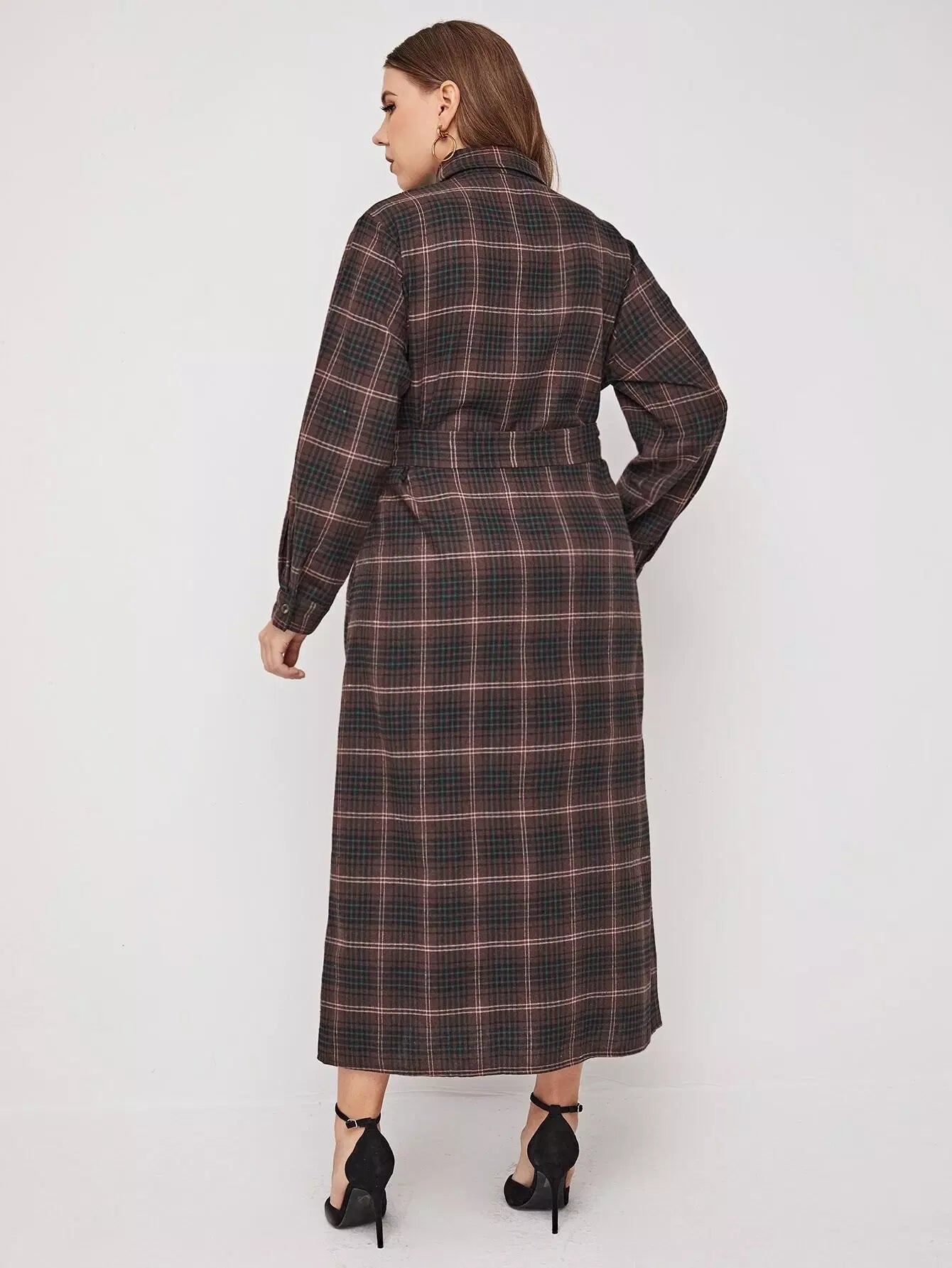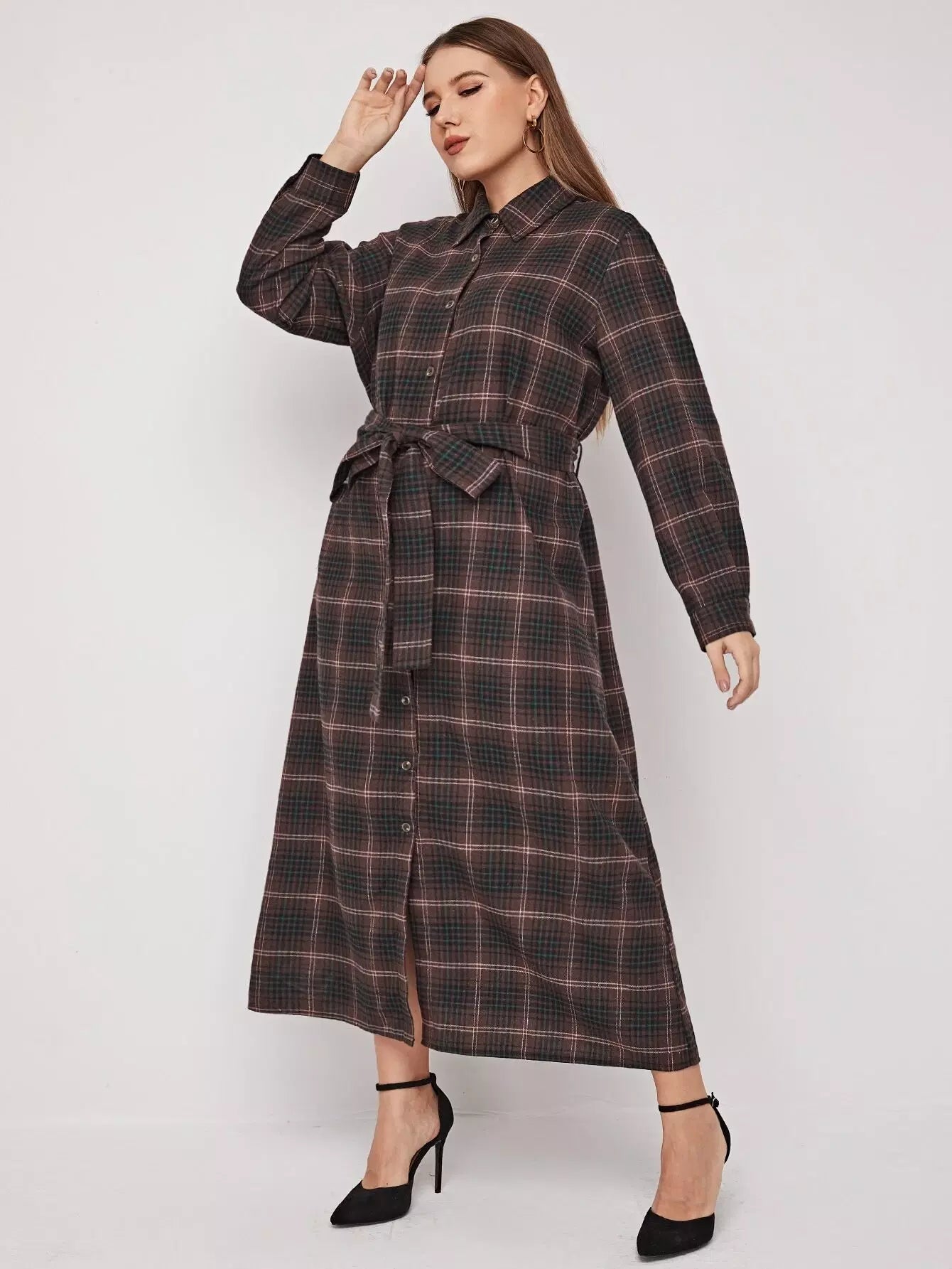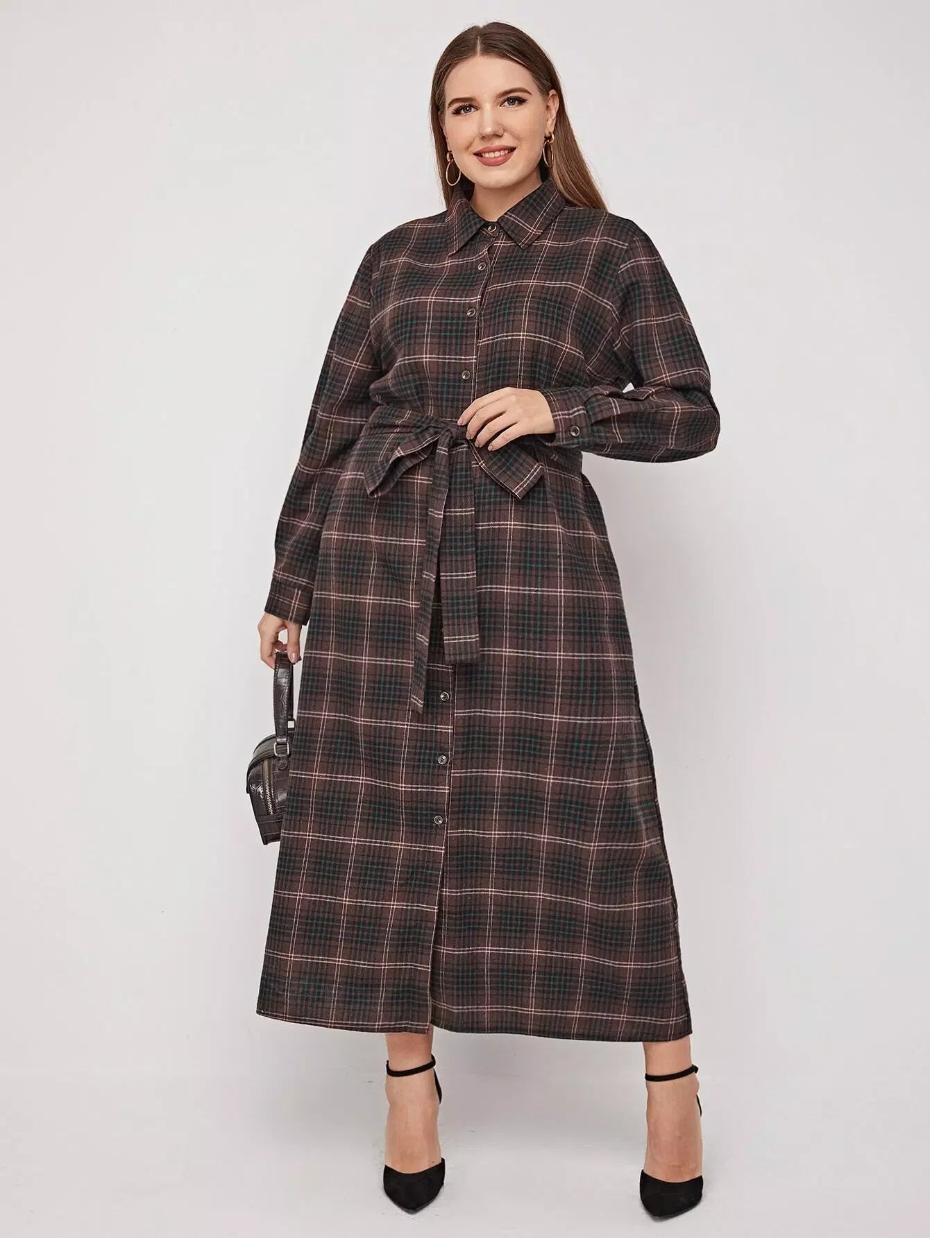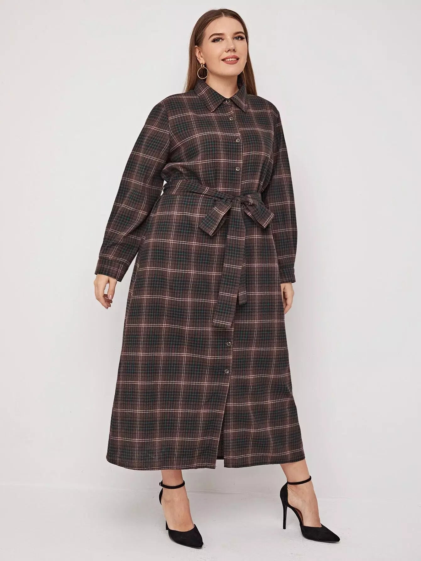 بالإضافة إلى زر منقوش من خلال الفستان بدون حزام
