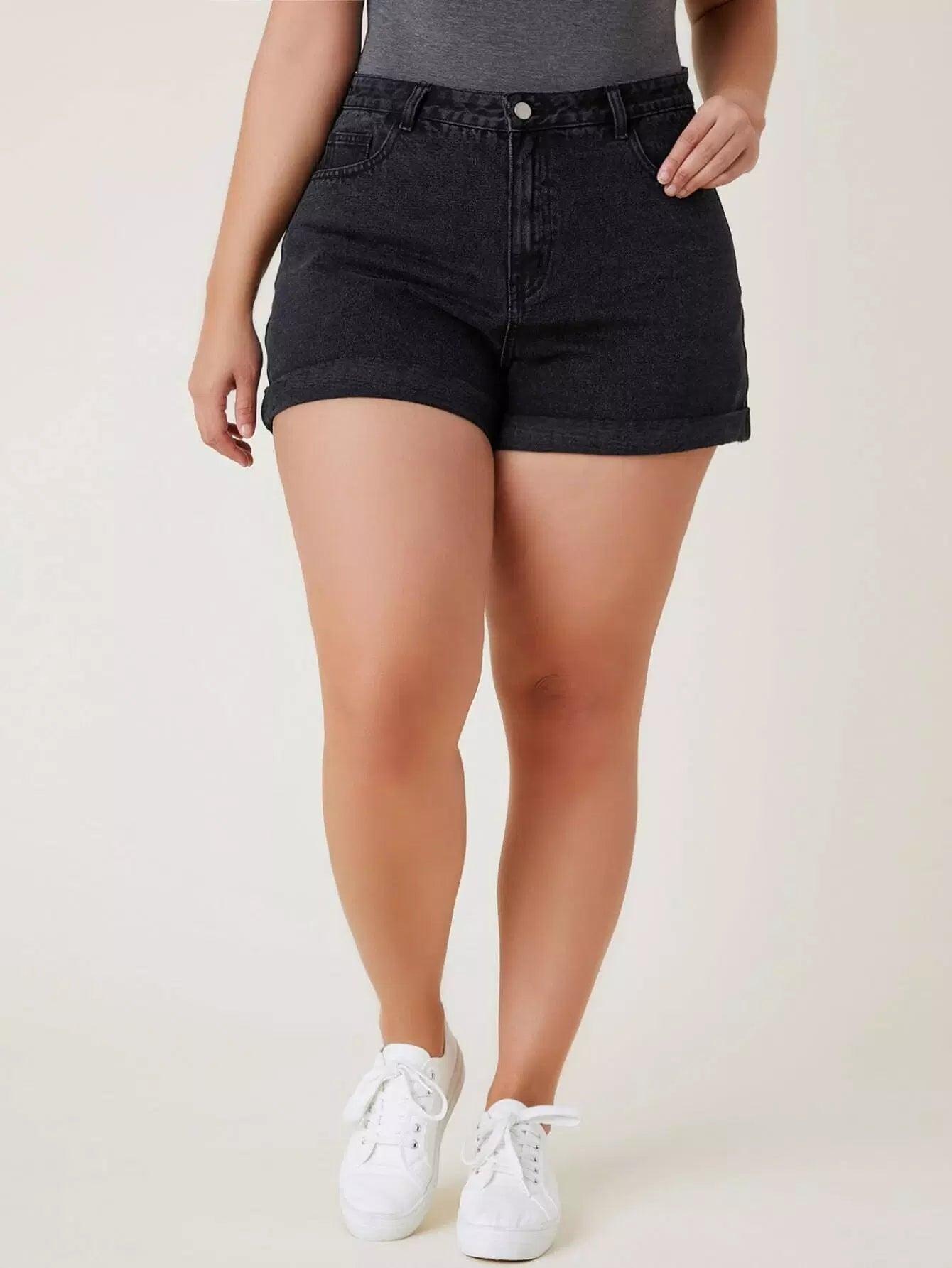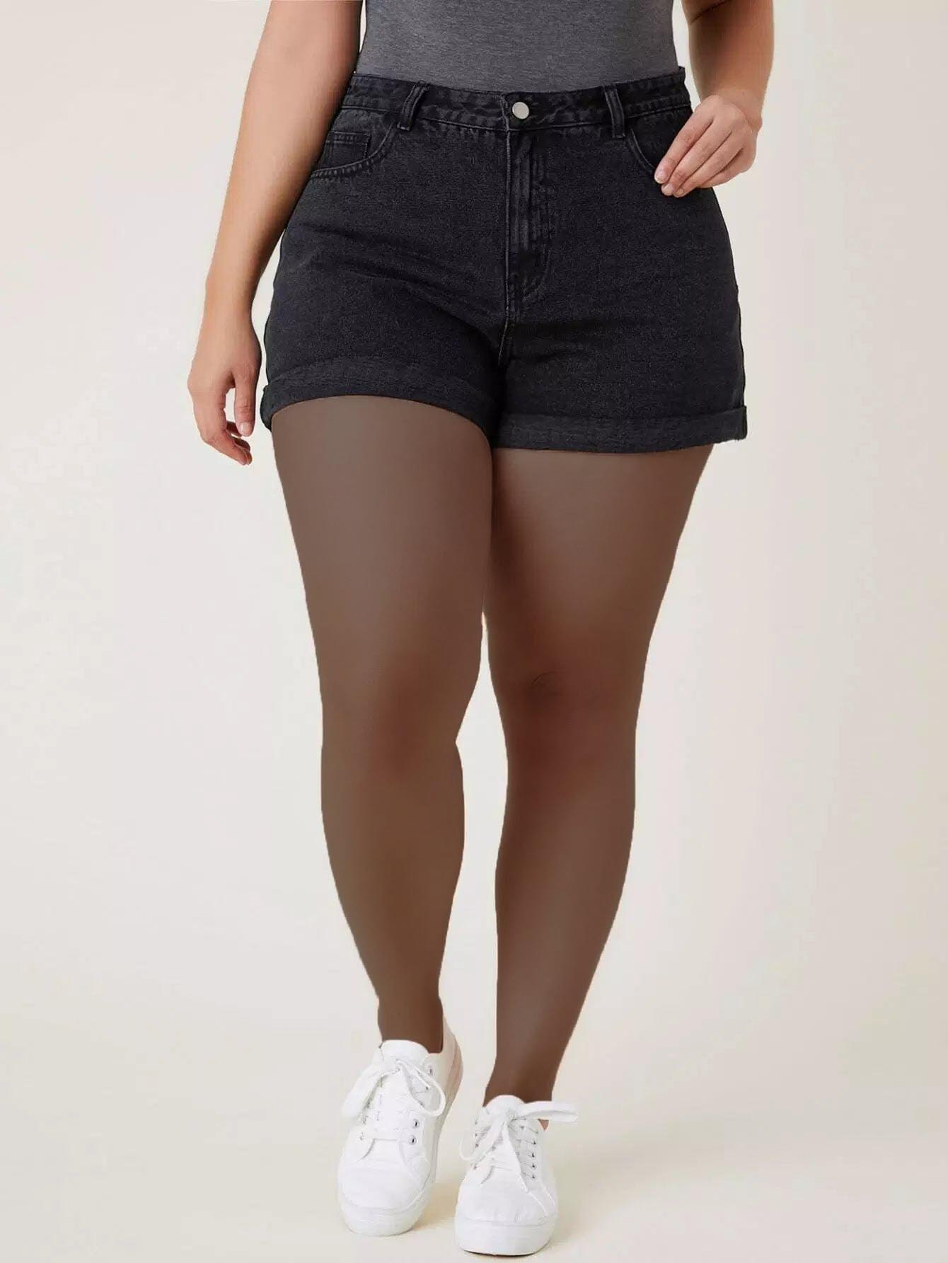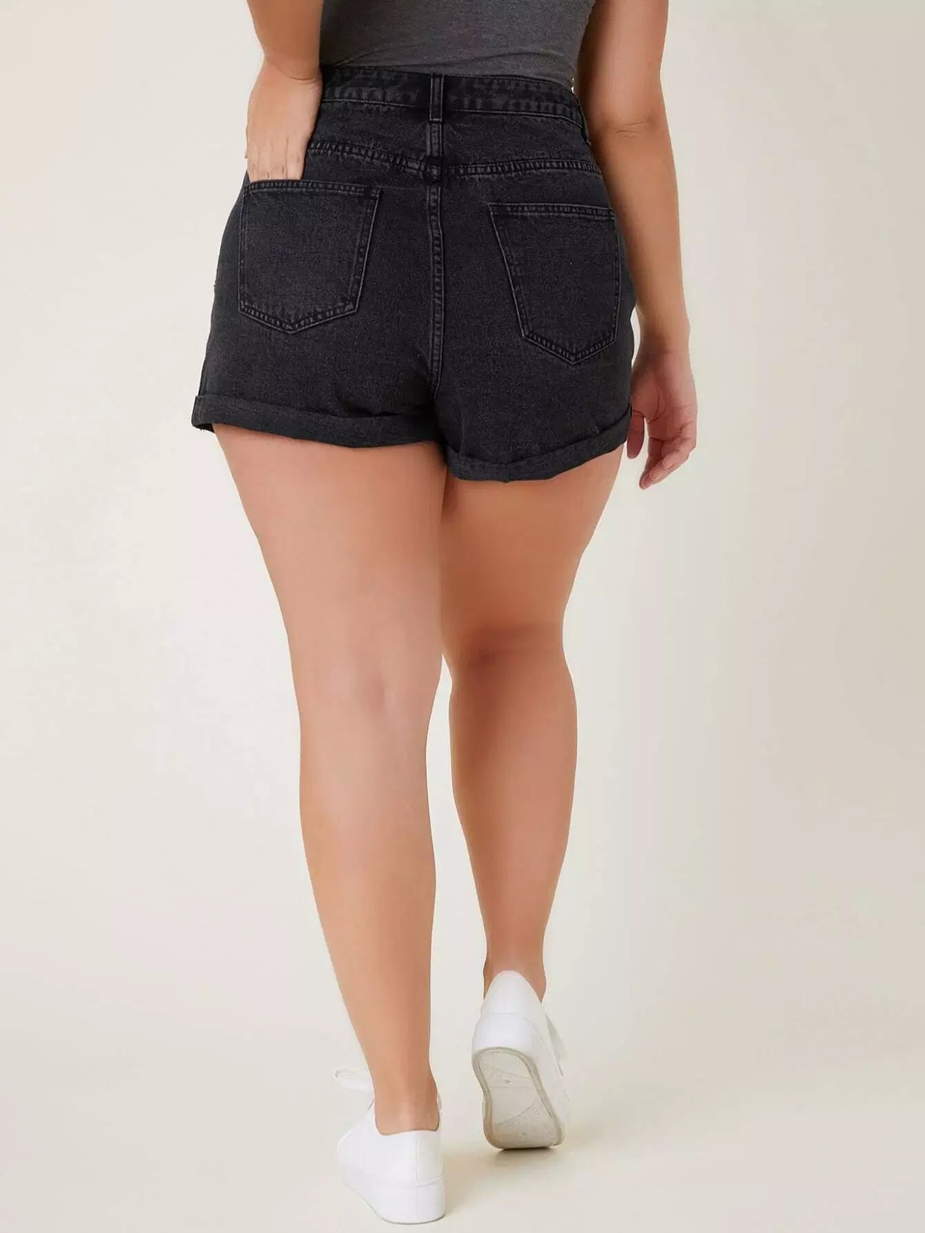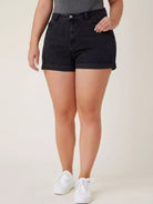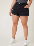 شورت جينز بحافة مائلة بحافة مائلة زائد