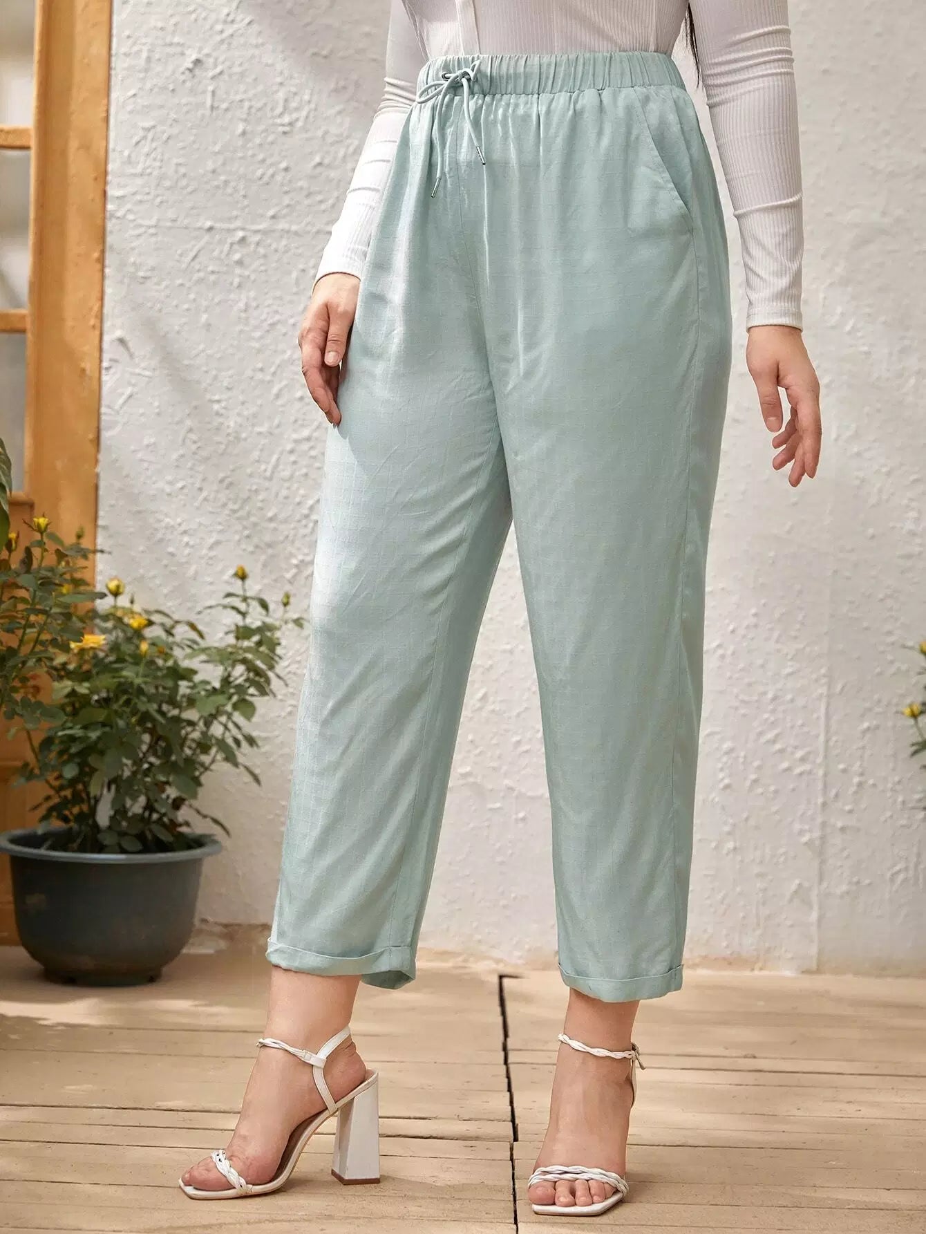 بنطلون بحاشية ملفوفة بحافة مائلة وجيب مائل برباط خصر مائل