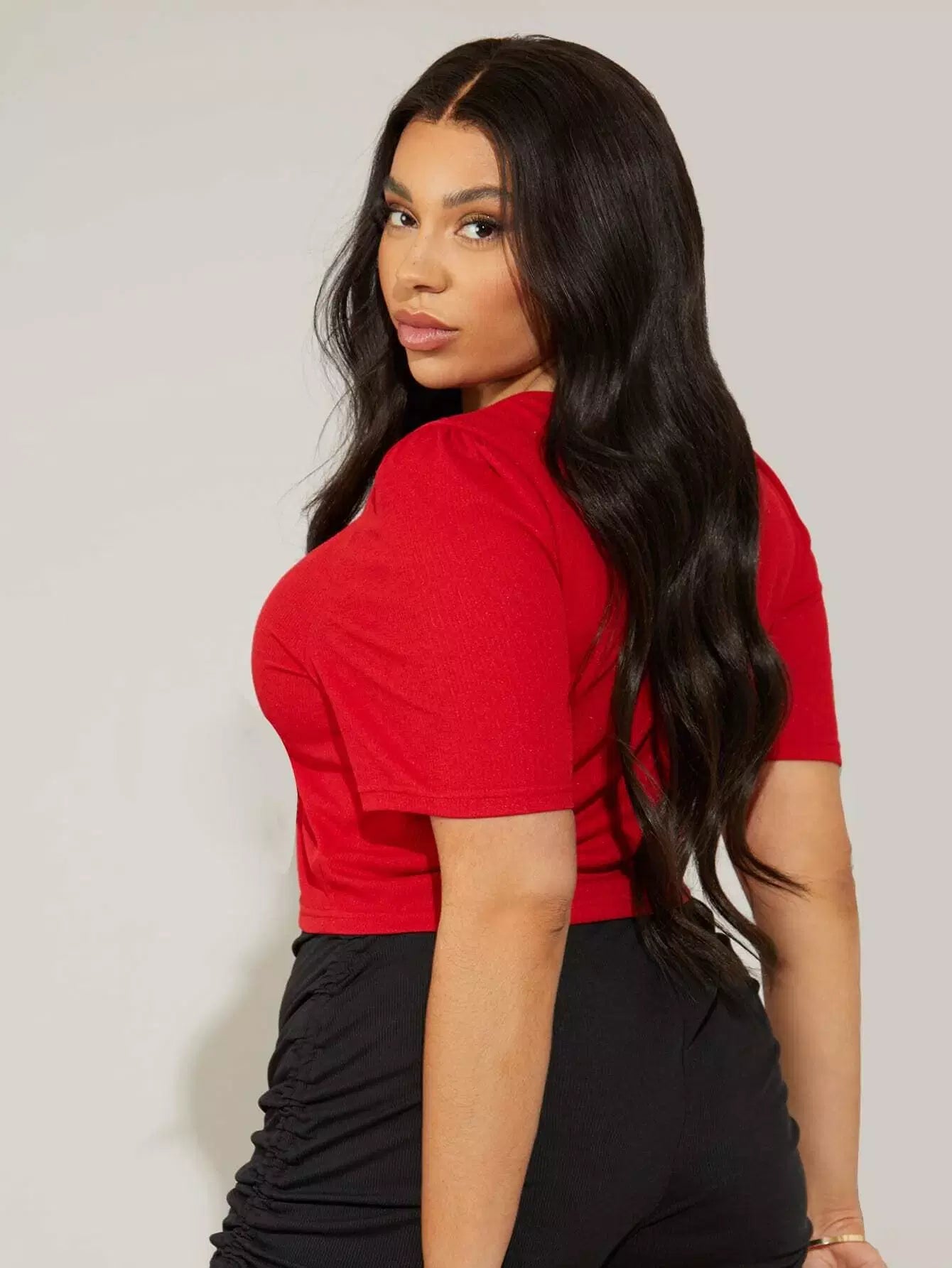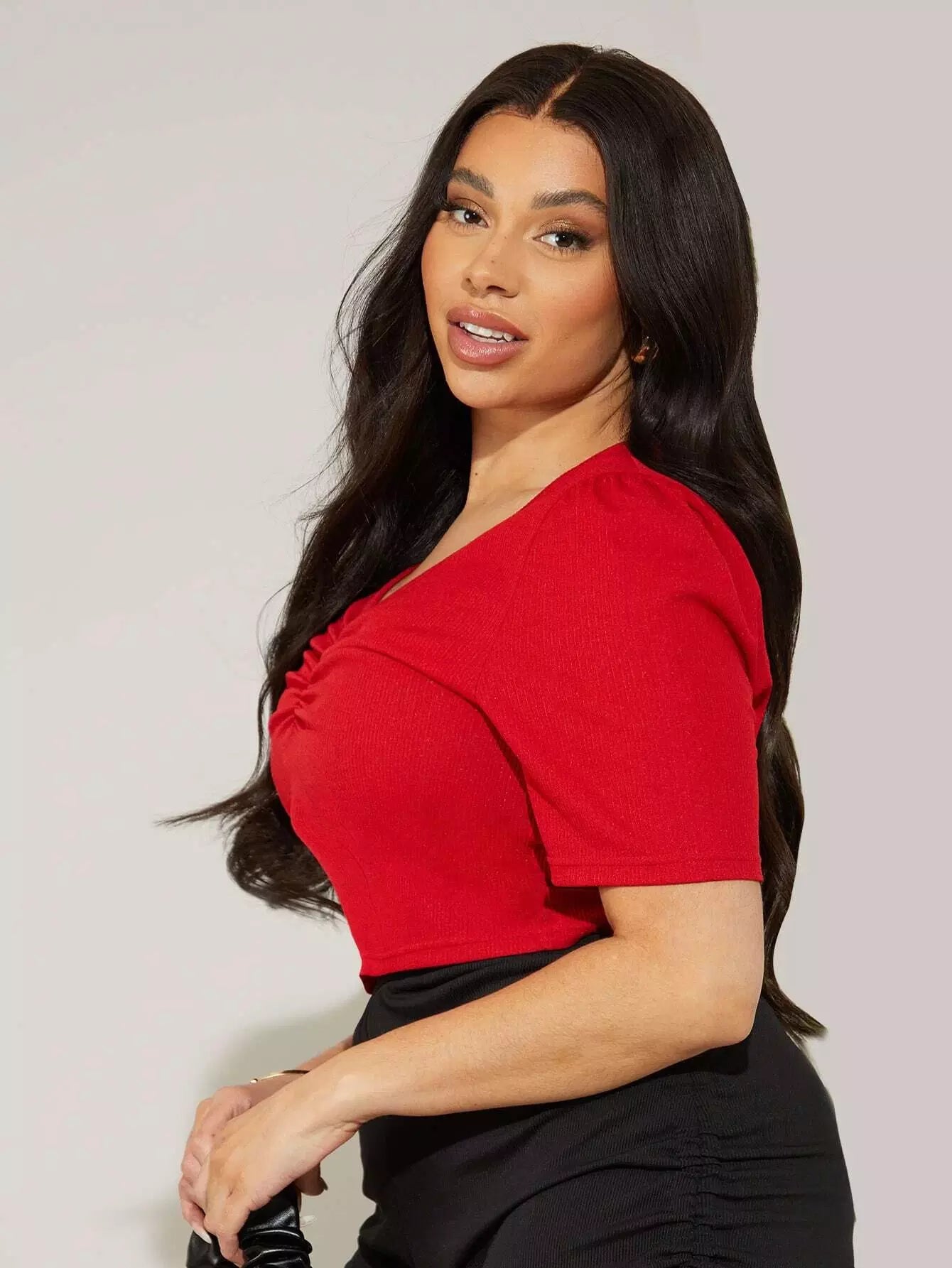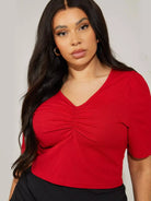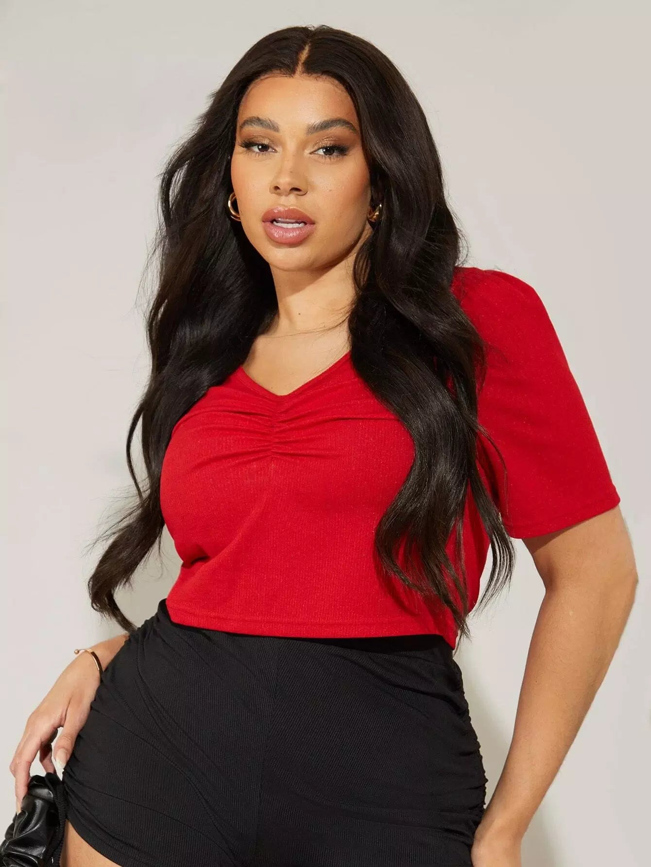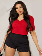 تي شيرت مضلع على شكل حرف V برقبة على شكل حرف V مضلع