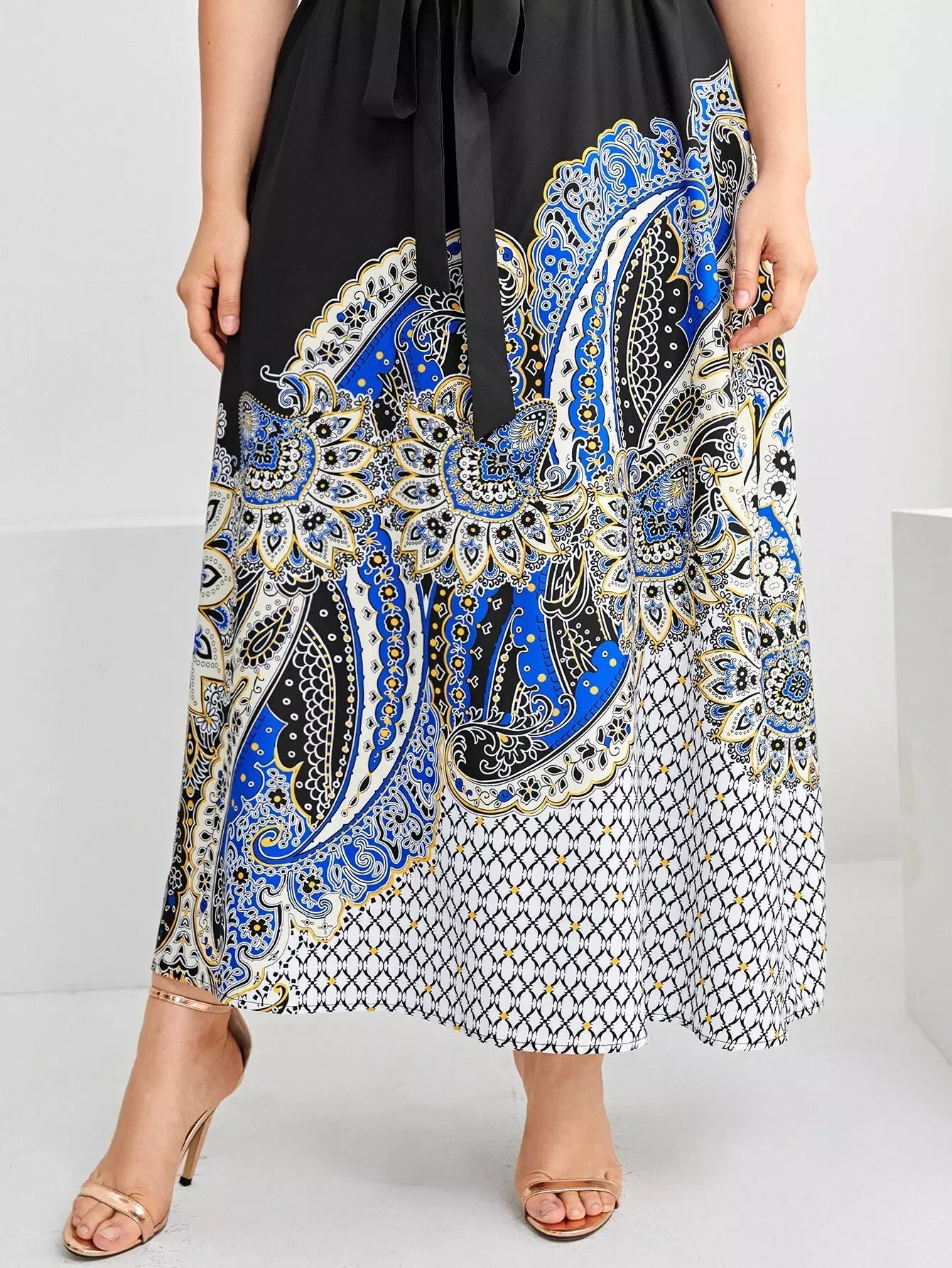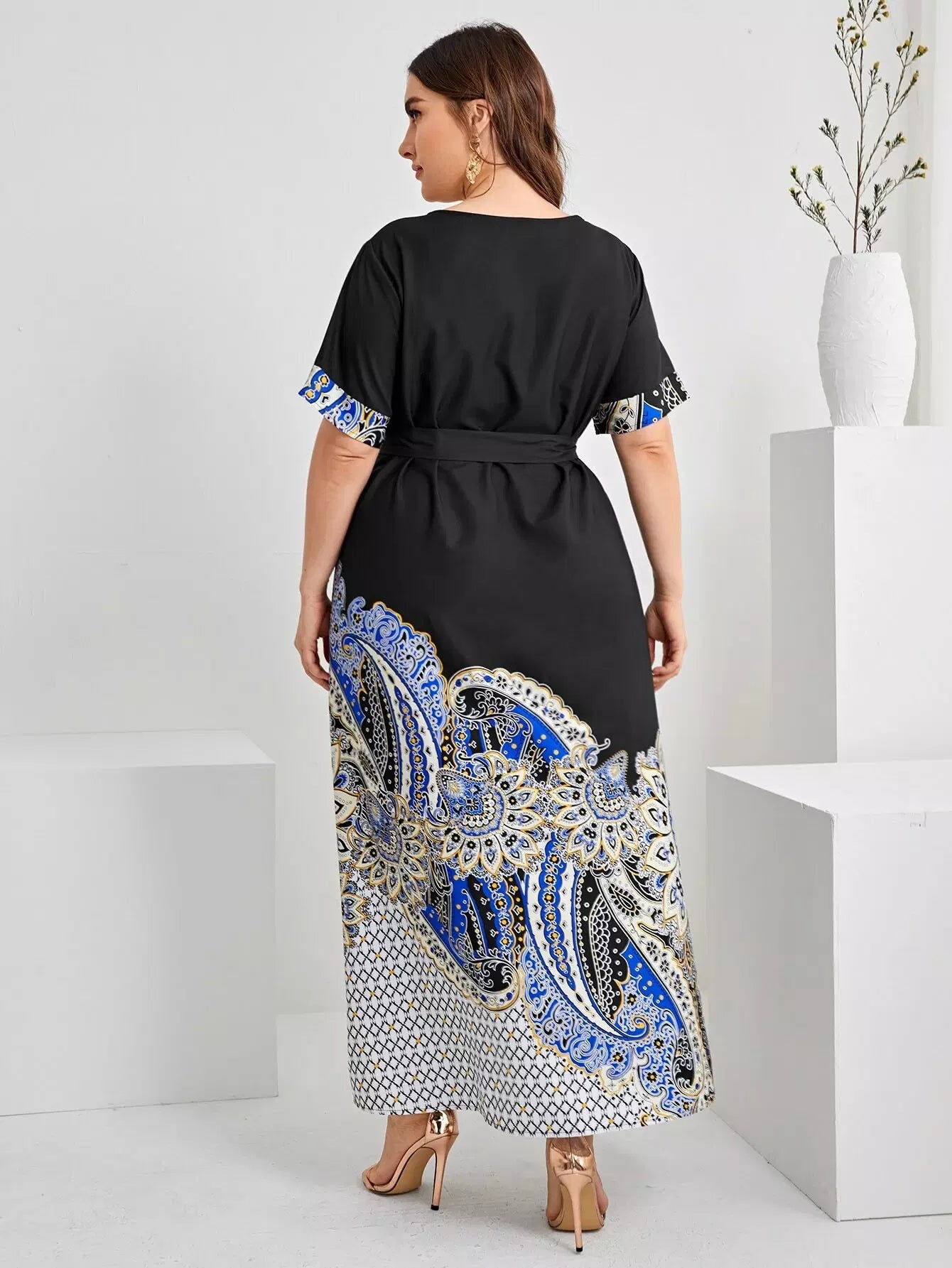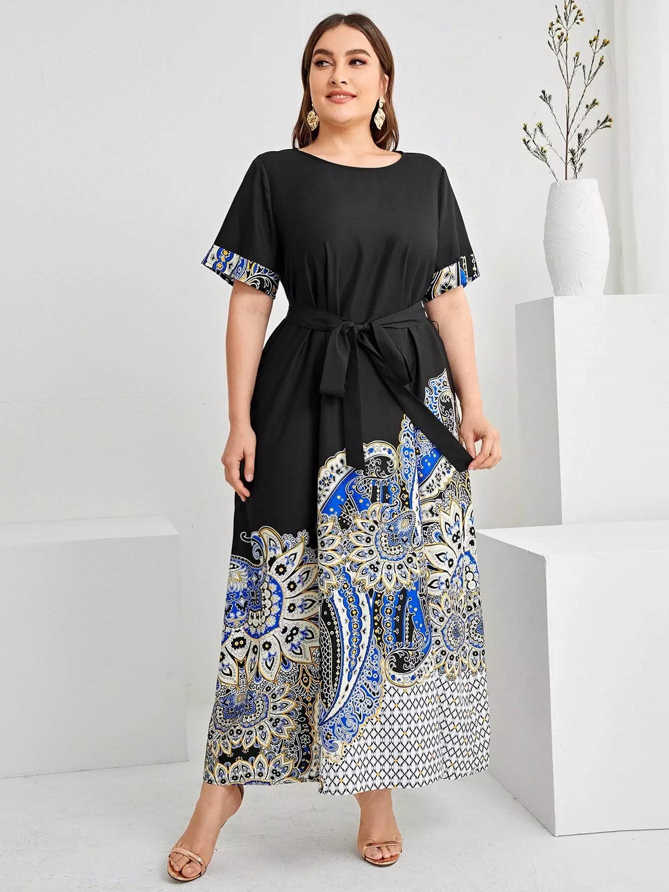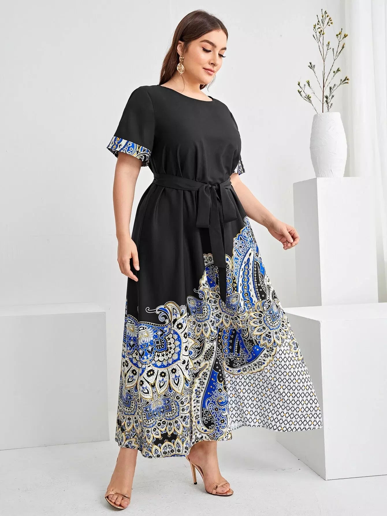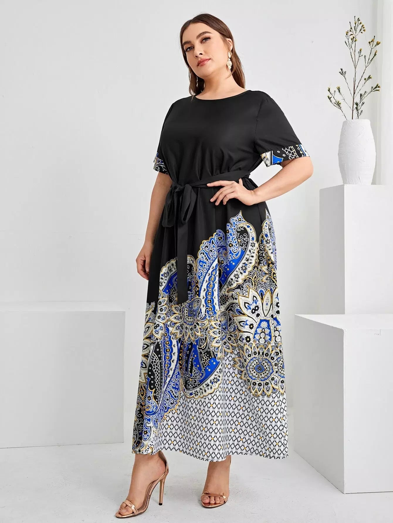 بالإضافة إلى فستان بطبعة بيزلي ذاتية بدون حزام