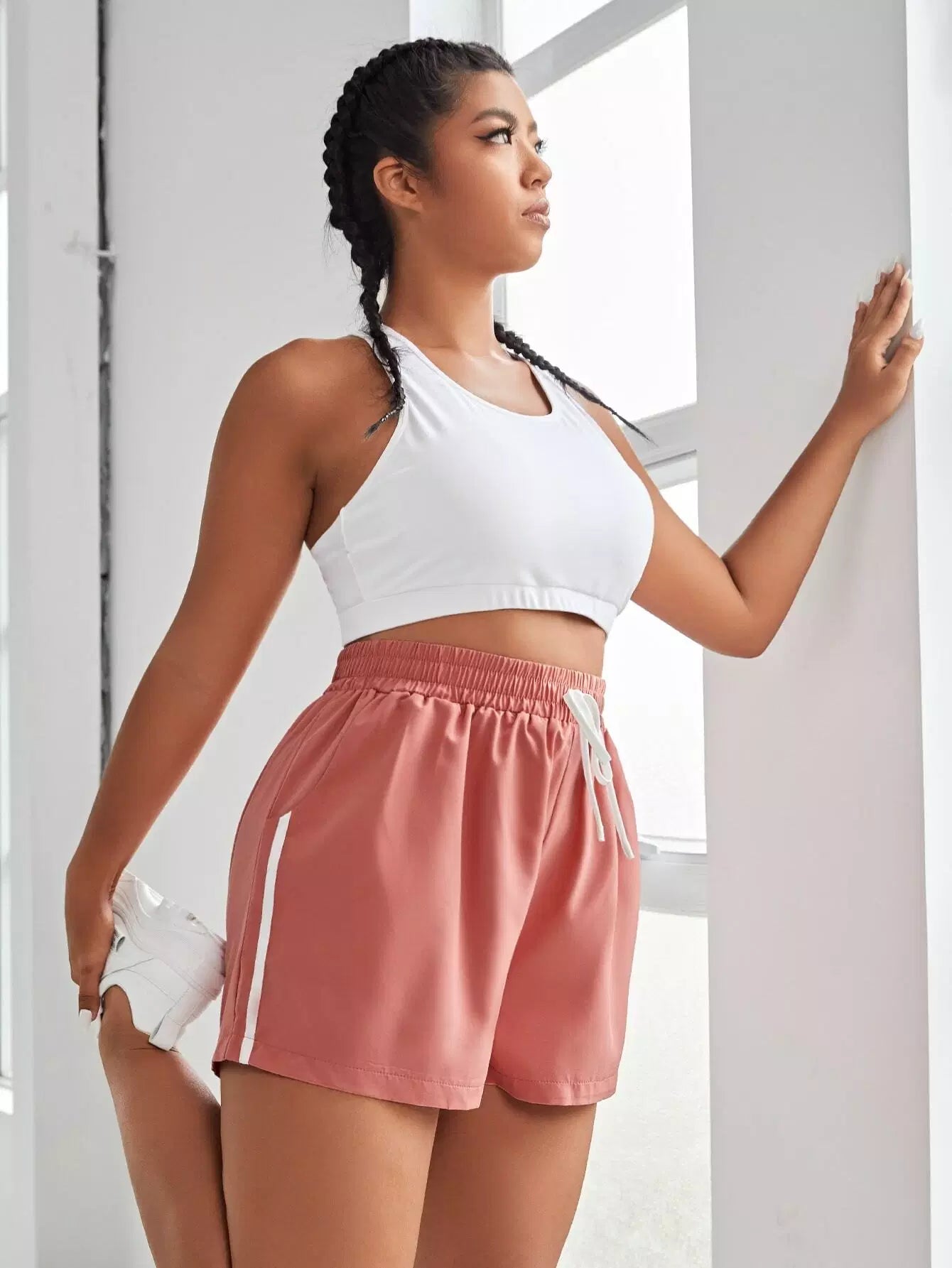 شورت رياضي مخطط جانبي معقود بلاس بلس