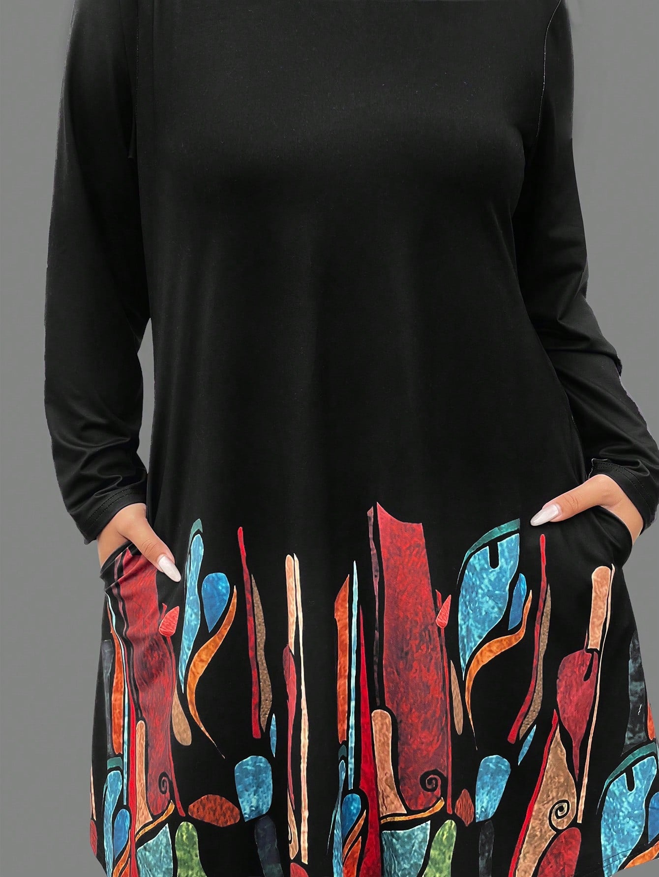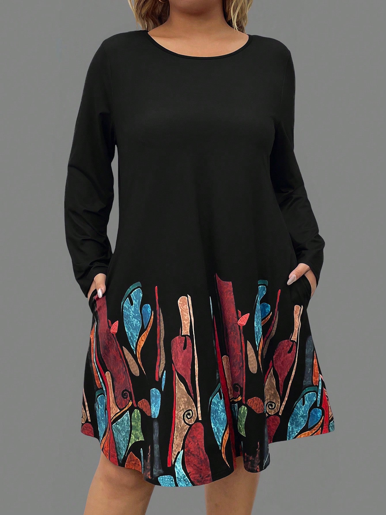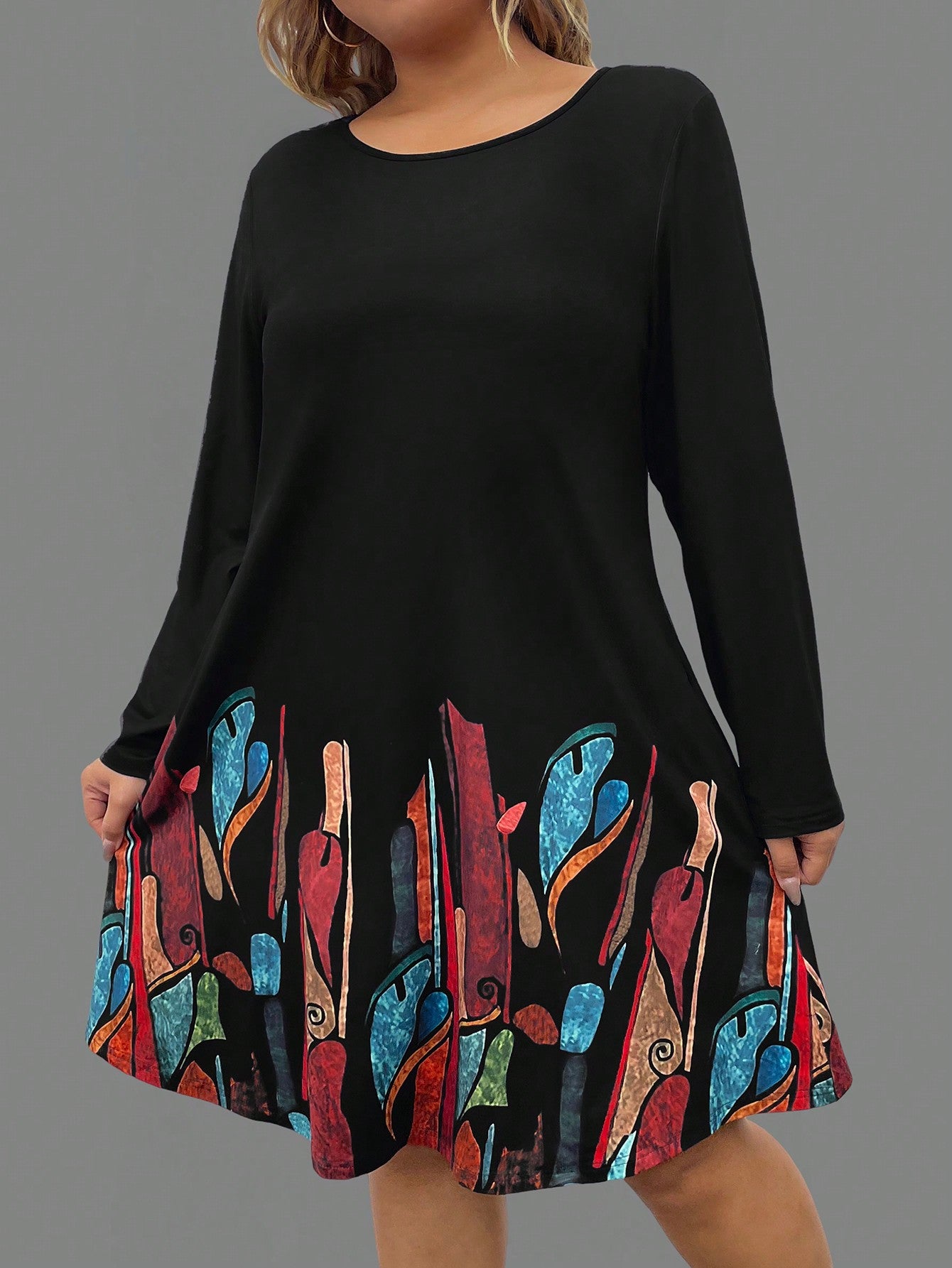 Plus Size Digital Placement Print Knit Long Sleeve Casual Dress