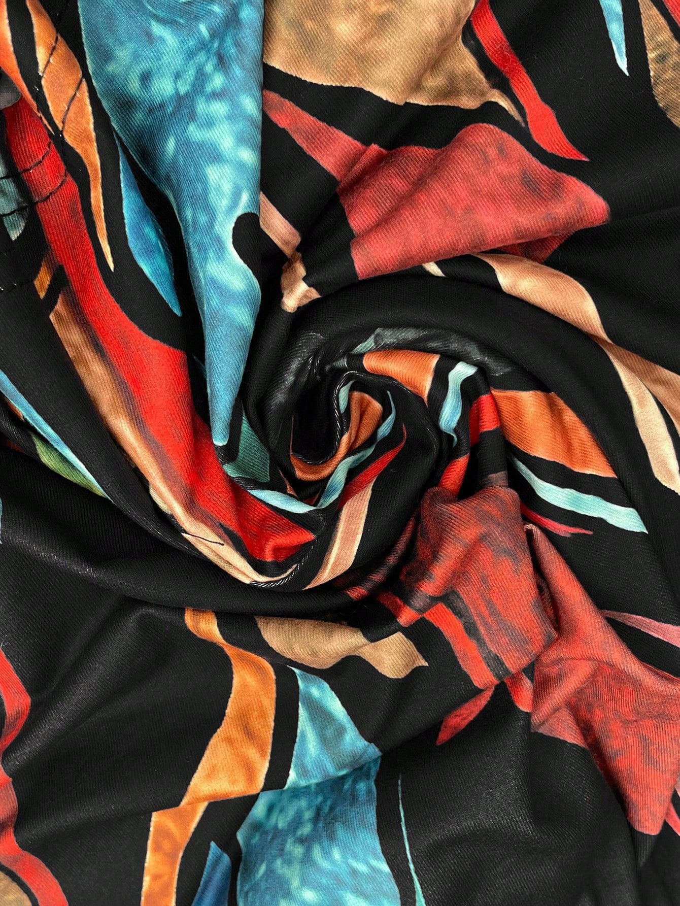 فستان كاجوال محبوك بأكمام طويلة ومطبوع رقميًا بمقاسات كبيرة